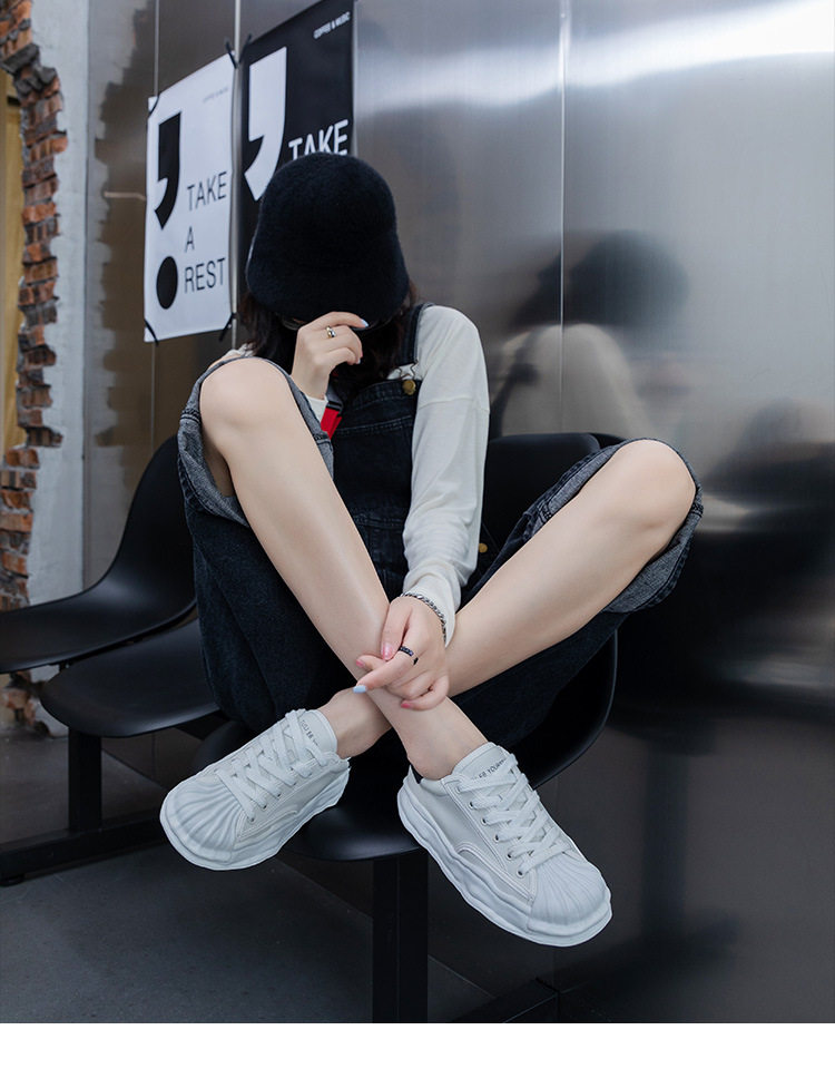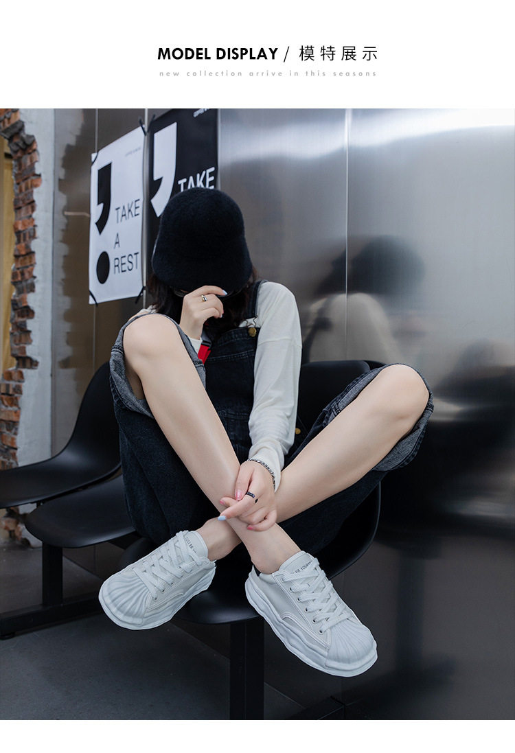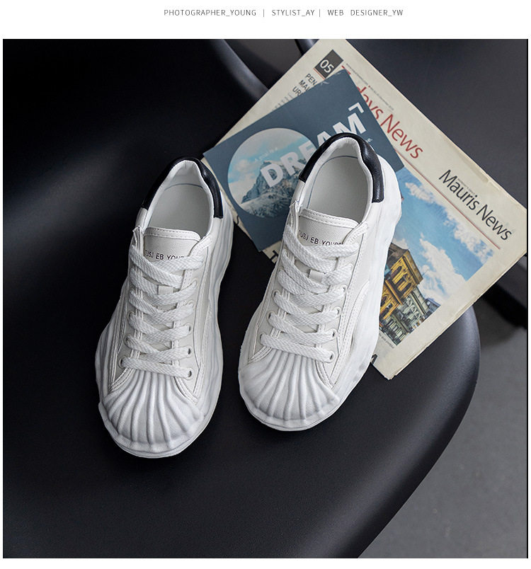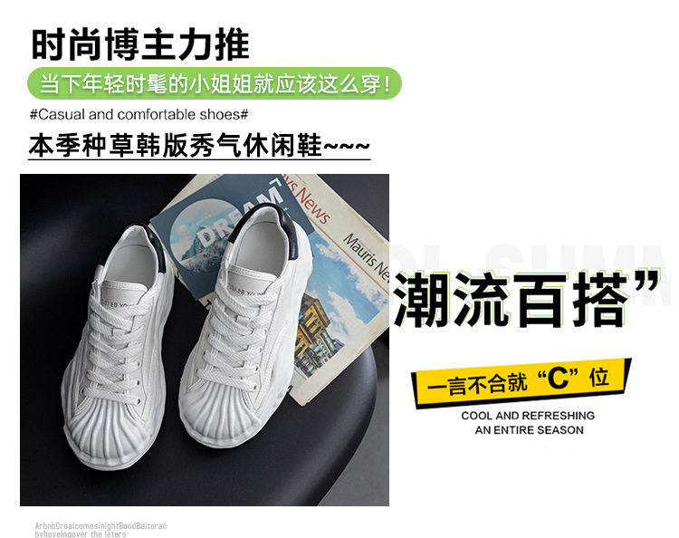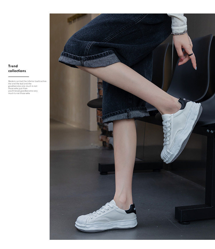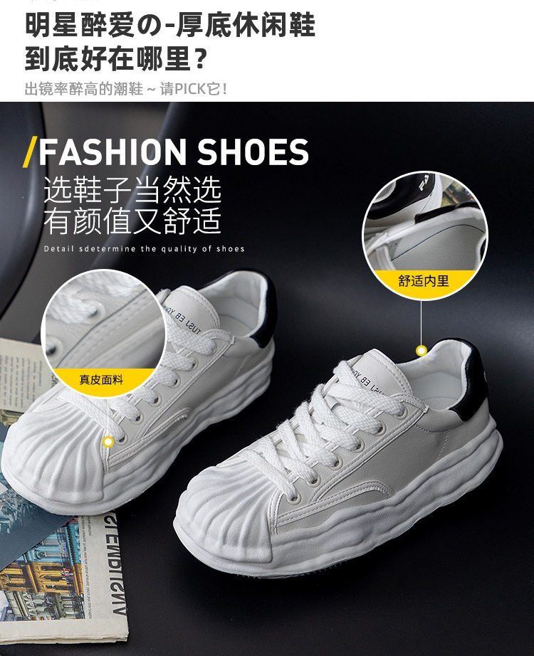 小白鞋贝壳头溶解鞋2025夏季新款真皮女鞋厚底增高透气运动休闲鞋