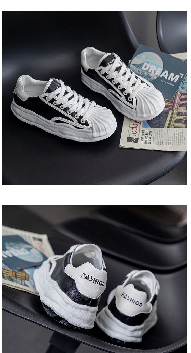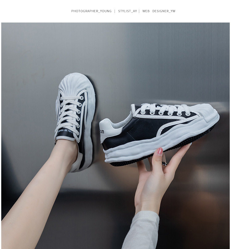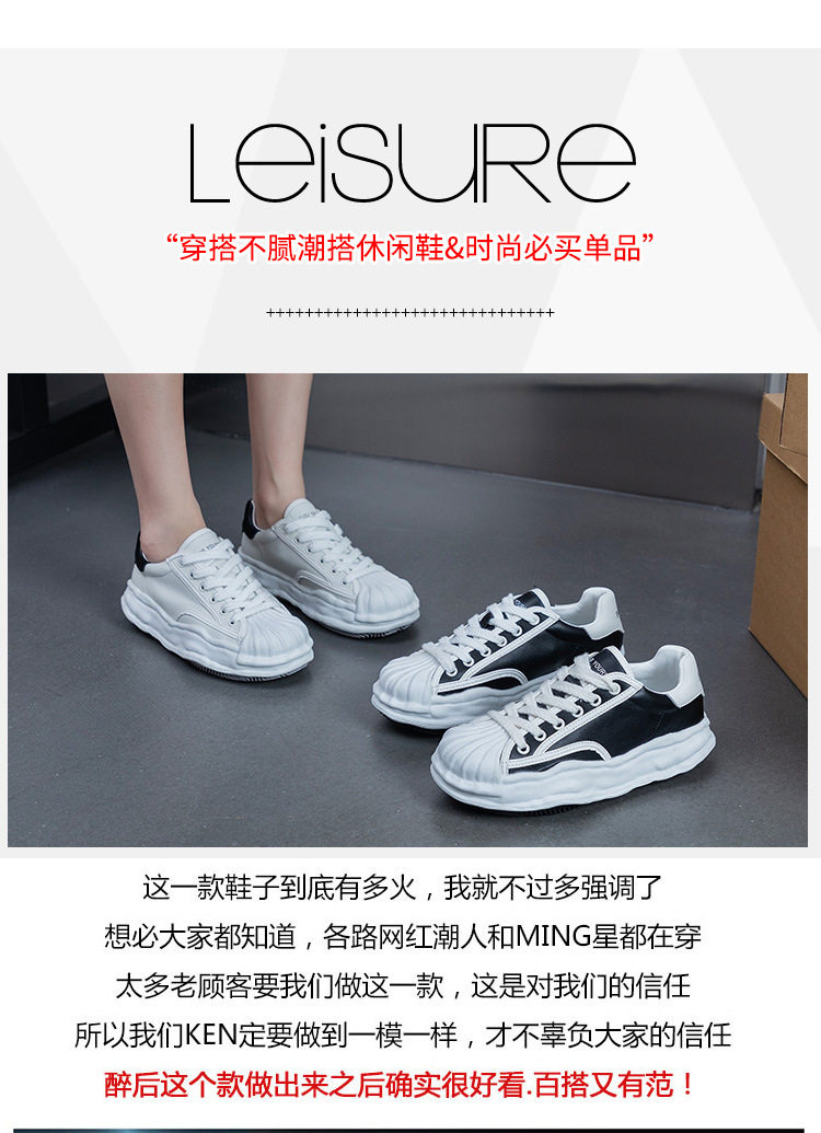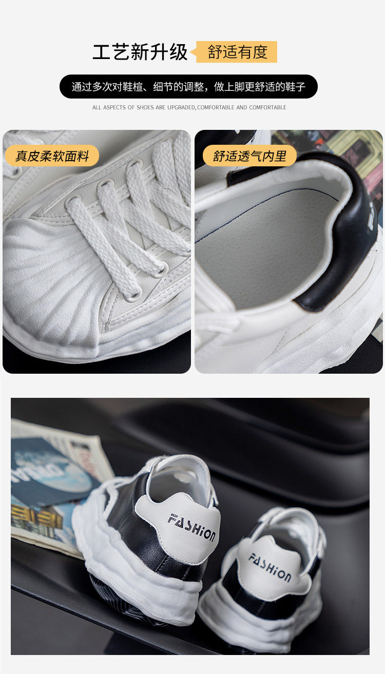 小白鞋贝壳头溶解鞋2025夏季新款真皮女鞋厚底增高透气运动休闲鞋