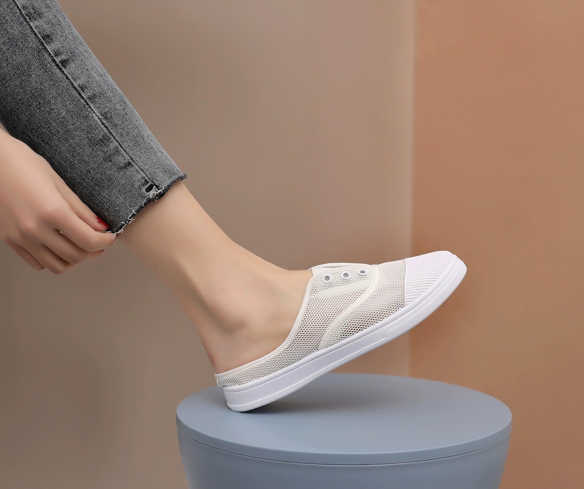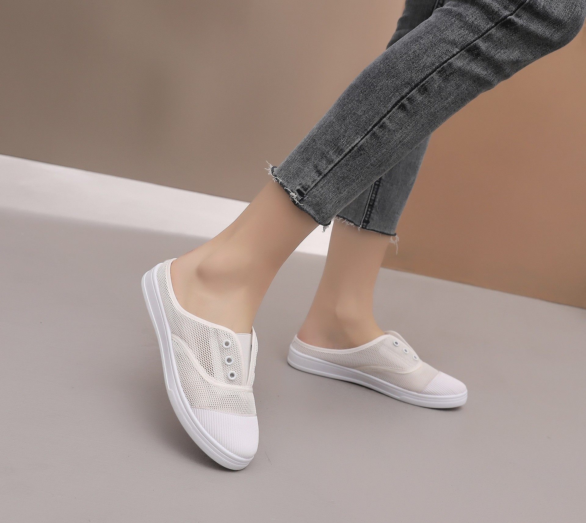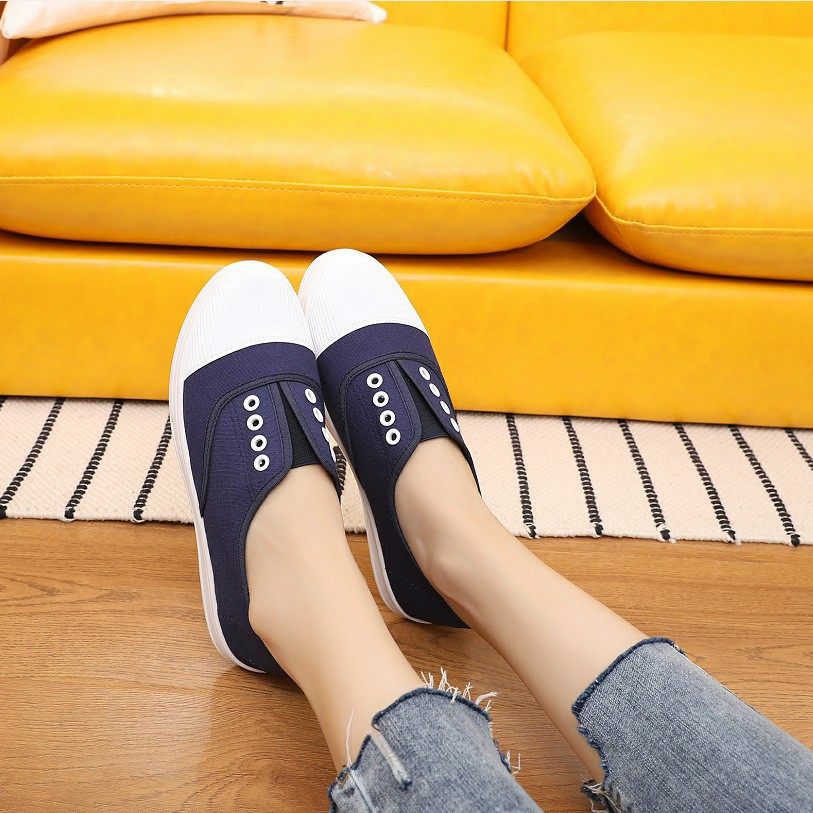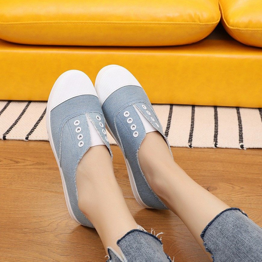 2023 new low canvas shoes students flat casual women's shoes a slip-on lazy shoes White shoes a generation of hair