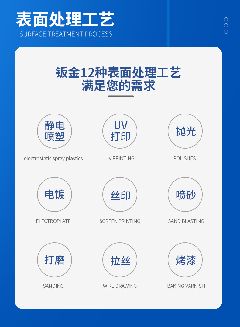 Processing process Flanged,Bend,Grind,Stretch,Welding,Stamping,Assembly,Laser cutting,Painting,Bend,Riveting,Cut,Bend,Sprinkling,Laser bending