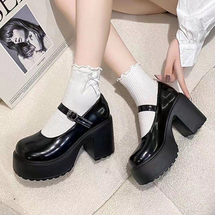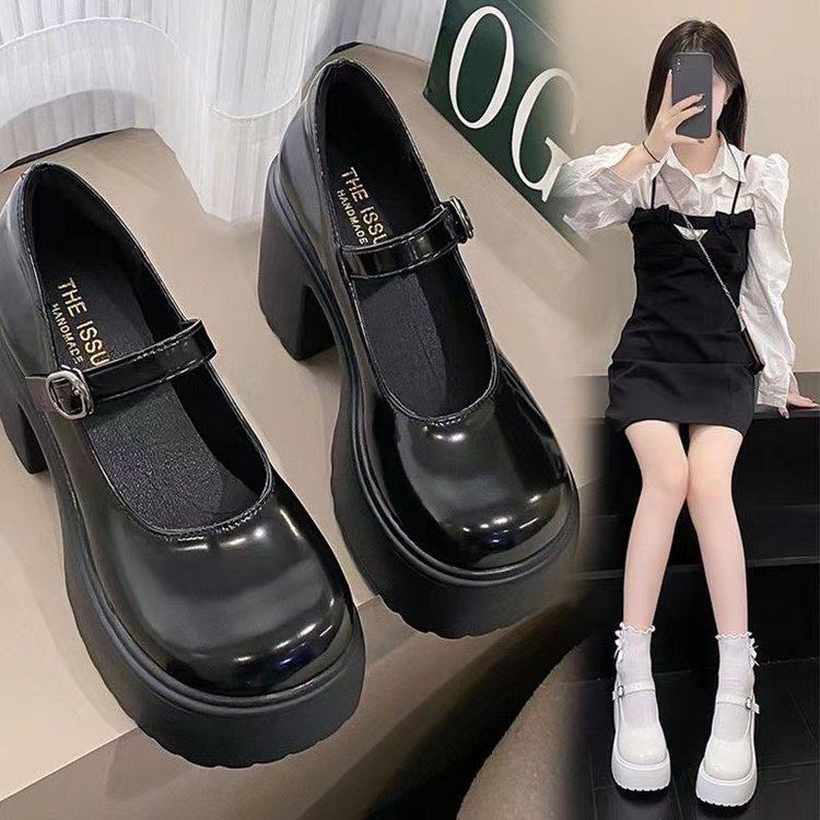 百搭粗跟一字扣带小皮鞋女2024冬季新款厚底复古英伦风玛丽珍单鞋