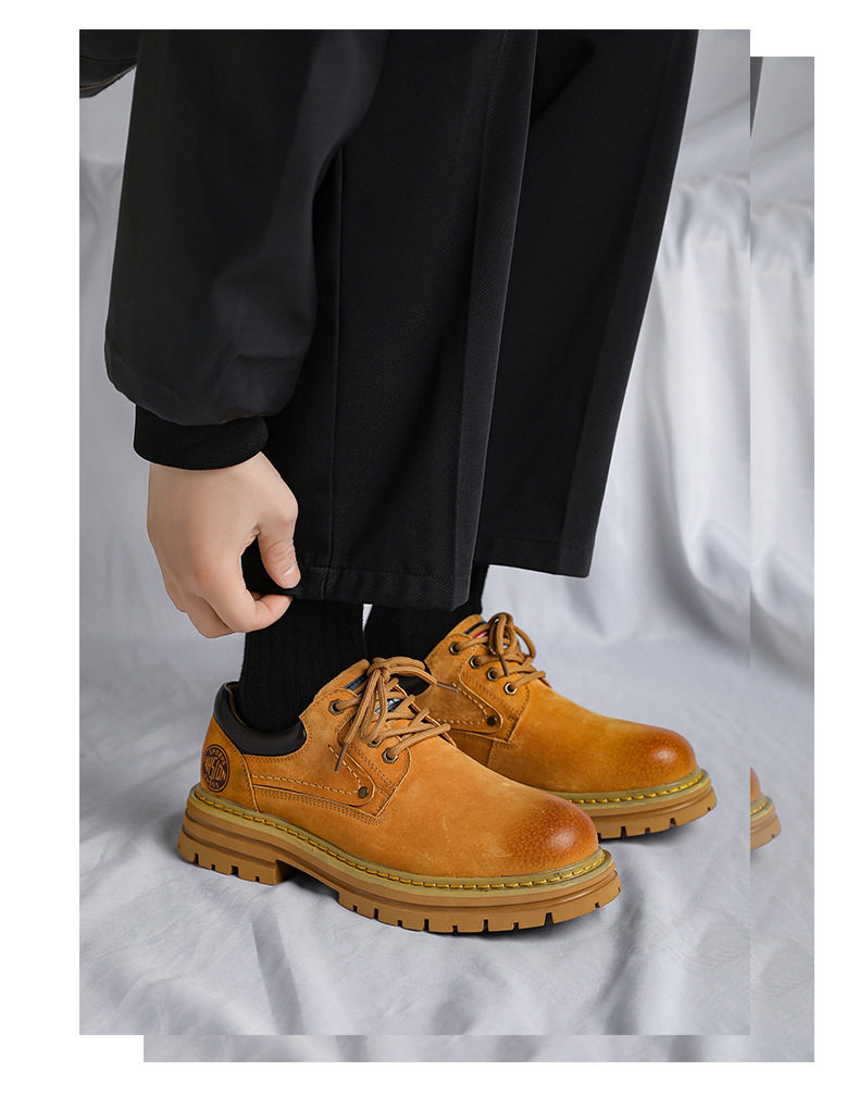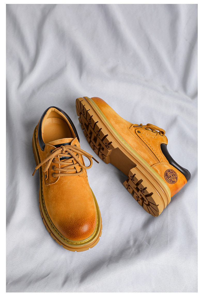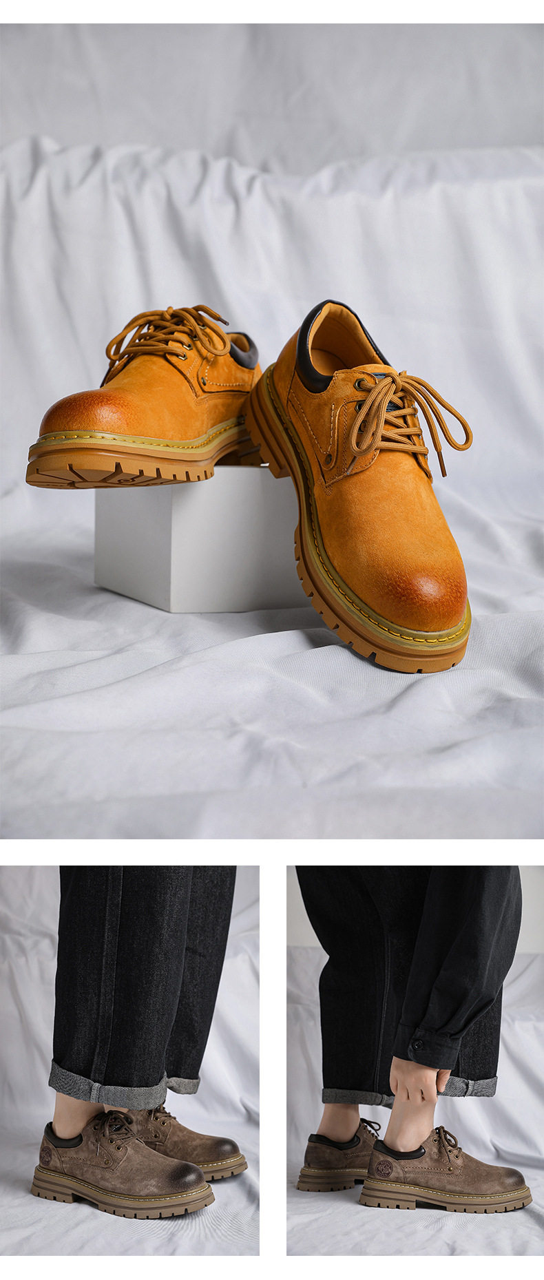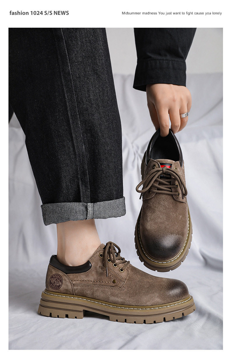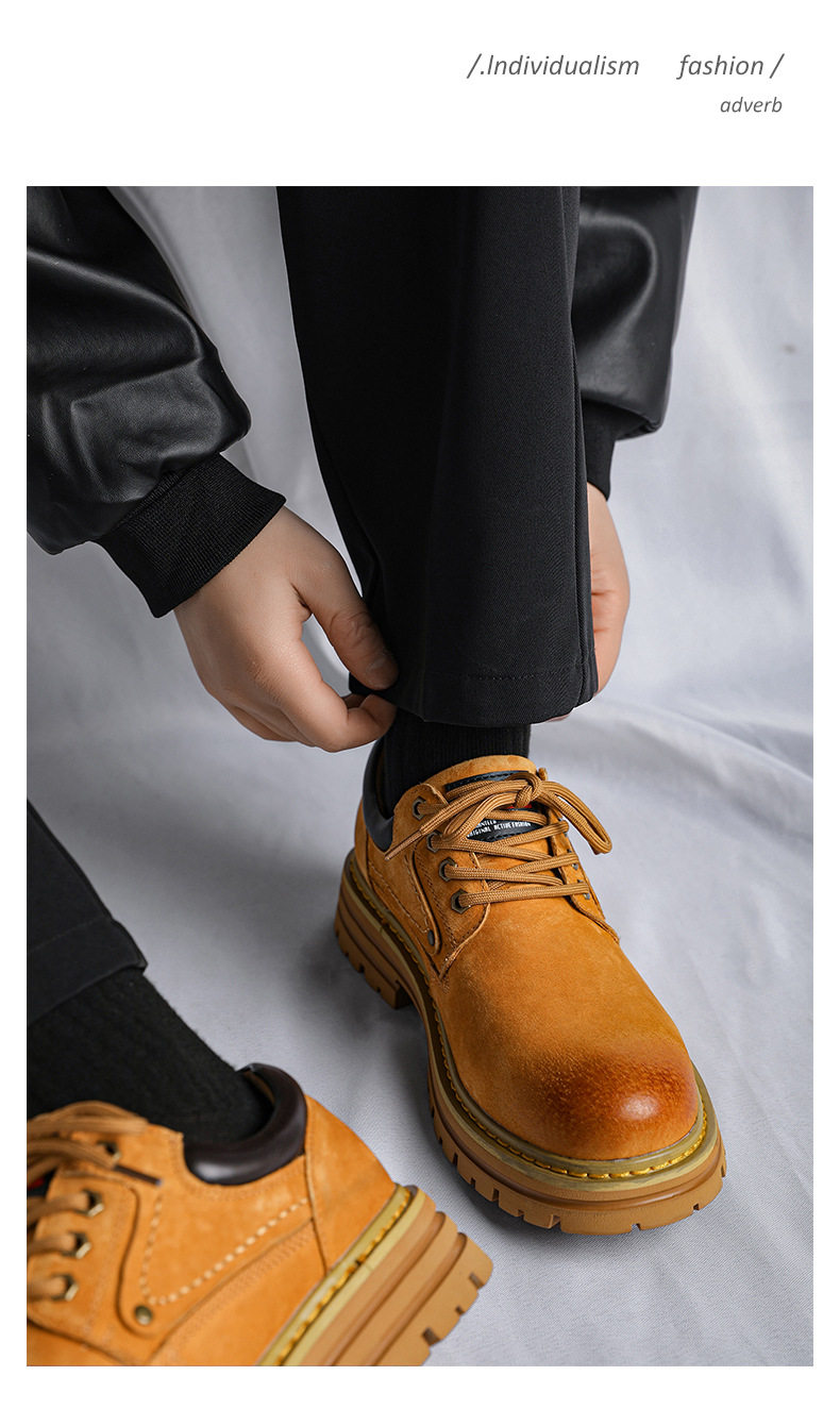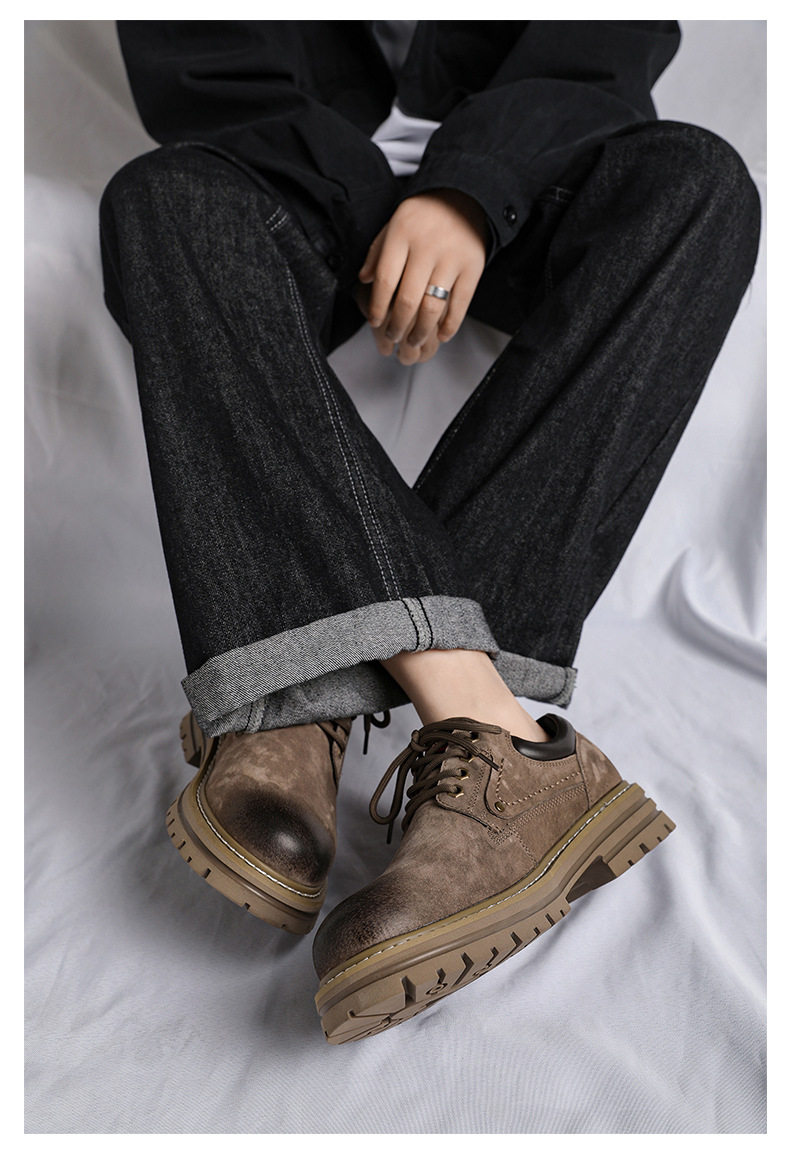 3191工装鞋子春季新款复古英伦百搭短靴厚底增高猪皮低帮马丁靴男