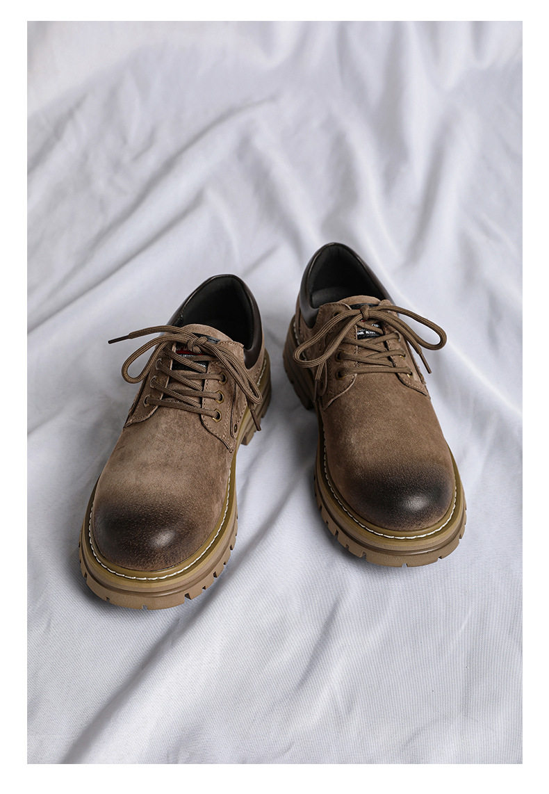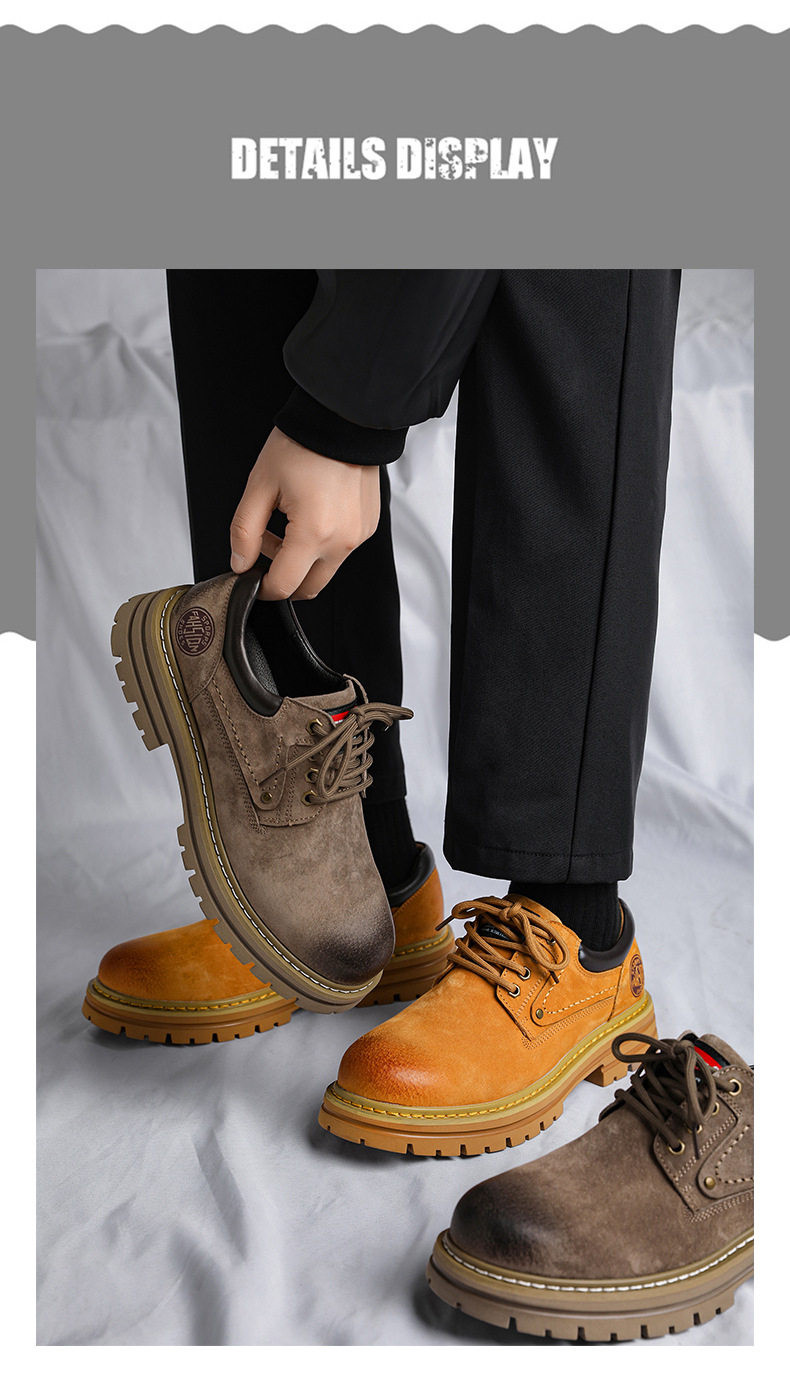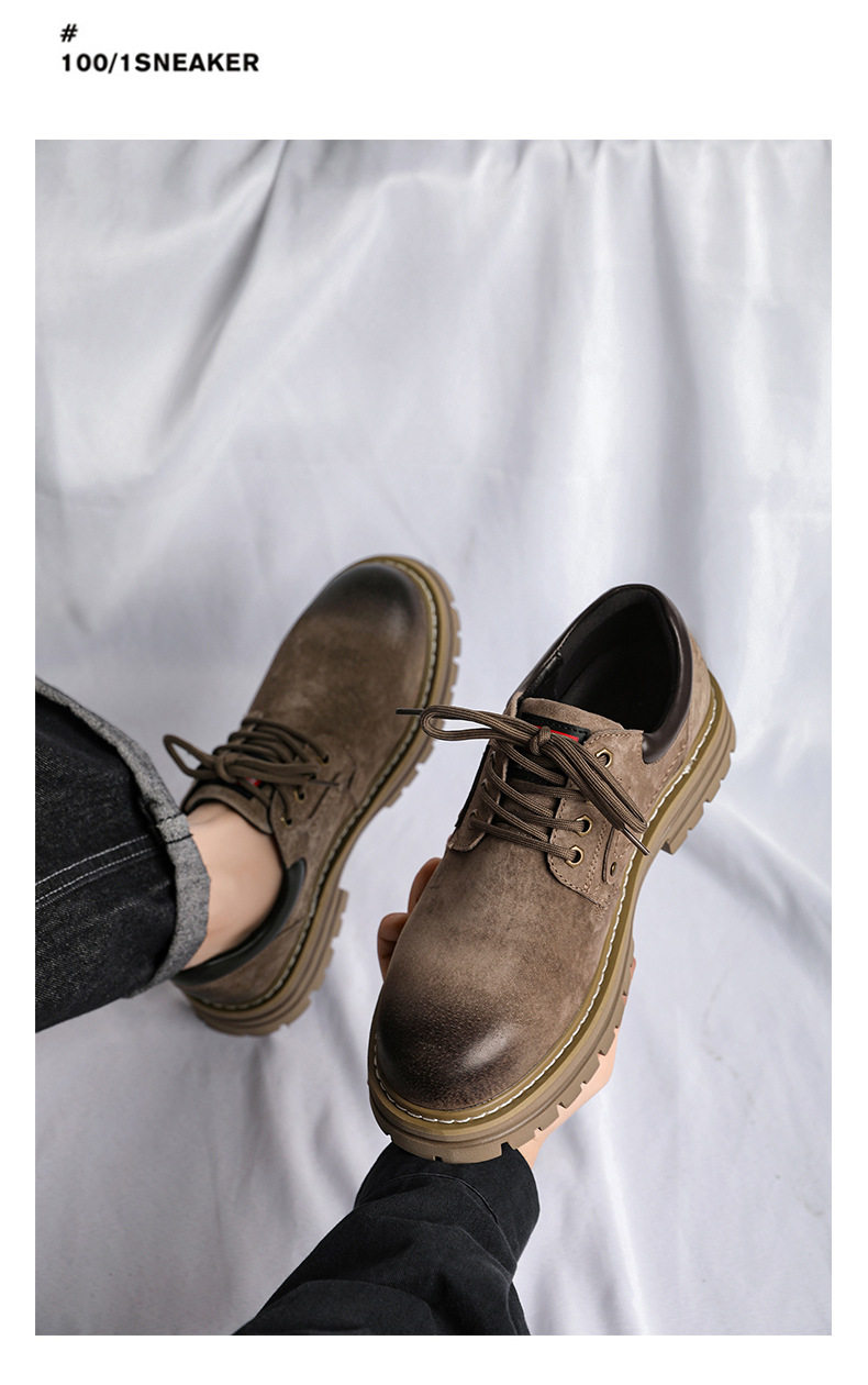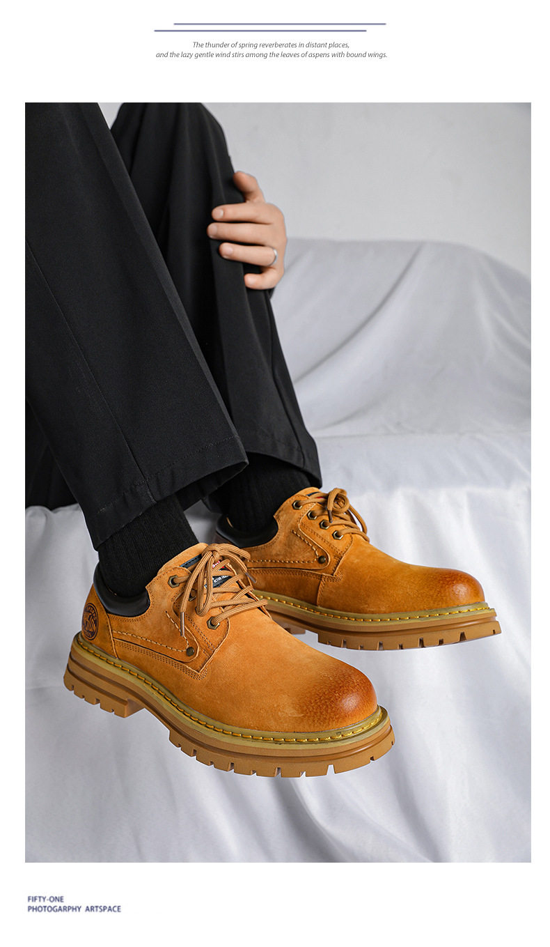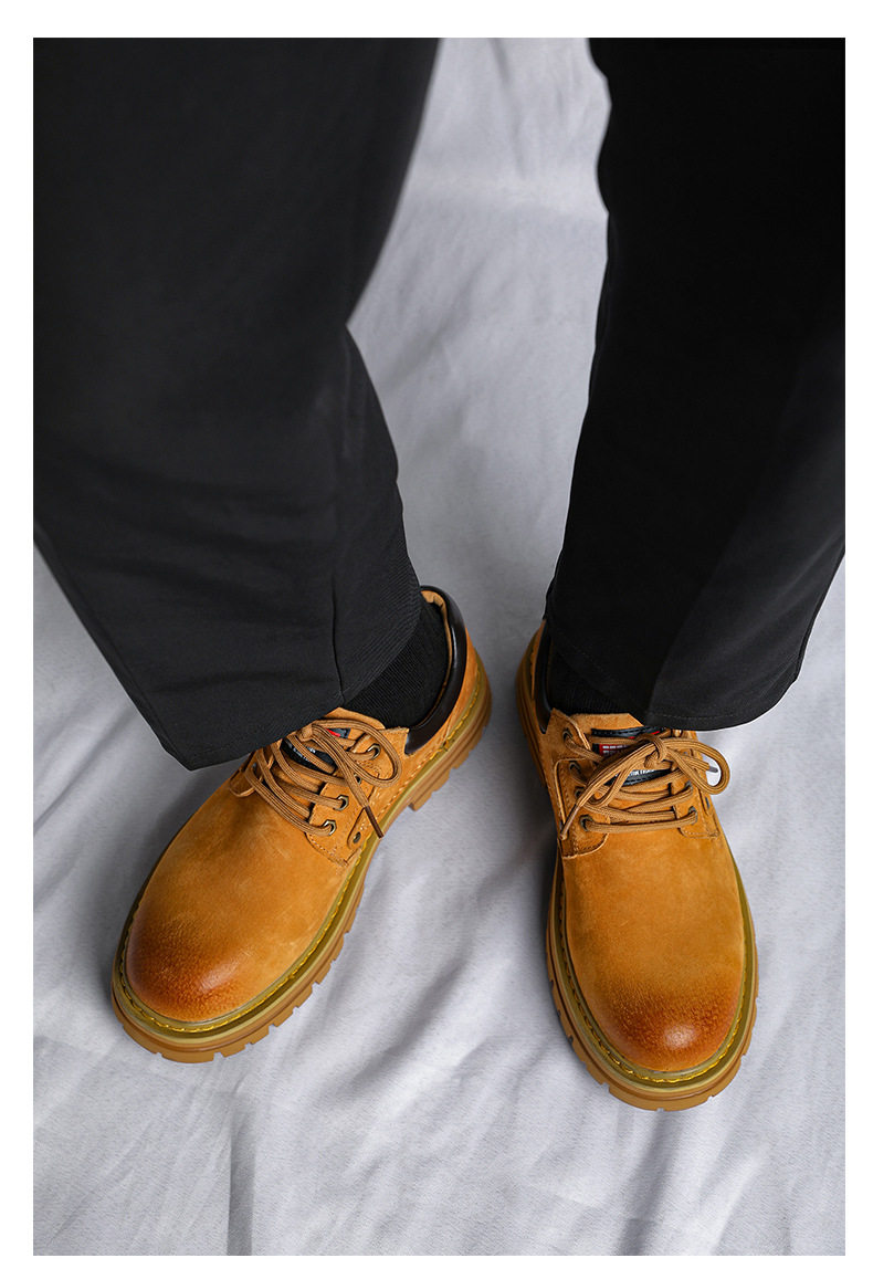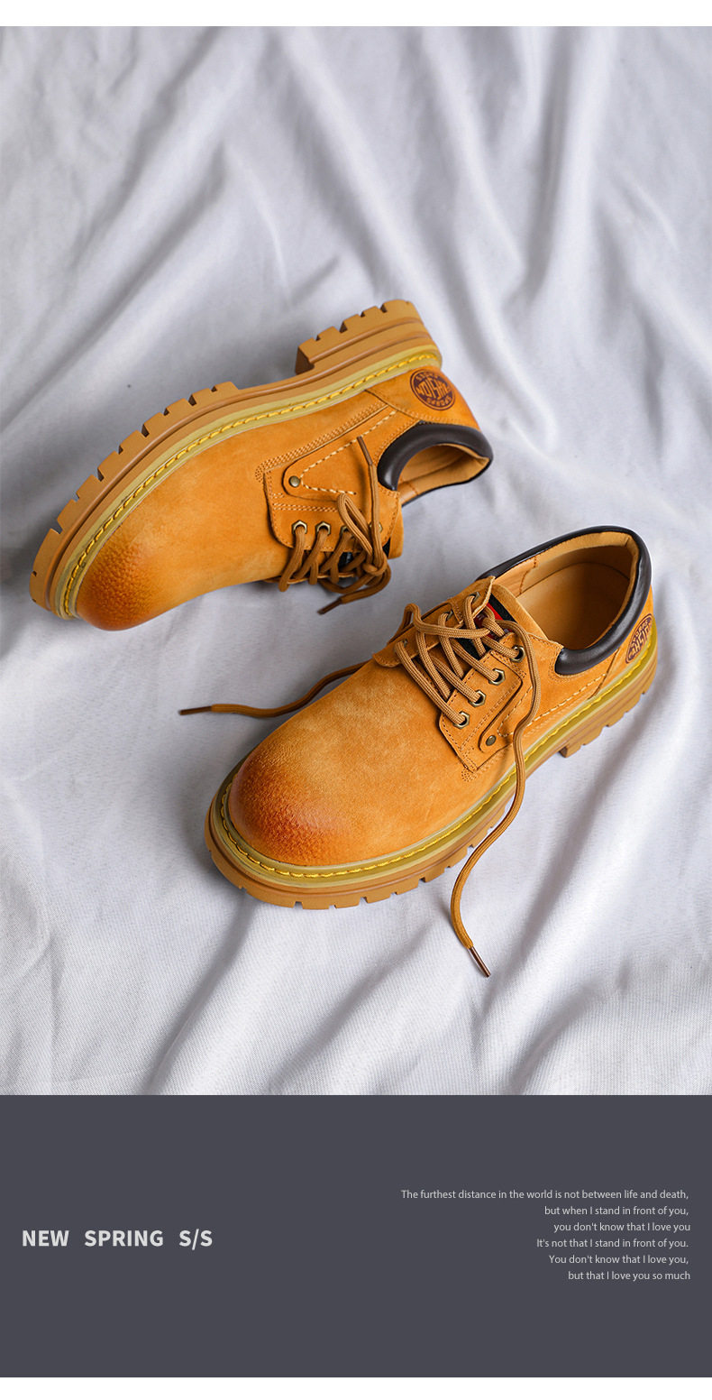 3191工装鞋子春季新款复古英伦百搭短靴厚底增高猪皮低帮马丁靴男