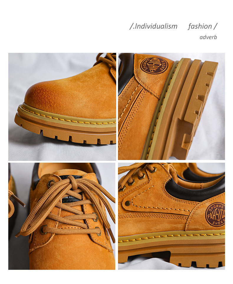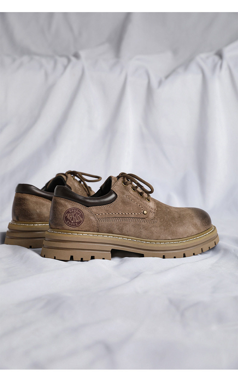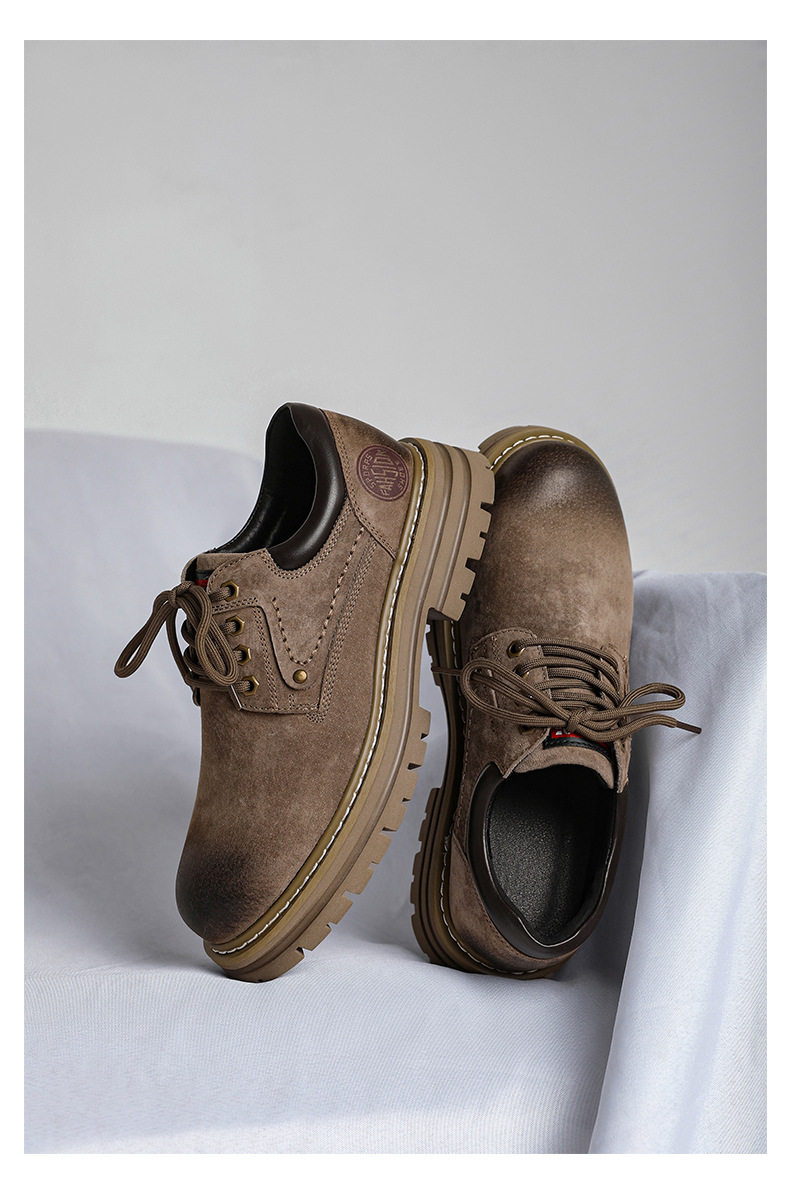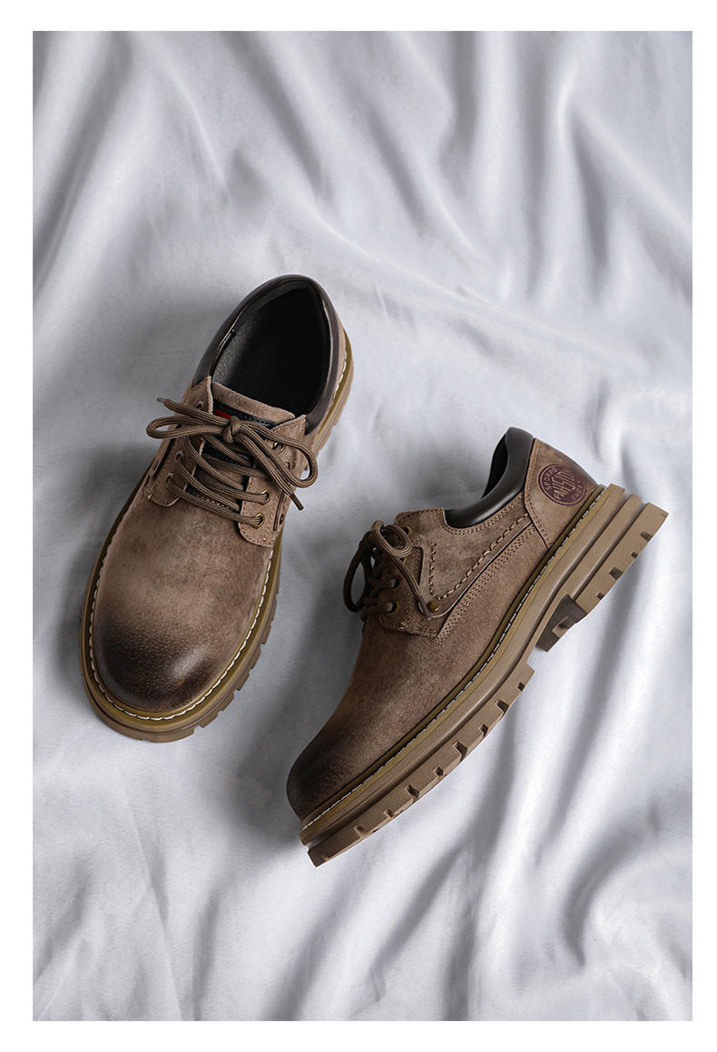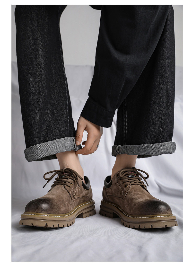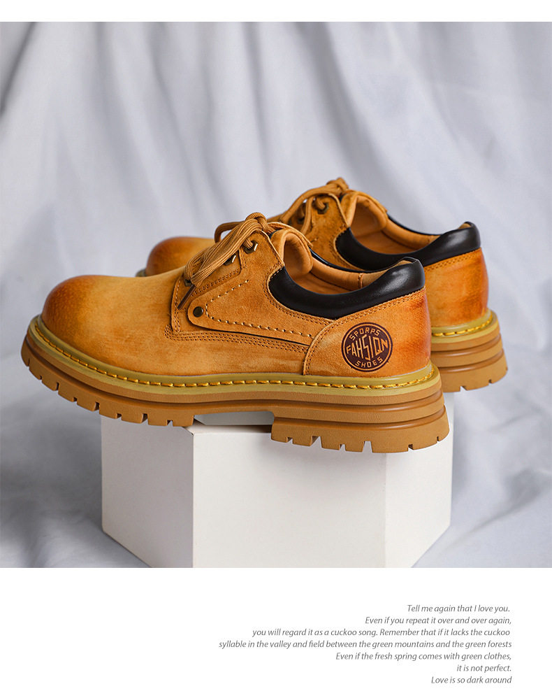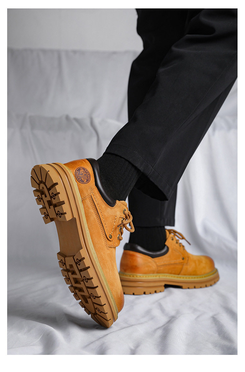 3191工装鞋子春季新款复古英伦百搭短靴厚底增高猪皮低帮马丁靴男