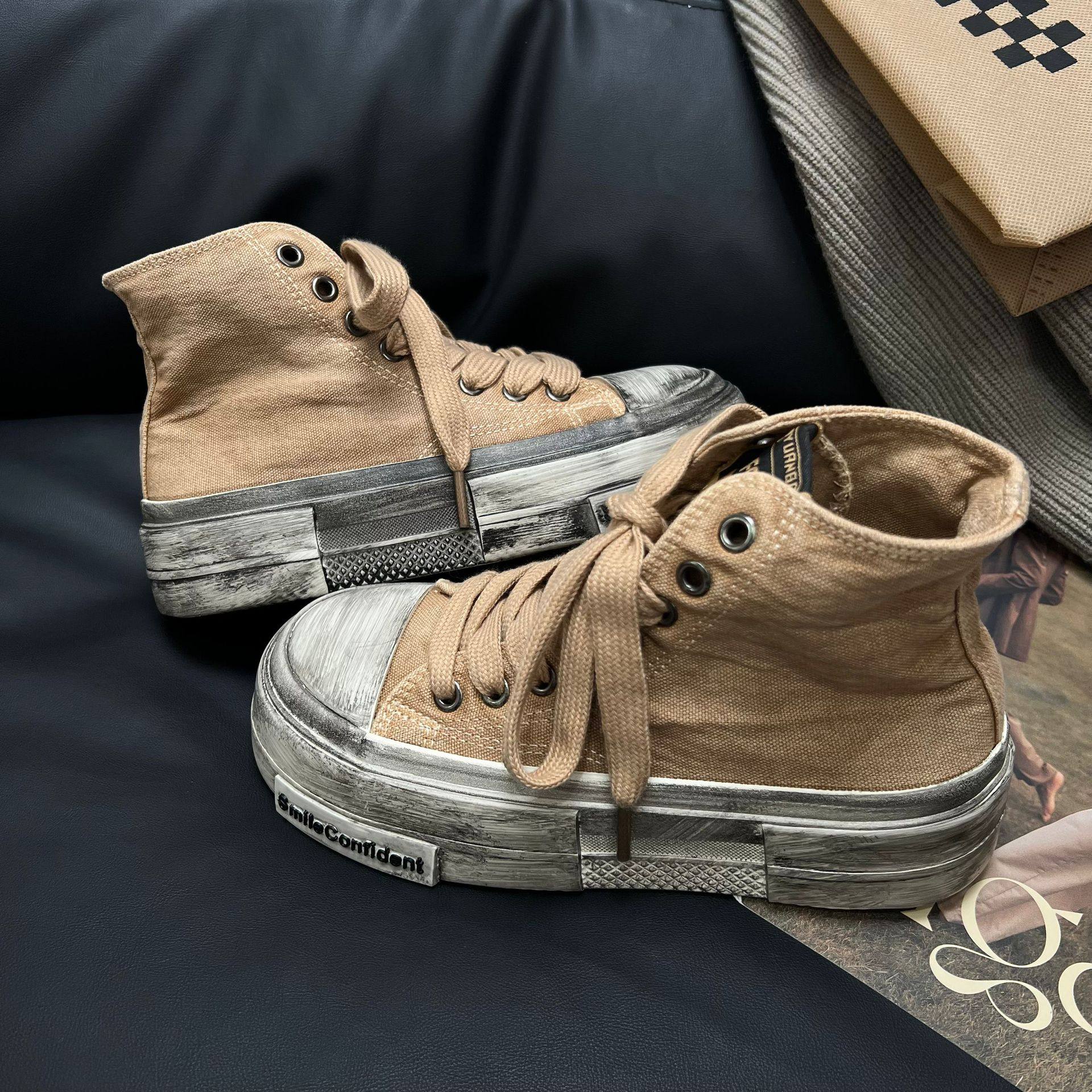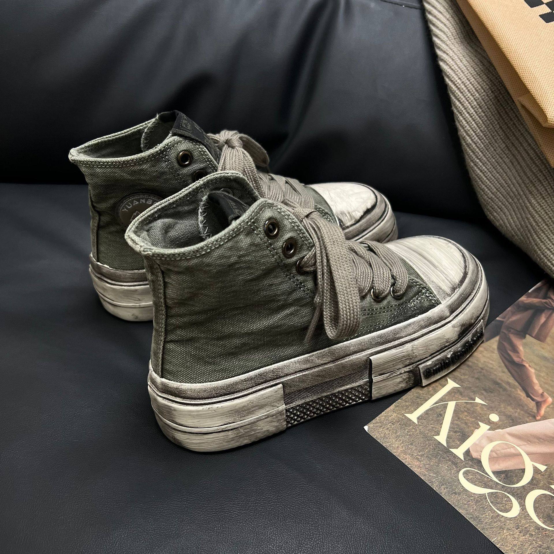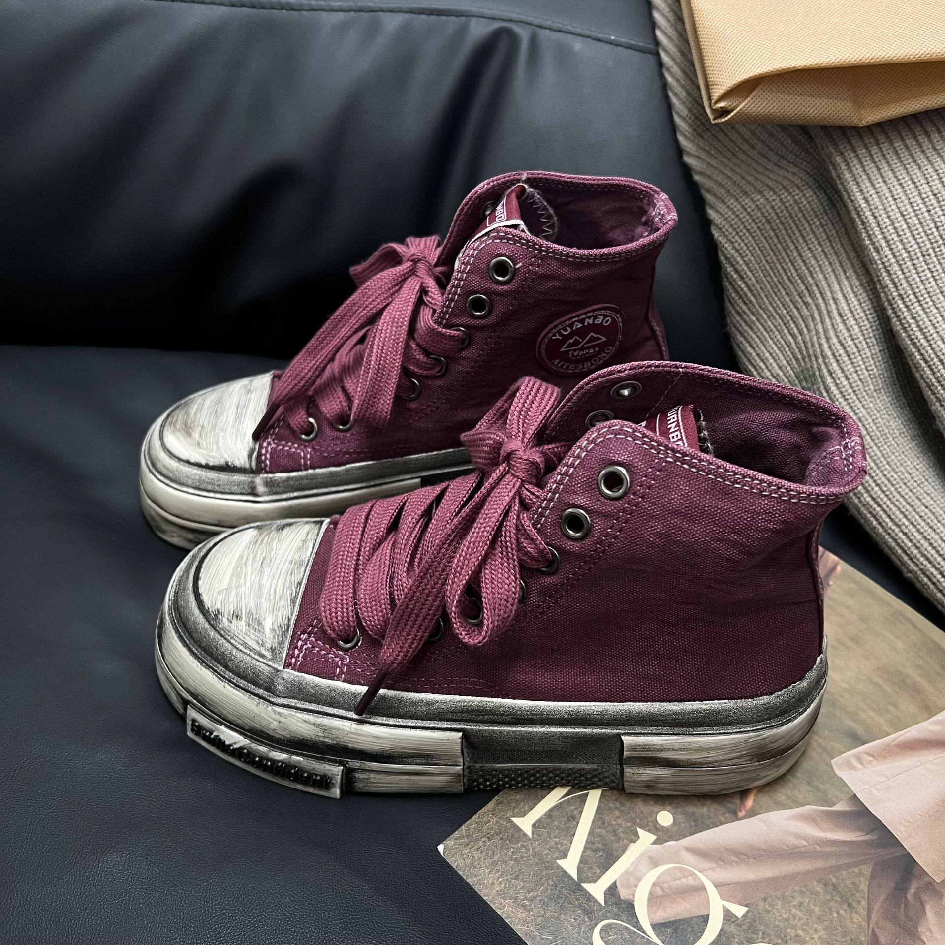 厚底做旧高帮帆布鞋女2024秋休闲百搭复古脏脏鞋学生ins潮滑板鞋