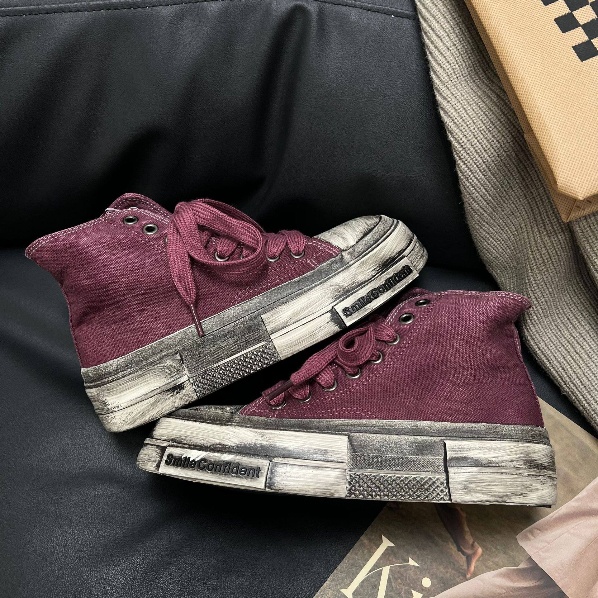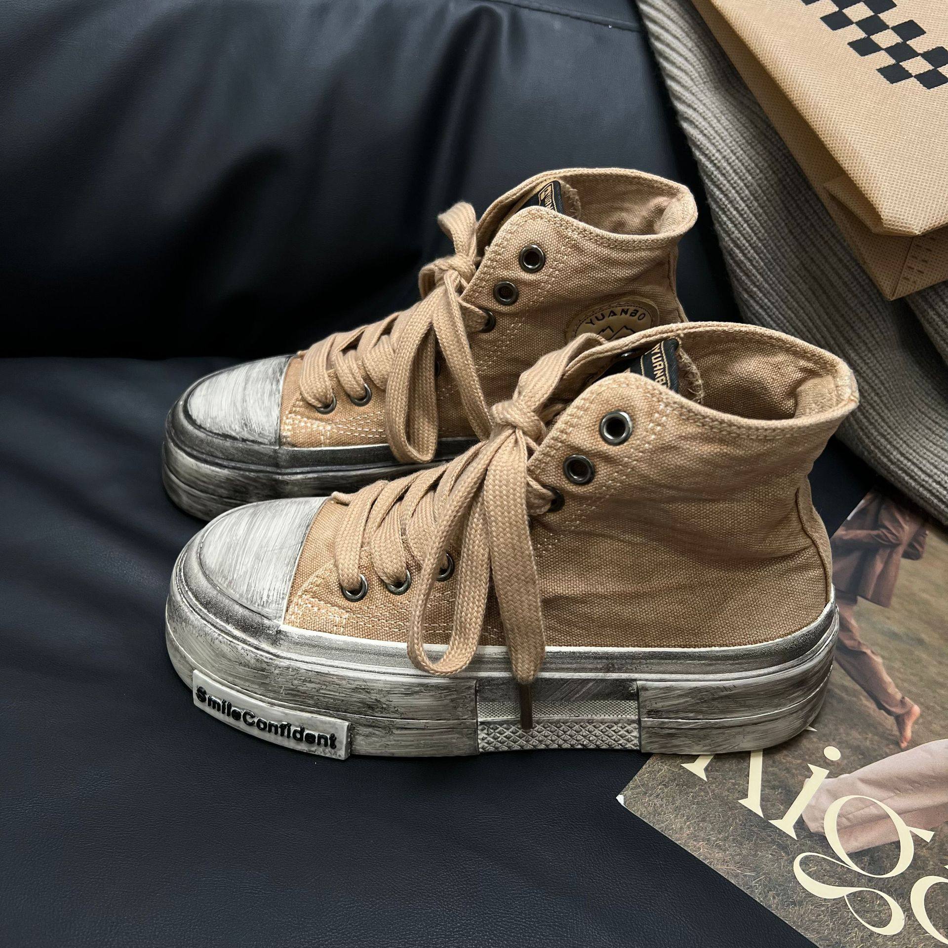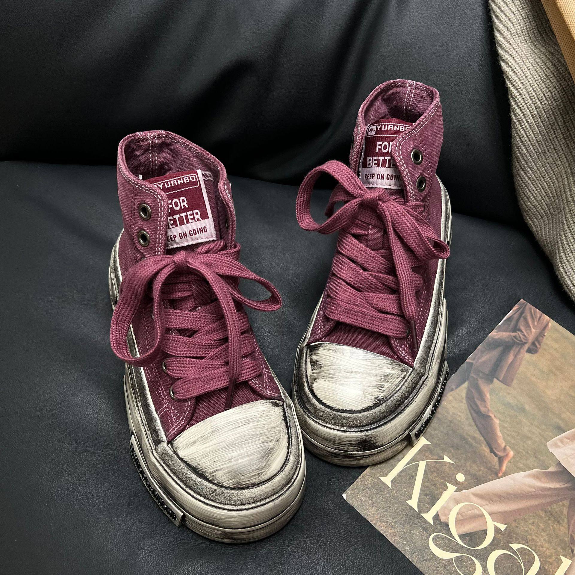 厚底做旧高帮帆布鞋女2024秋休闲百搭复古脏脏鞋学生ins潮滑板鞋