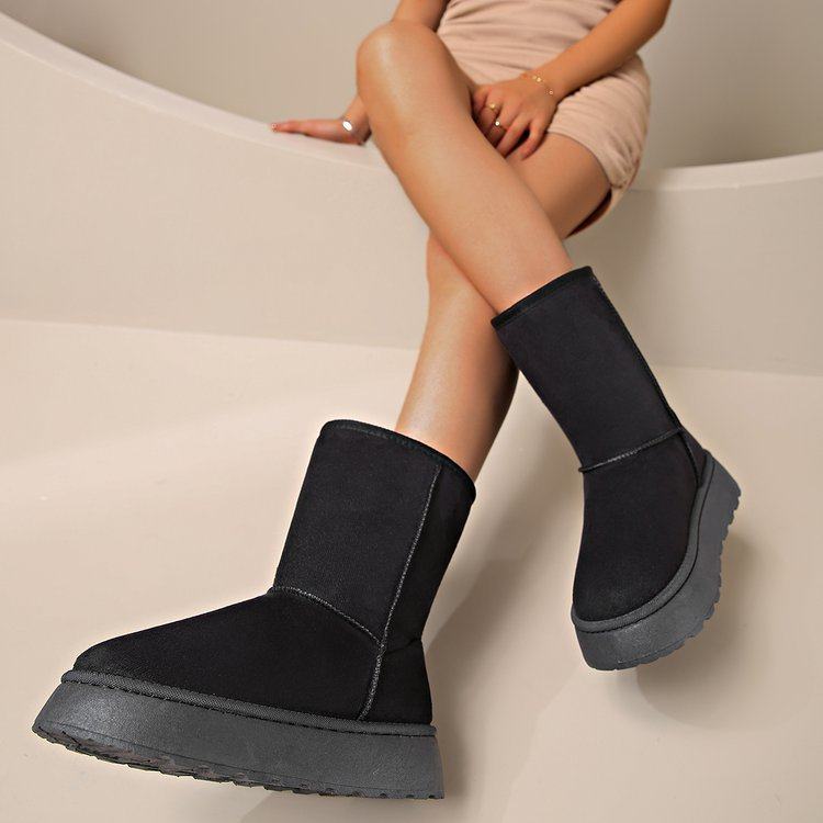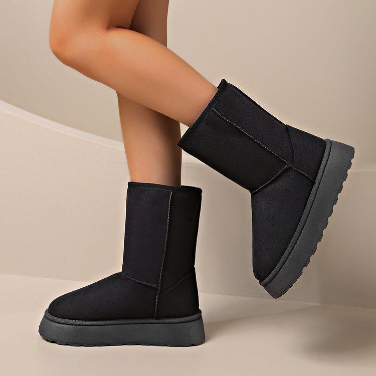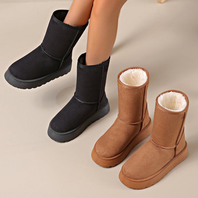 2024冬季新款雪地靴女加绒防滑保暖短靴厚底棉鞋女式中筒棉鞋批发