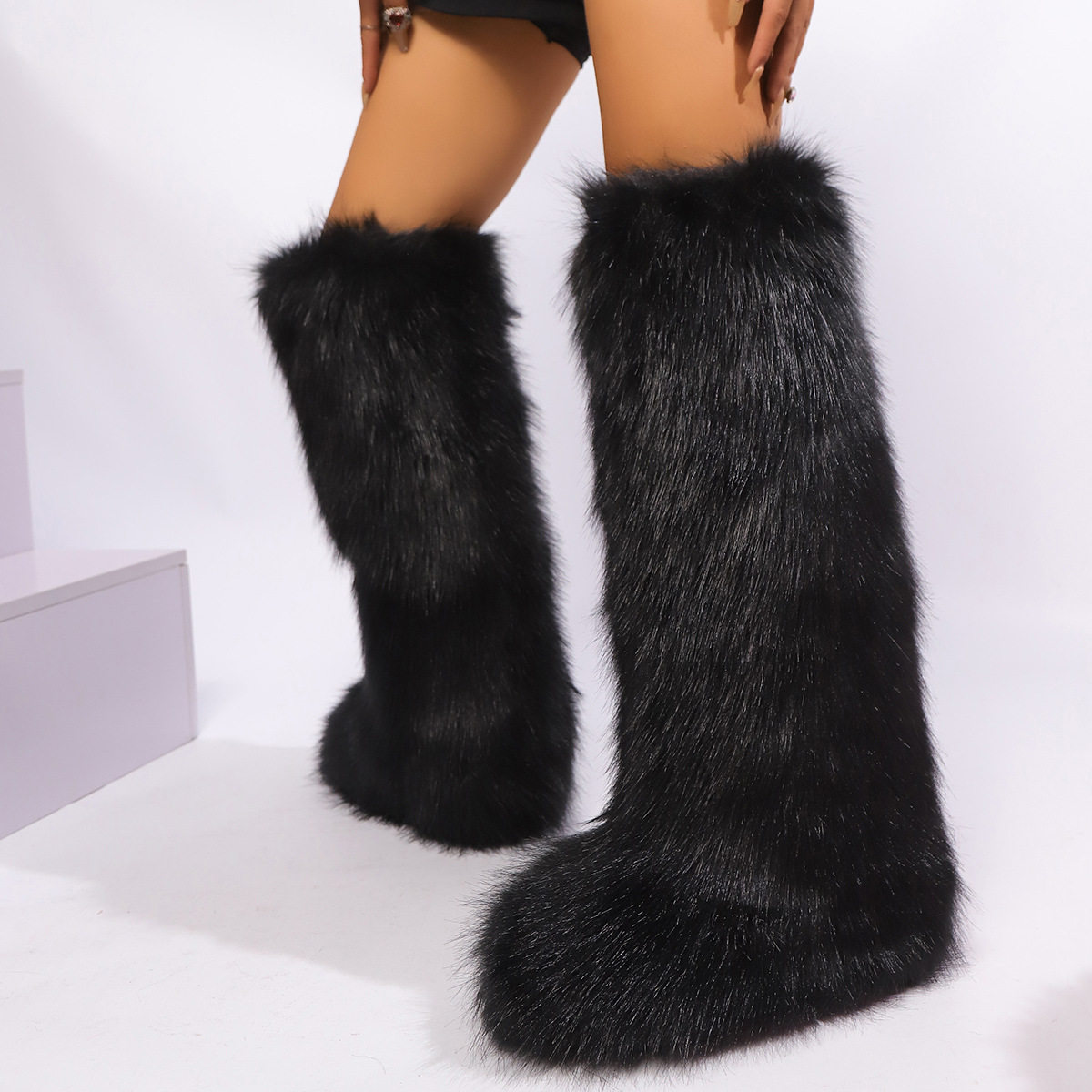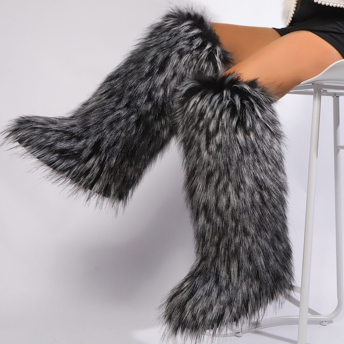 跨境y2k仿貉子毛毛靴子长筒冬天女士冬季仿皮草狐狸雪地靴高筒靴