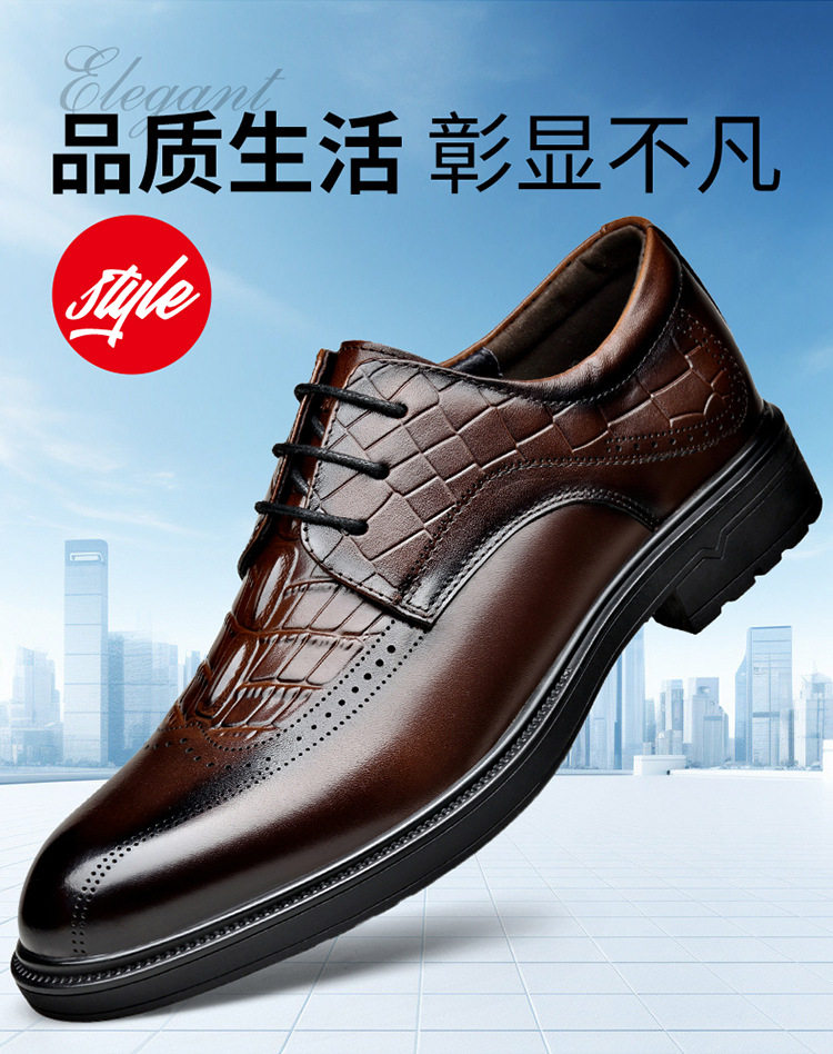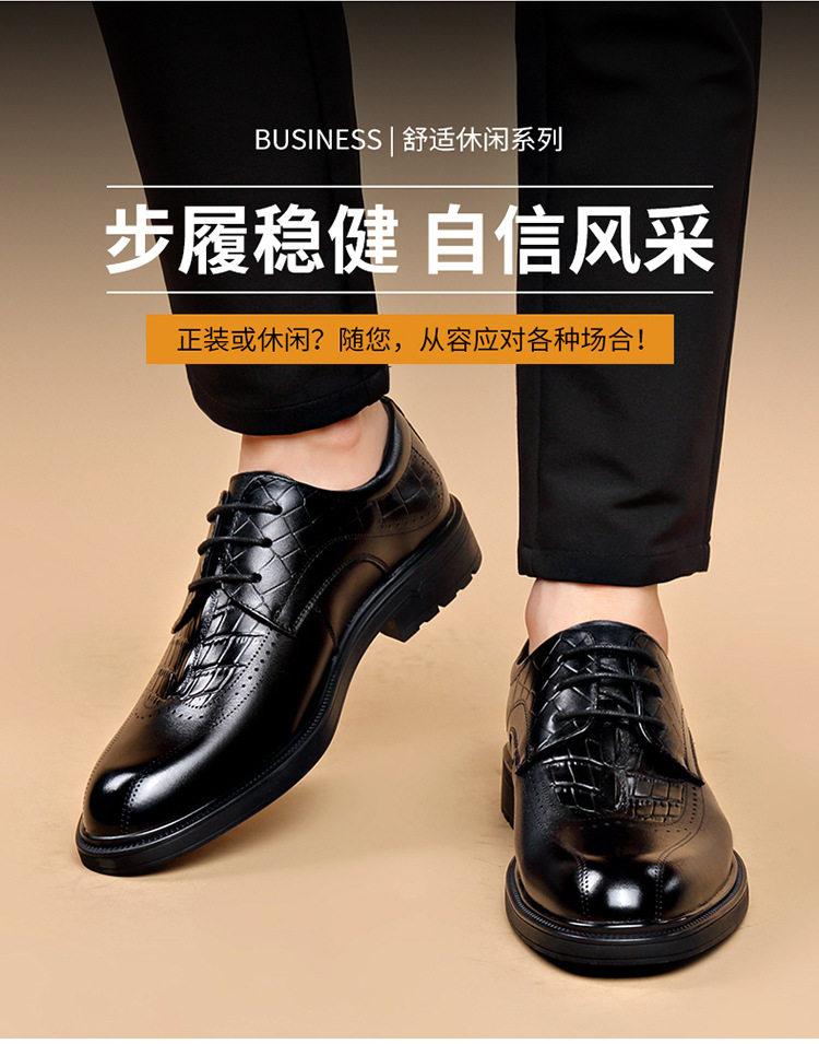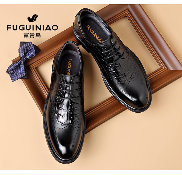 富贵鸟头层牛皮布洛克商务皮鞋高端真皮正品系带黑色新郎鞋结婚鞋