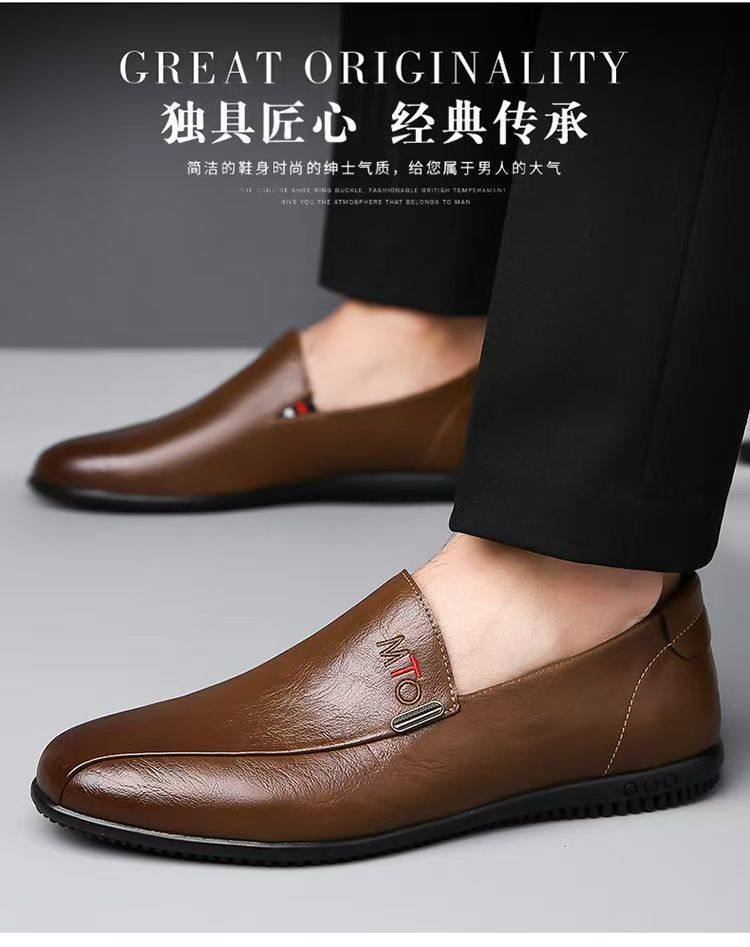 Men's Leather Shoes 2025 New Breathable Casual Pea Shoes Slip-on Leather Shoes Soft Bottom Soft Surface Driving Casual Men's Shoes