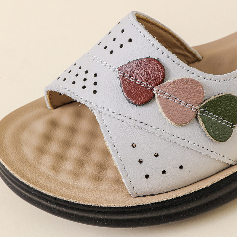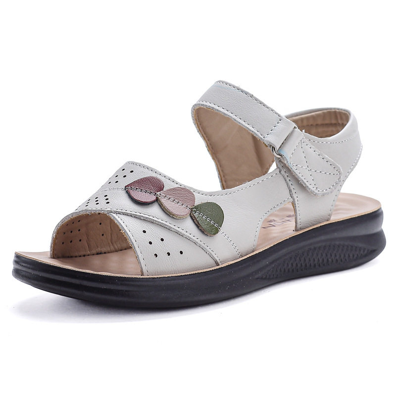 真牛皮中老年妈妈凉鞋女新夏法式配裙子厚底松糕按摩平底罗马凉鞋