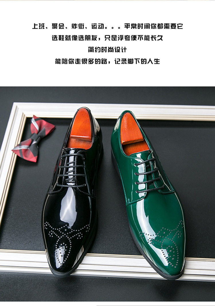 跨境大码亚马孙男士低帮休闲绿色布洛克系带尖头商务正装青年皮鞋