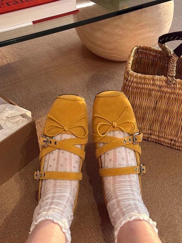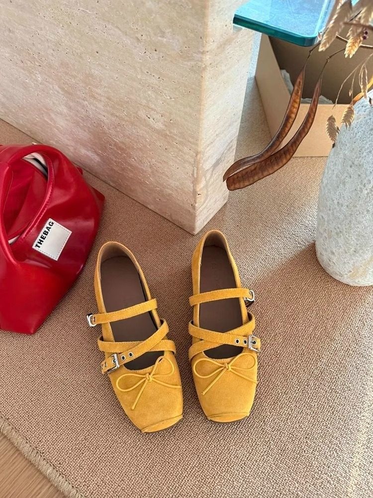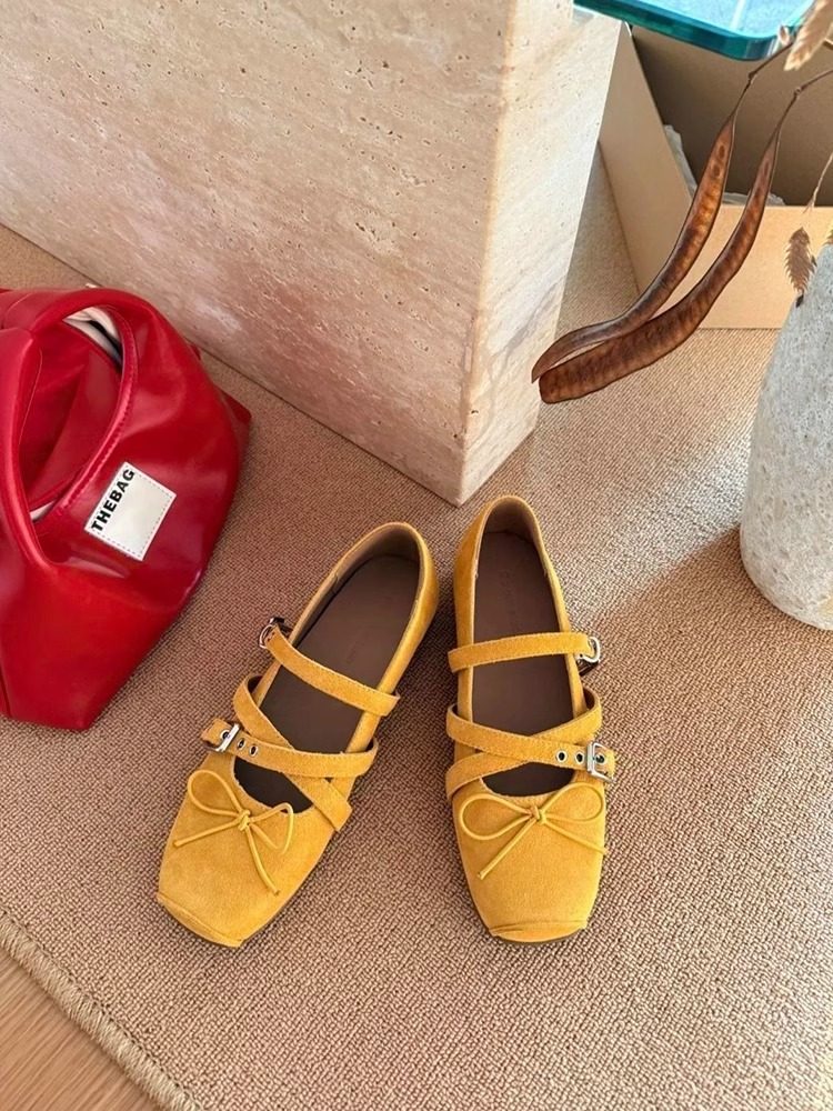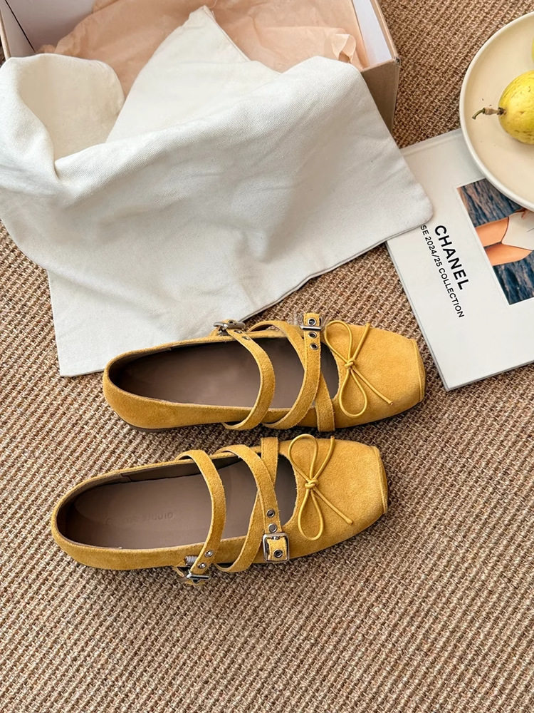 羊皮版6cm内增高方头蝴蝶结皮带扣浅口玛丽珍单鞋女软底芭蕾舞鞋