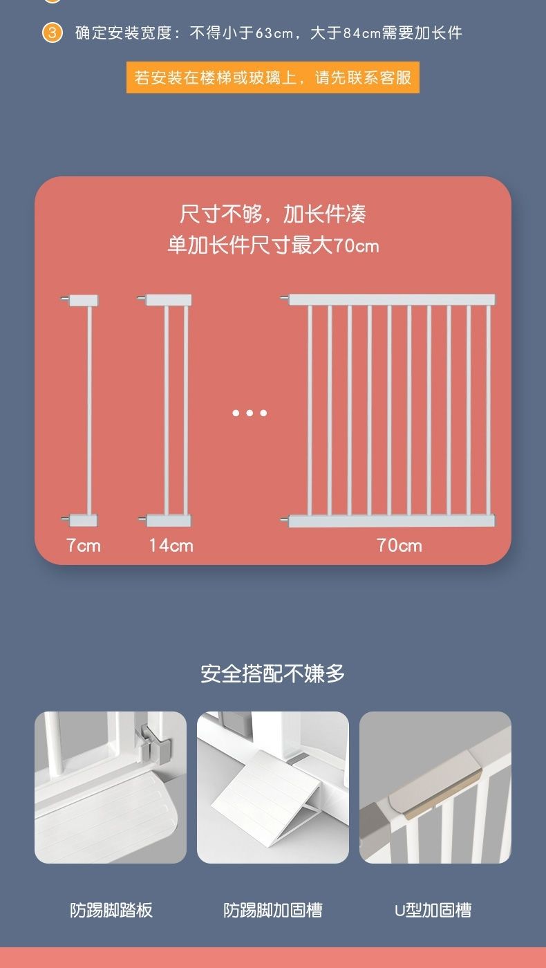 Qihuang baby safety gate stair entrance guardrail baby home isolation door pet fence fence pole no punching applicable width 97-104cm height 78cm