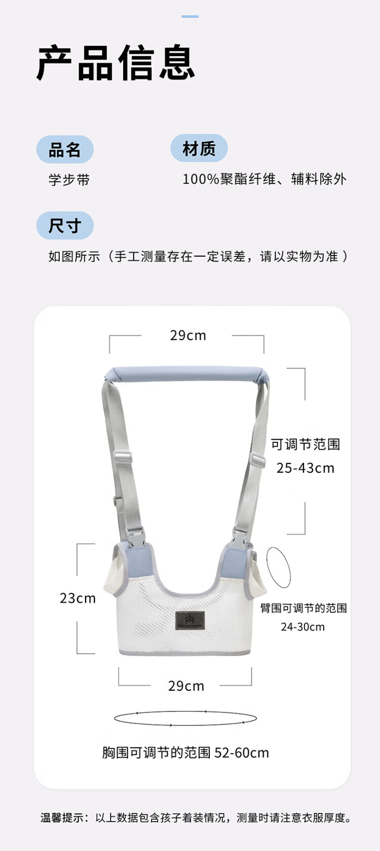 亨凯利宝宝学步带婴幼儿童防摔小孩学站神器走路辅助防勒婴儿牵引绳蓝