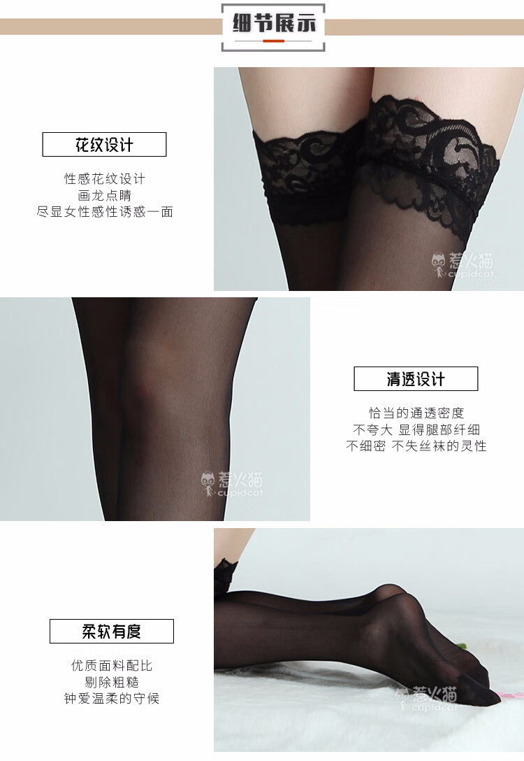 Hot Cat Sexy Lingerie Lace High Stockings Stockings Sexy Temptation Open File Tearable Black Silk Women R006 Black