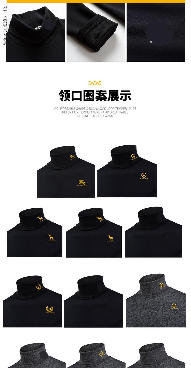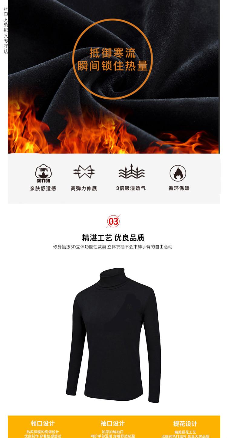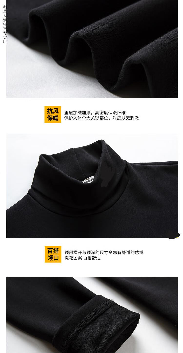 Scarecrow winter men's turtleneck bottoming shirt men's velvet thickened long-sleeved T-shirt pure cotton slim trend top turtleneck black wheat ear S