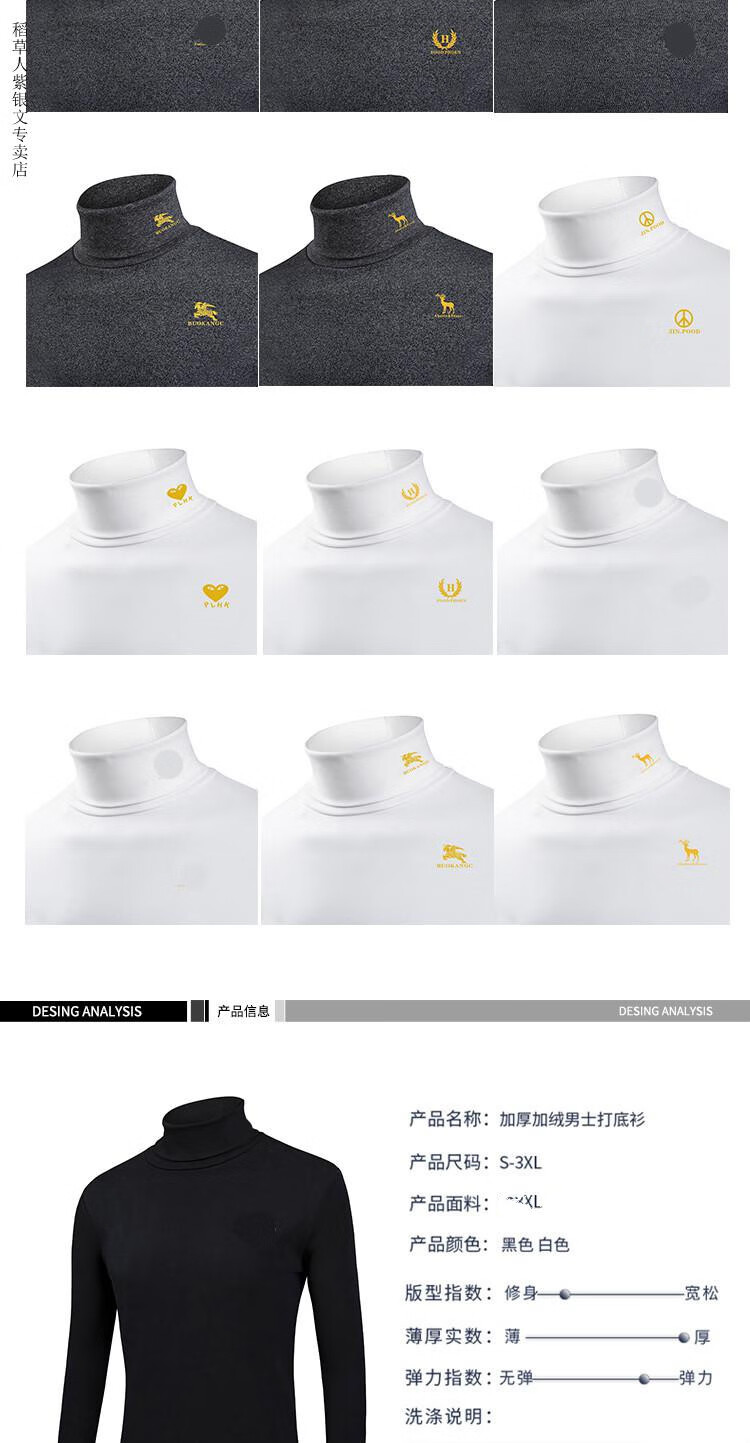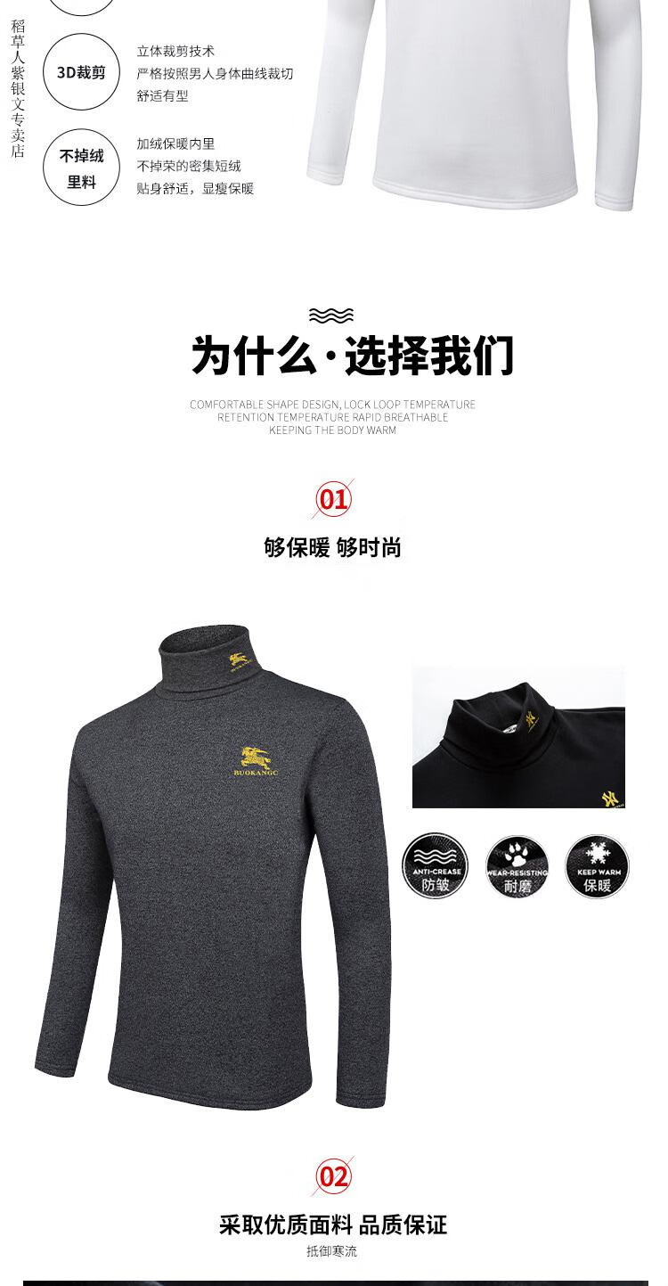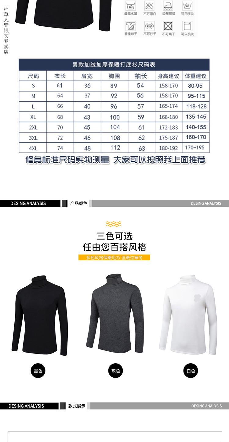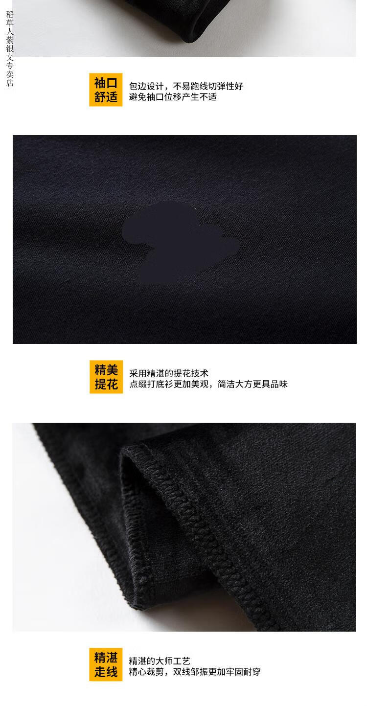 Scarecrow winter men's turtleneck bottoming shirt men's velvet thickened long-sleeved T-shirt pure cotton slim trend top turtleneck black wheat ear S