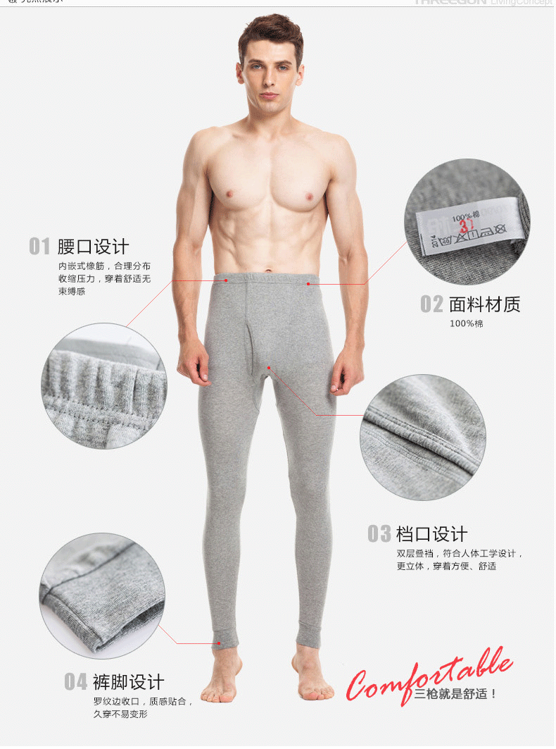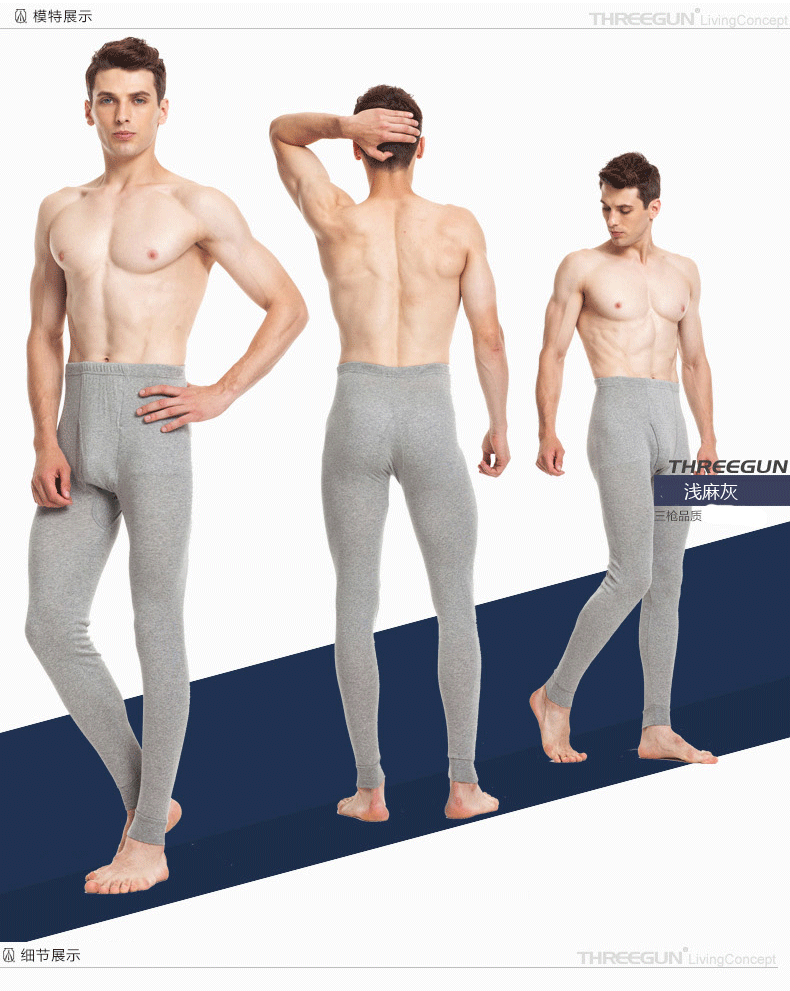 Three-gun men's autumn and winter cotton stretch high-waist slim-fit warm and cold-resistant linen pants cotton wool trousers underpants thicker cotton long johns 61069 Navy XL (weight 130-150Jin Jin is equal to 0.5 kg)
