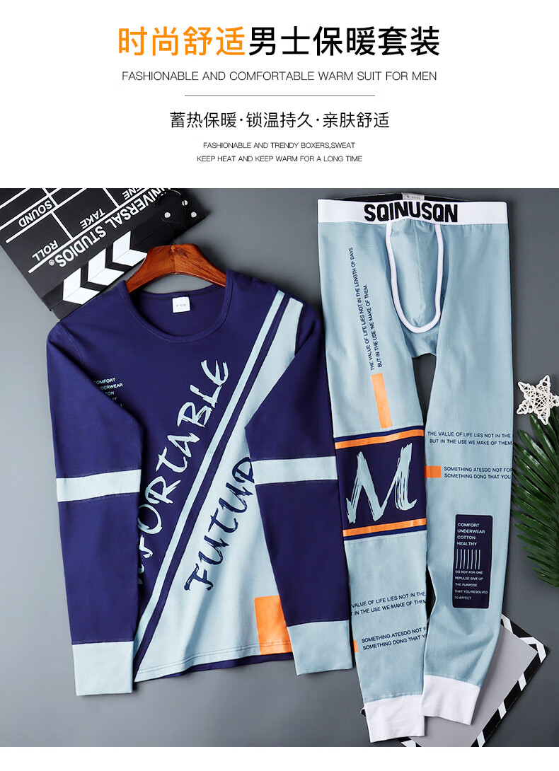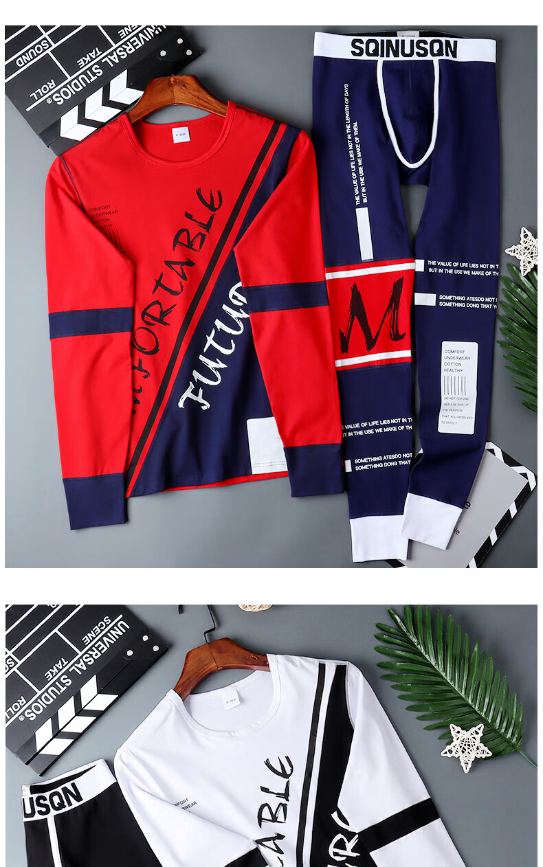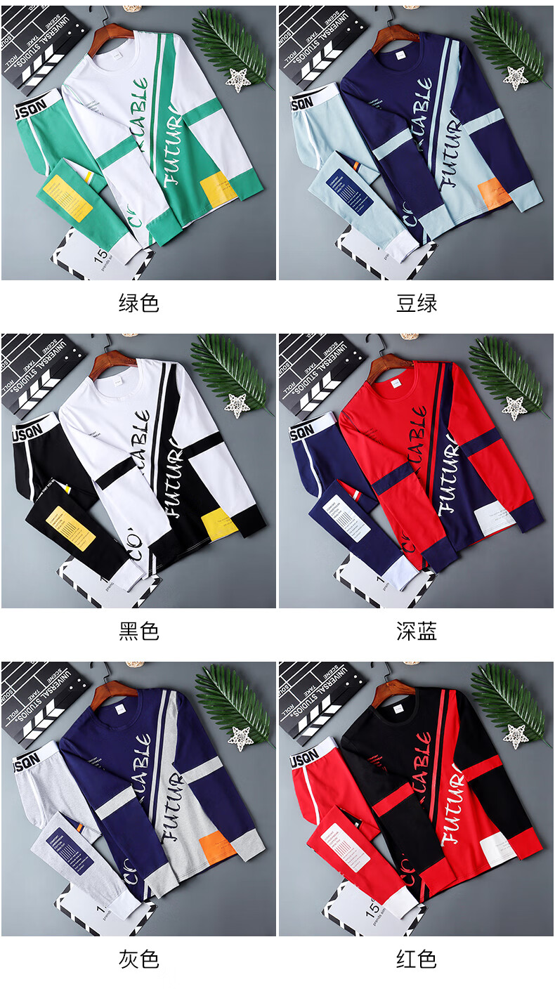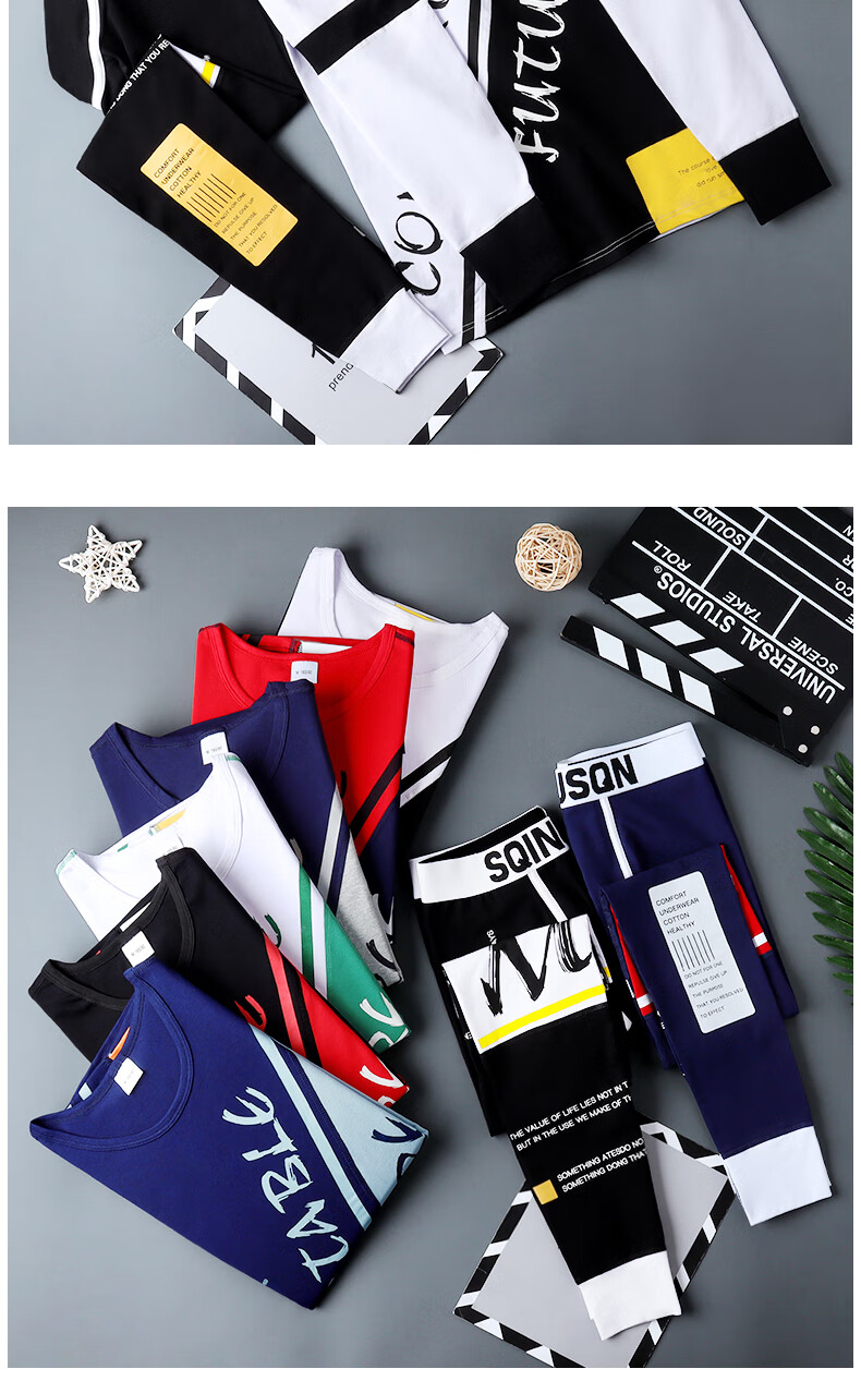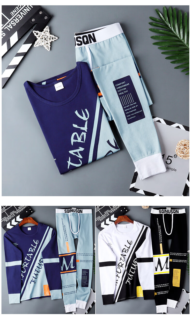Wolf Country Men's Autumn Clothes and Autumn Pants Men's Suits for Autumn and Winter Youth Coldproof Linens and Linen Pants Bottoming Shirts Trendy Tight Warm Clothes Suit Black XL Suitable for 120-140Jin Jin equals 0.5 kg