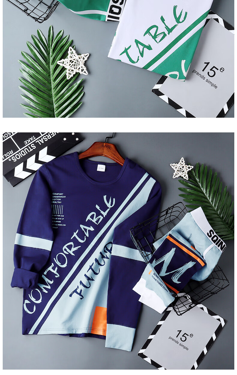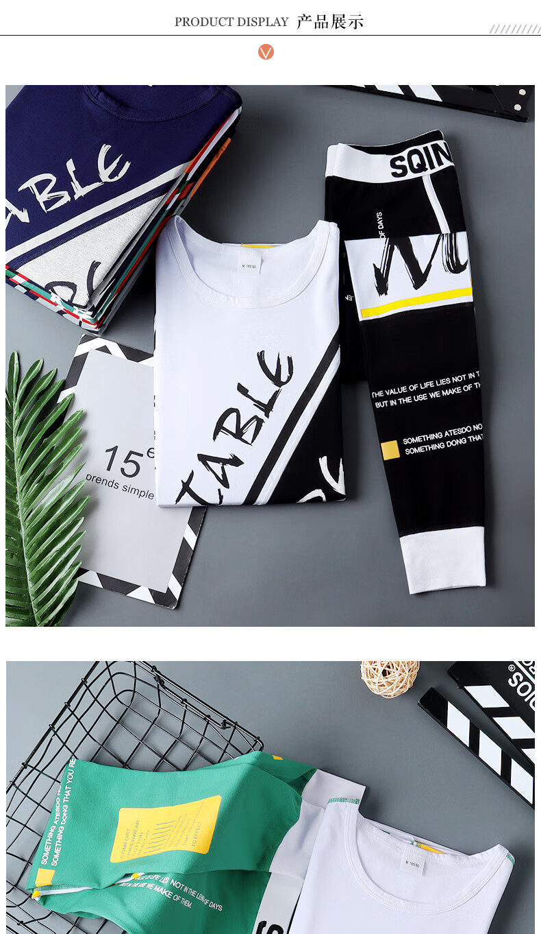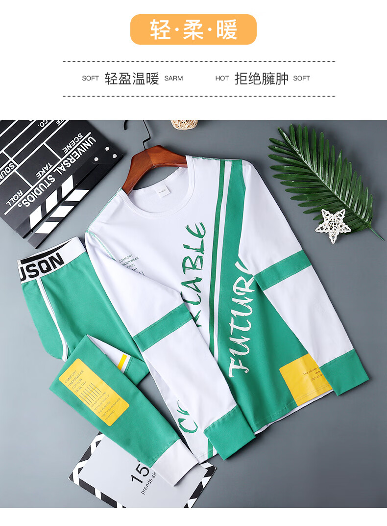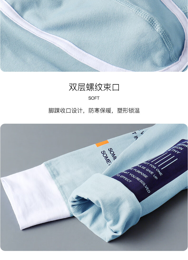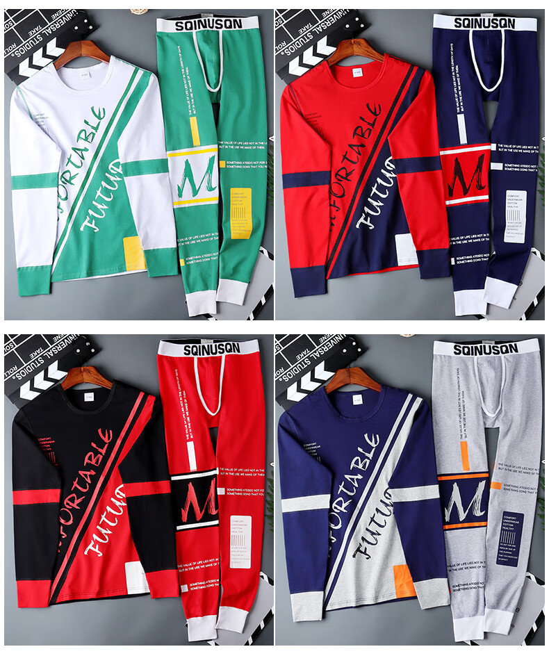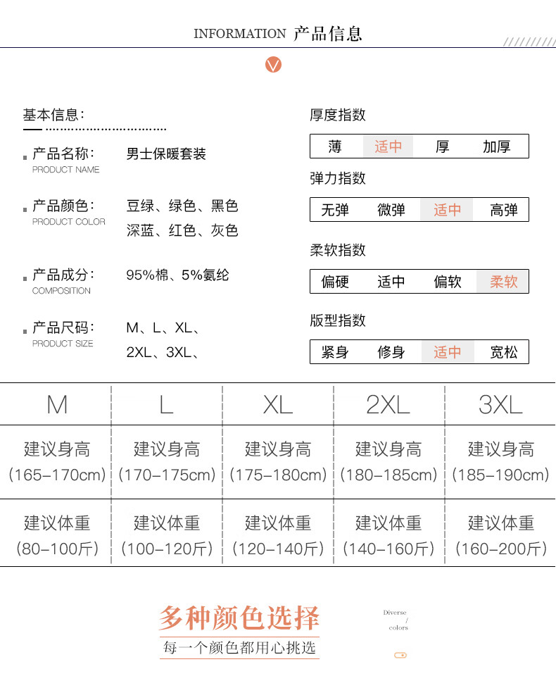 Wolf Country Men's Autumn Clothes and Autumn Pants Men's Suits for Autumn and Winter Youth Coldproof Linens and Linen Pants Bottoming Shirts Trendy Tight Warm Clothes Suit Black XL Suitable for 120-140Jin Jin equals 0.5 kg