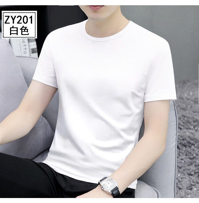 Oumeiti Light Luxury Men's Short-sleeved T-shirt Men's New Summer Slim Simple Solid Color Versatile Summer Comfortable Casual Top White XL (130-145Jin Jin equals 0.5kg)