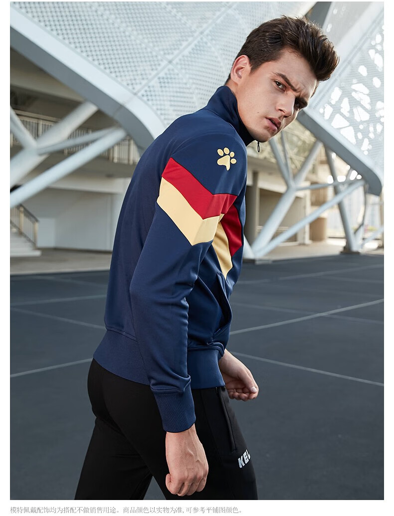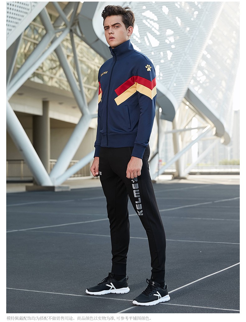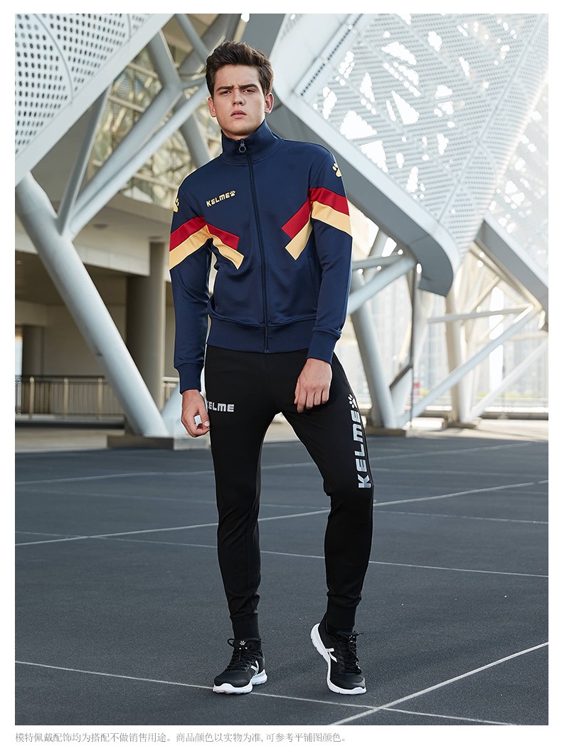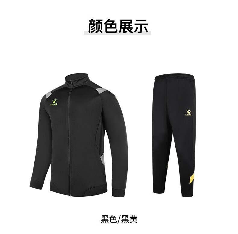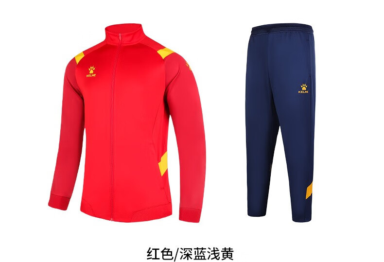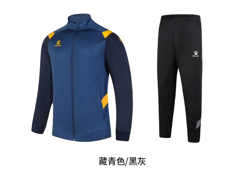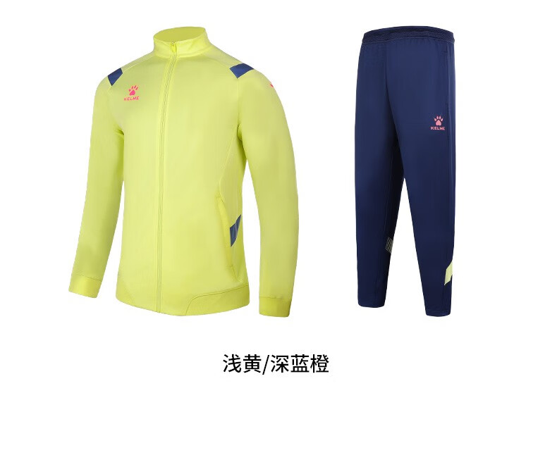 KELME/Kelme Football Training Outfit Sports Suit Men's Contrast Color Jacket Slim Leg Pants Men Navy Yellow 8161WT1005 Suit L