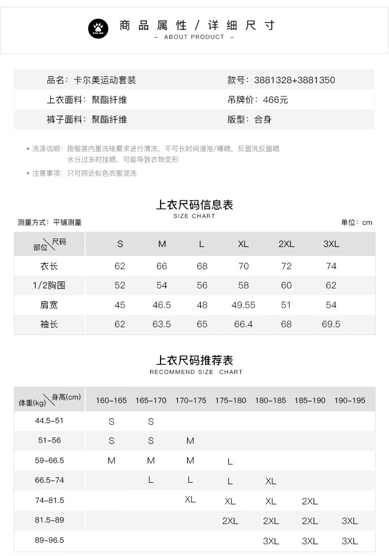 China (cm) 165 / 88-90 170 / 96-98 175 / 108-110 180 / 118-122 185 / 126-130