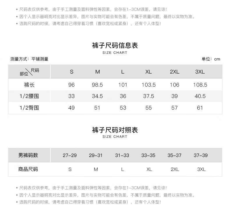 Outseam (cm) 99 cm 101.5 cm 104 cm 106.5 cm 109 cm