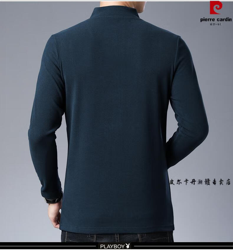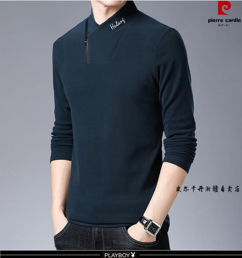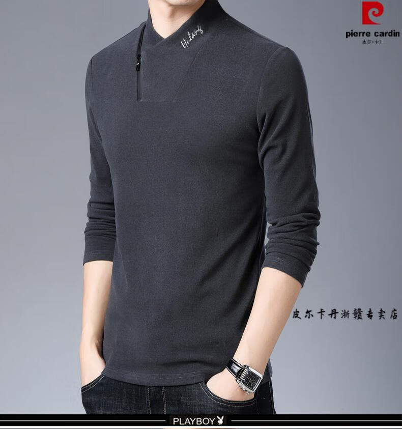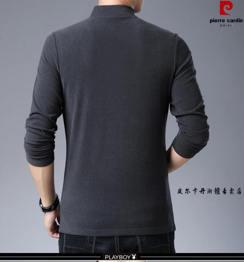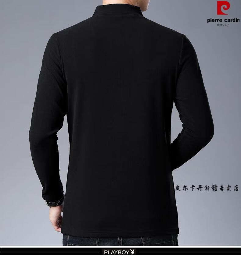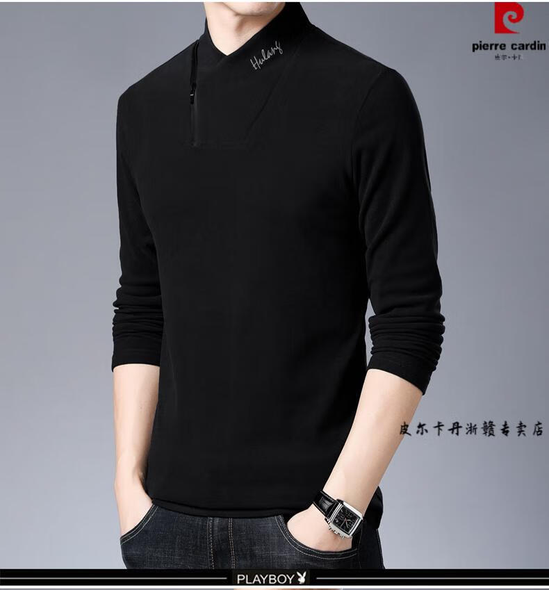 Pierre Cardin brand pure cotton long-sleeved sweatshirt men's half turtleneck T-shirt double-sided velvet autumn and winter new solid color slim bottoming shirt trendy HL-19819 black 175/XL