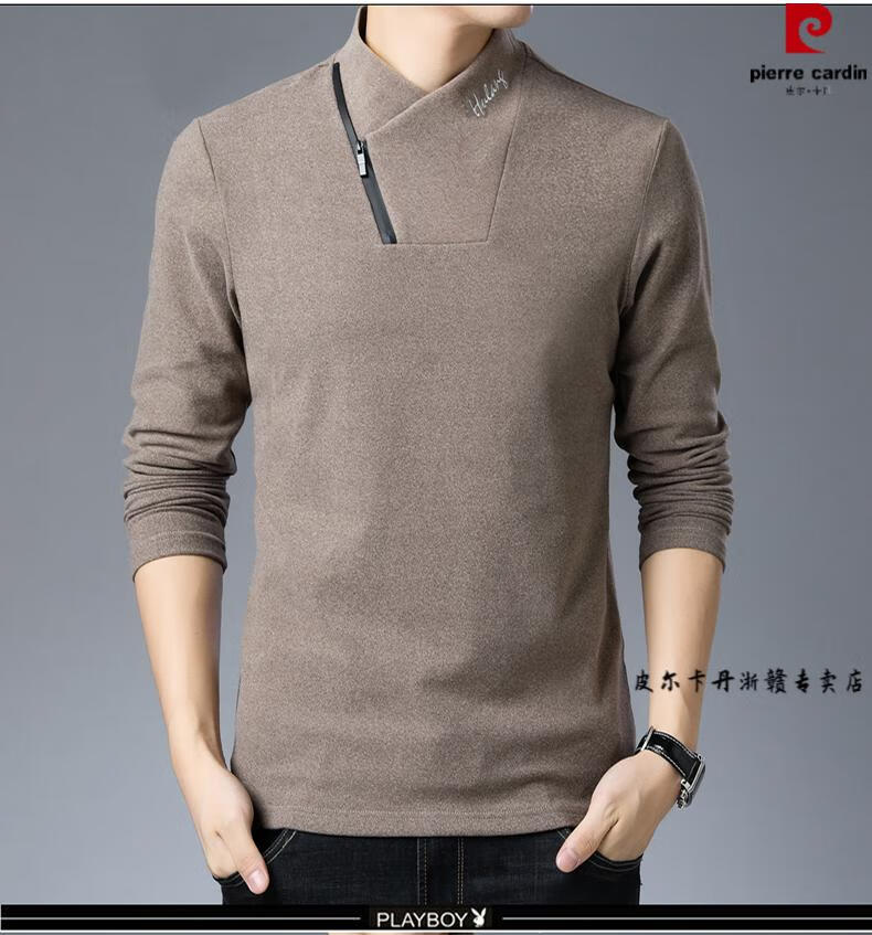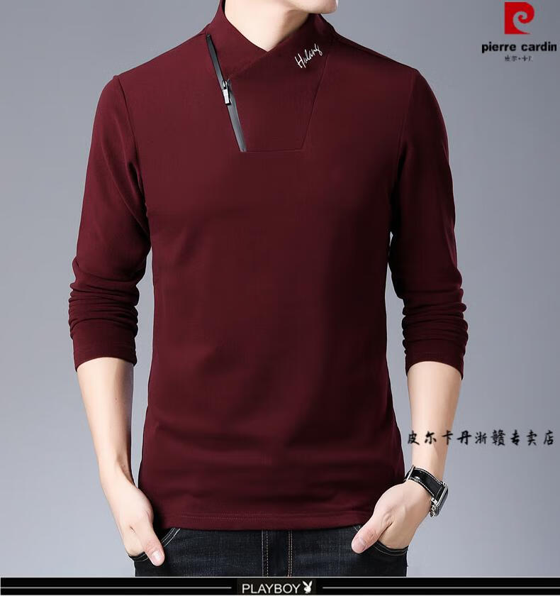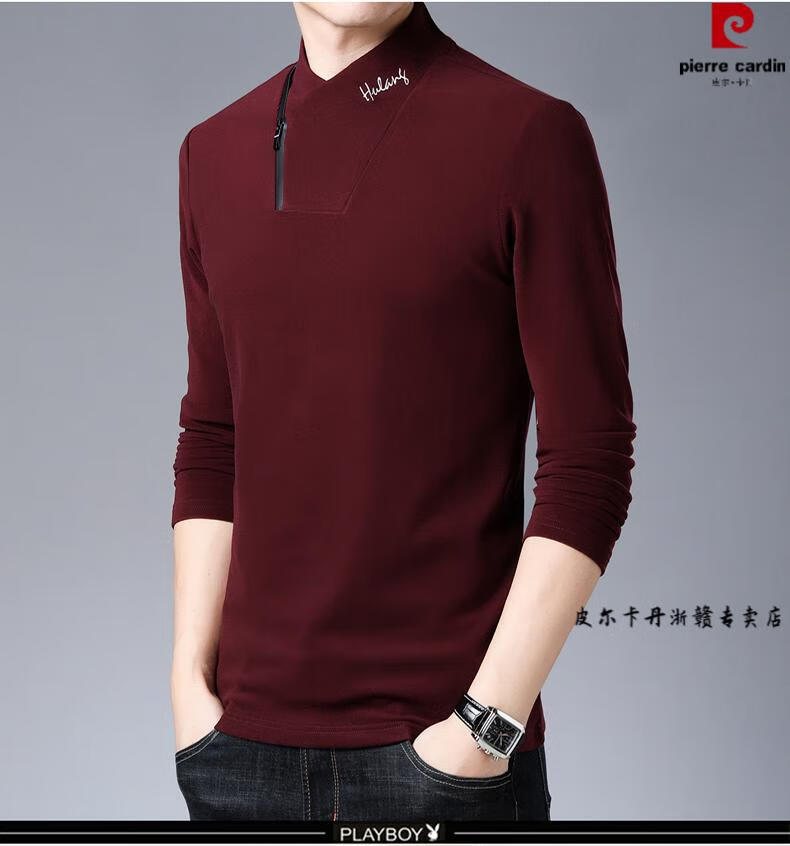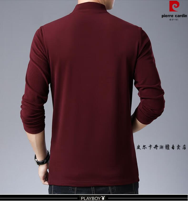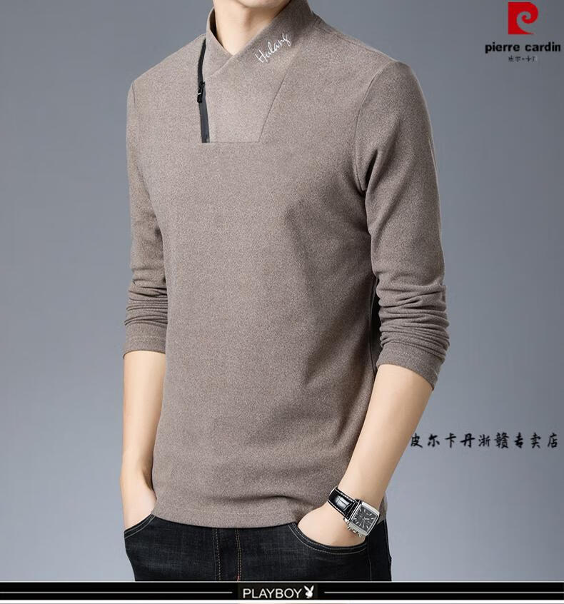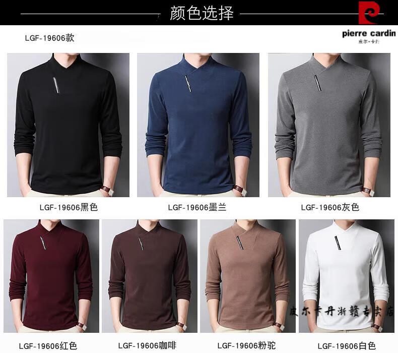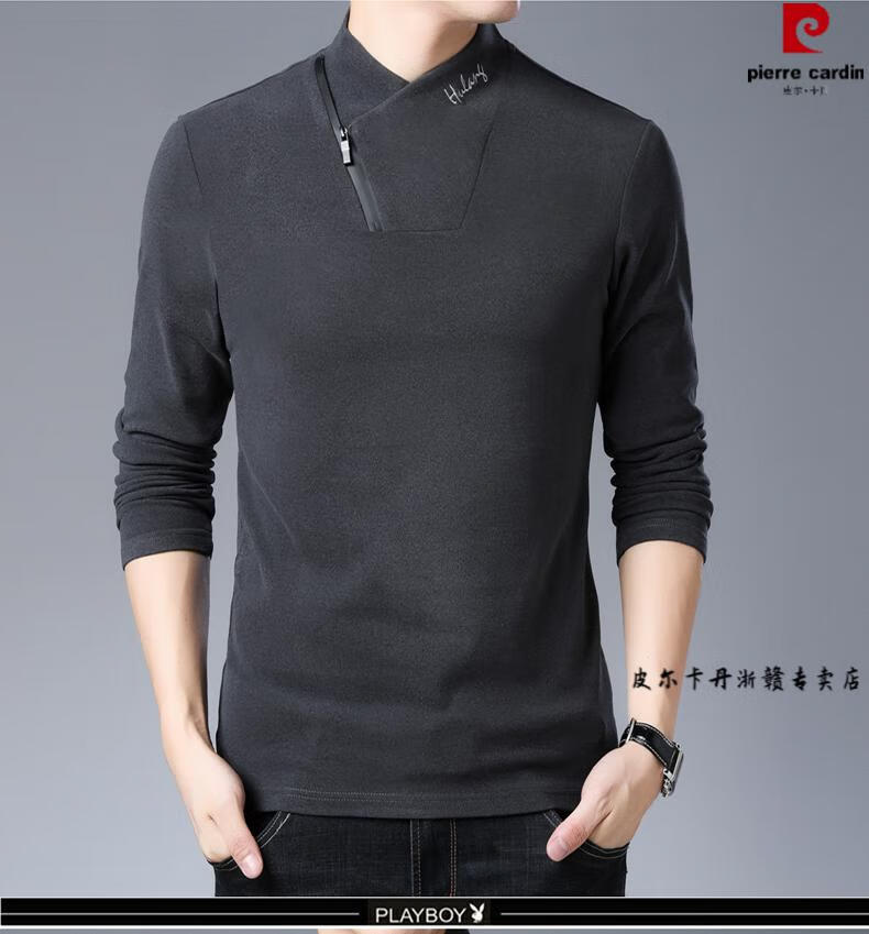 Pierre Cardin brand pure cotton long-sleeved sweatshirt men's half turtleneck T-shirt double-sided velvet autumn and winter new solid color slim bottoming shirt trendy HL-19819 black 175/XL