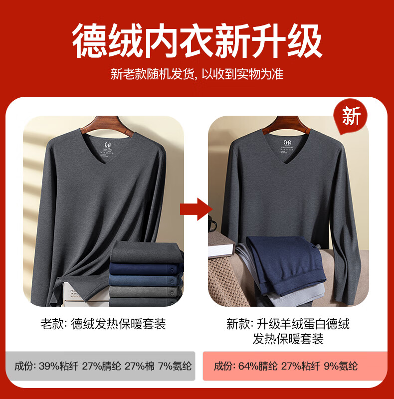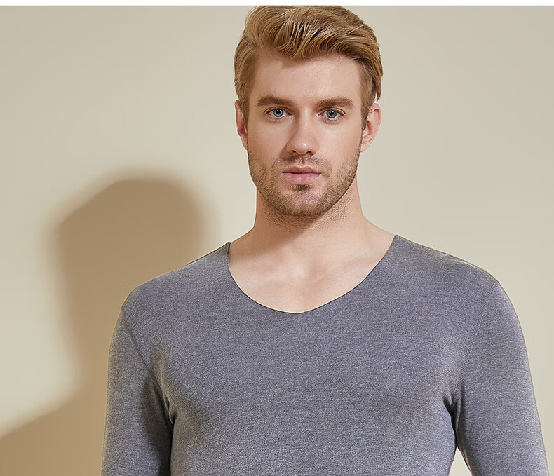 Hengyuanxiang Men's Thermal Underwear Set Derong Heating Seamless Slim Autumn Underwear Set Bottoming Shirt Winter Tailor-made Derong Heating Heating Set V-neck Gift Box-Dark Gray L (Recommended weight 110-130Jin Jin equals 0.5 kg)