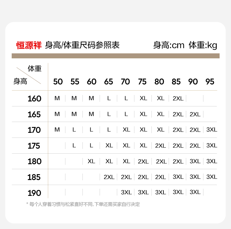 China (cm) 160-165/84-86 165-170 / 88-90 167-172 / 92-96 168-173 / 98-102 170-176 / 106-110