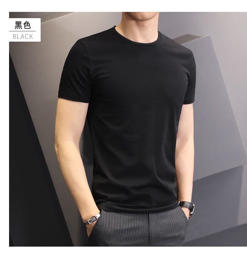 Romon 2-pack summer high-end short-sleeved T-shirt men's bottoming shirt round neck black and white solid color slim half-sleeved clothes white + black L