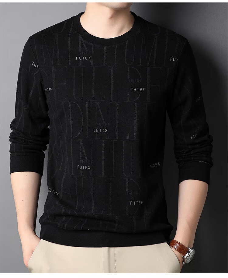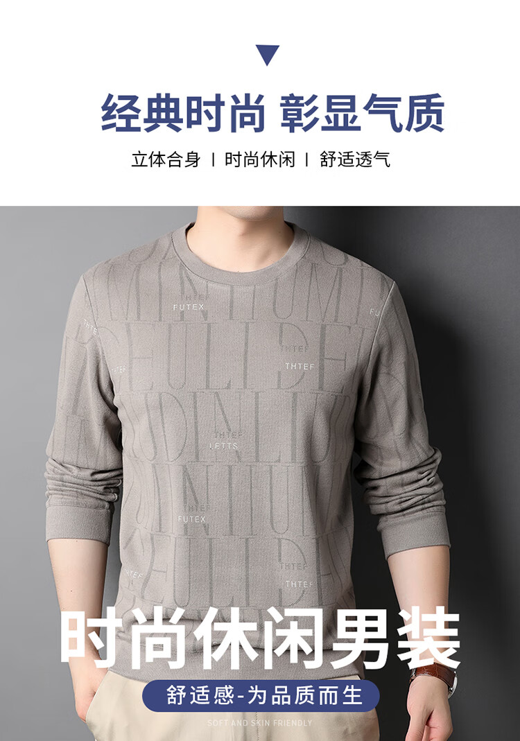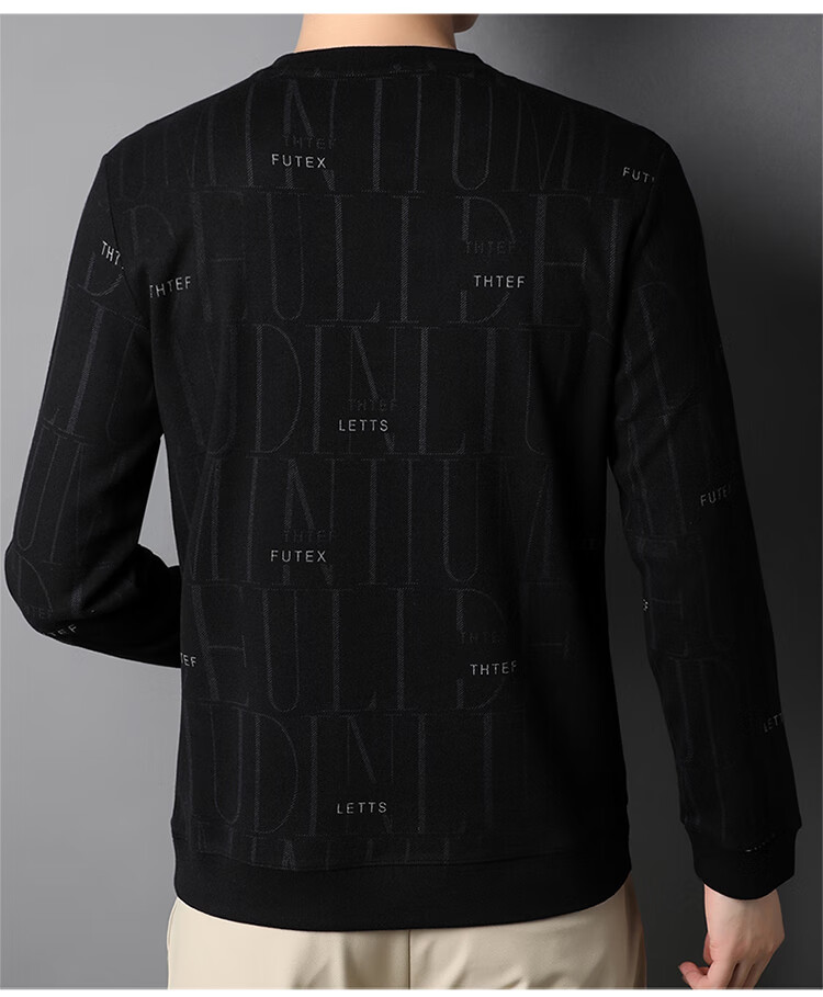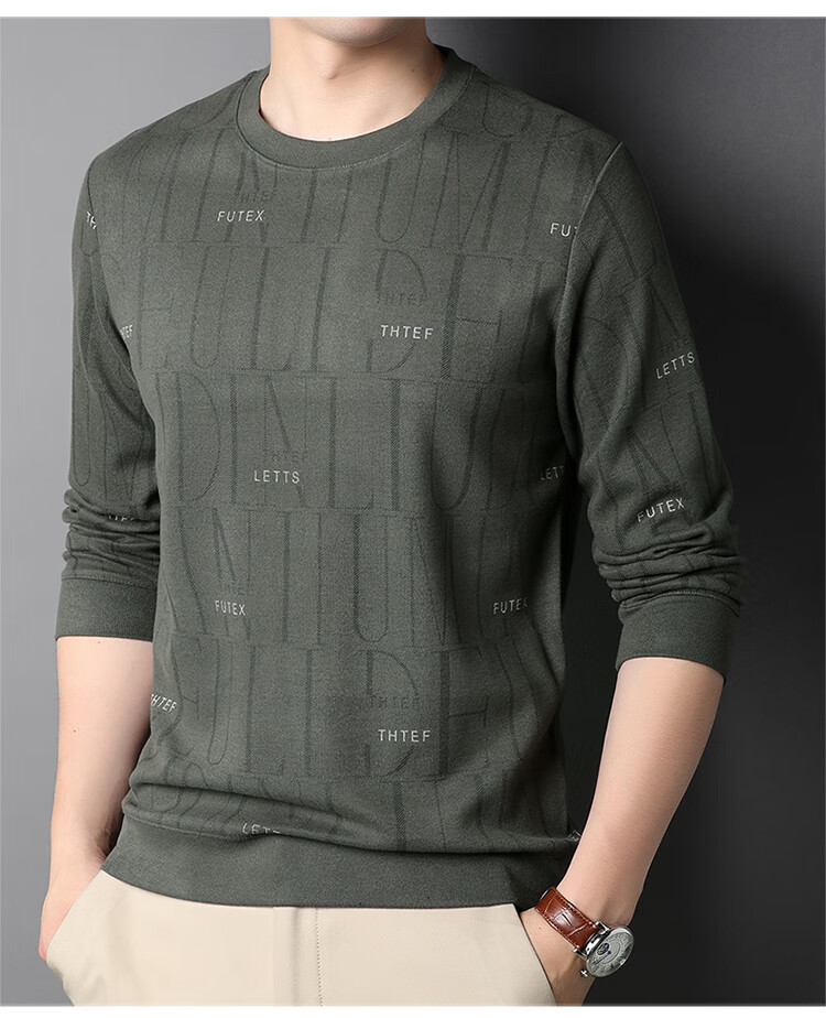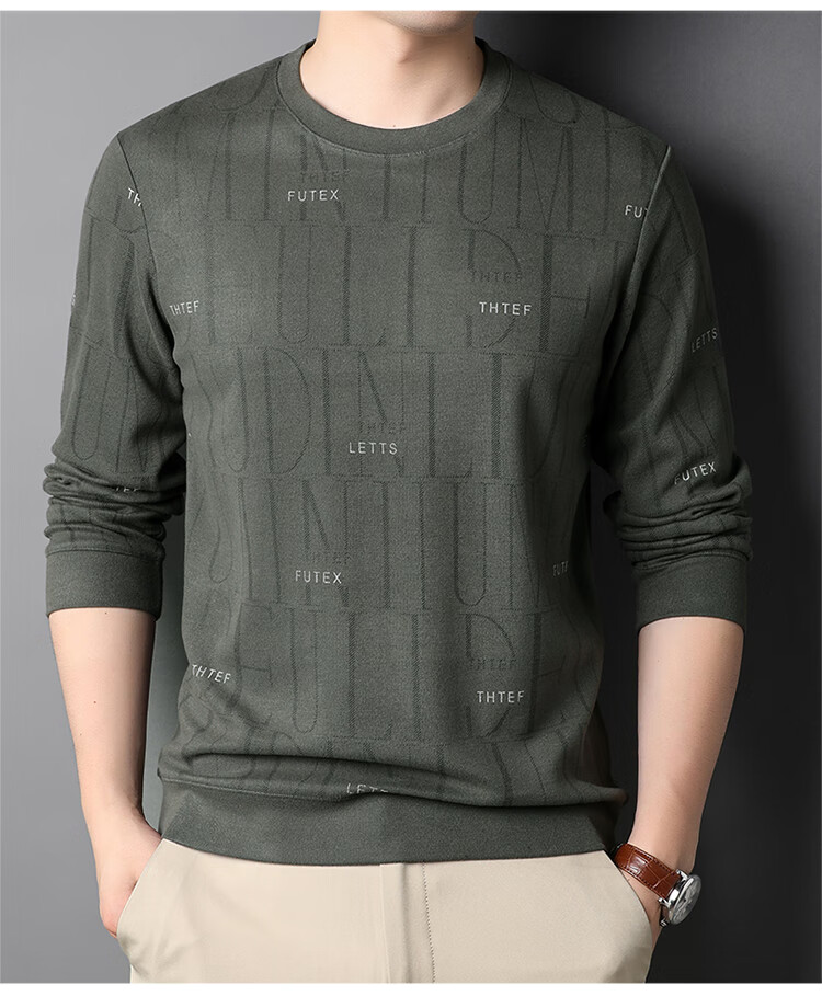 Lilan men's long-sleeved T-shirt spring and autumn new round neck slim printed casual bottoming shirt thin men's sweatshirt off-white 175/92A (recommended 135-150Jin Jin equals 0.5 kg)