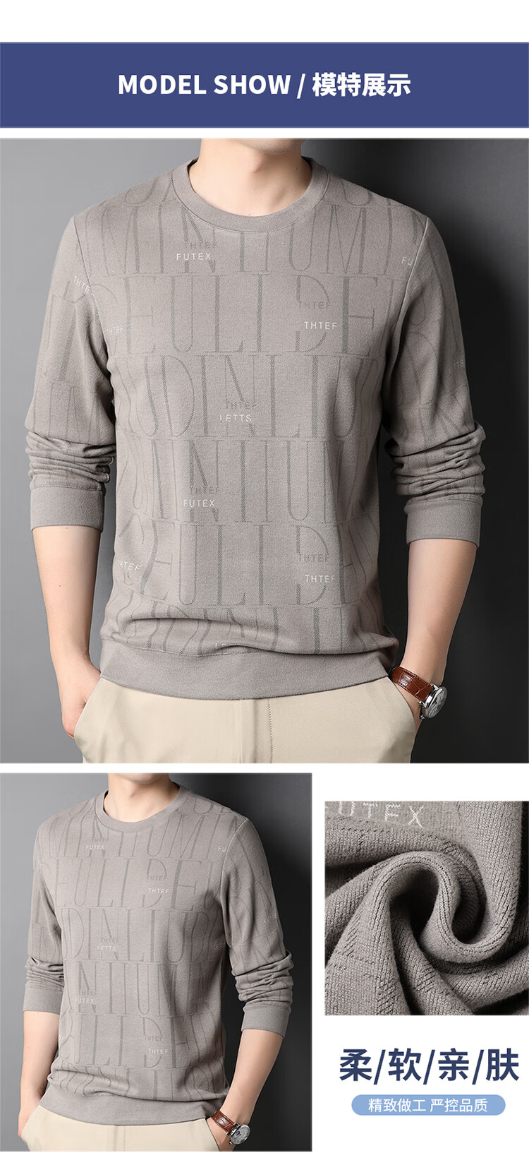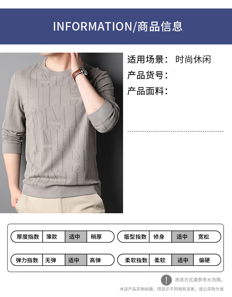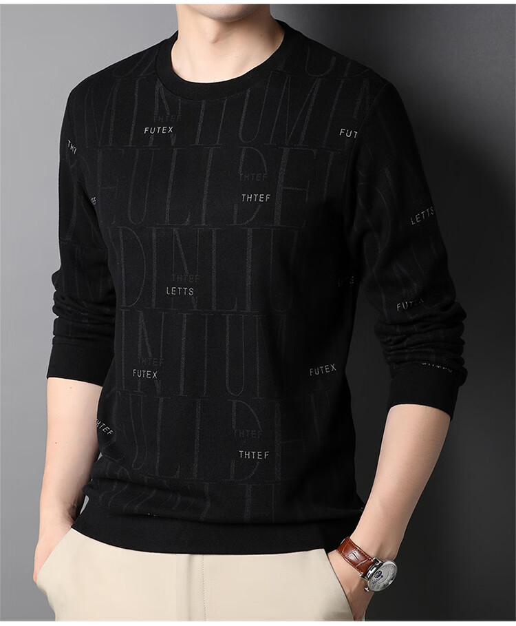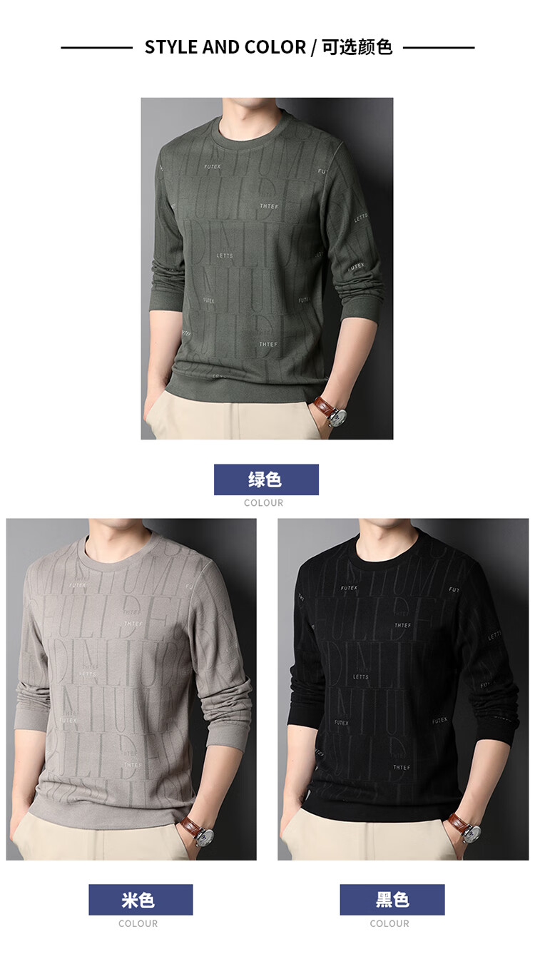 Lilan men's long-sleeved T-shirt spring and autumn new round neck slim printed casual bottoming shirt thin men's sweatshirt off-white 175/92A (recommended 135-150Jin Jin equals 0.5 kg)