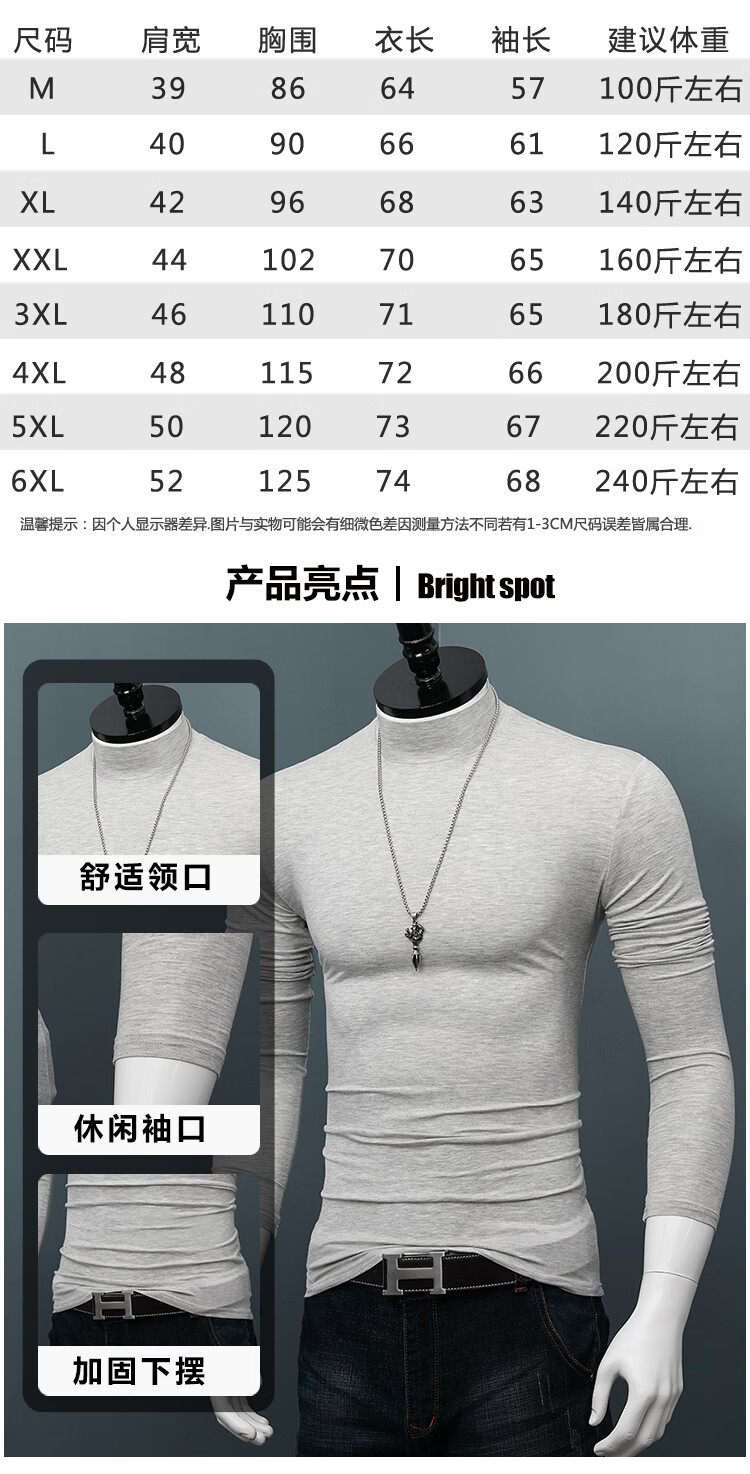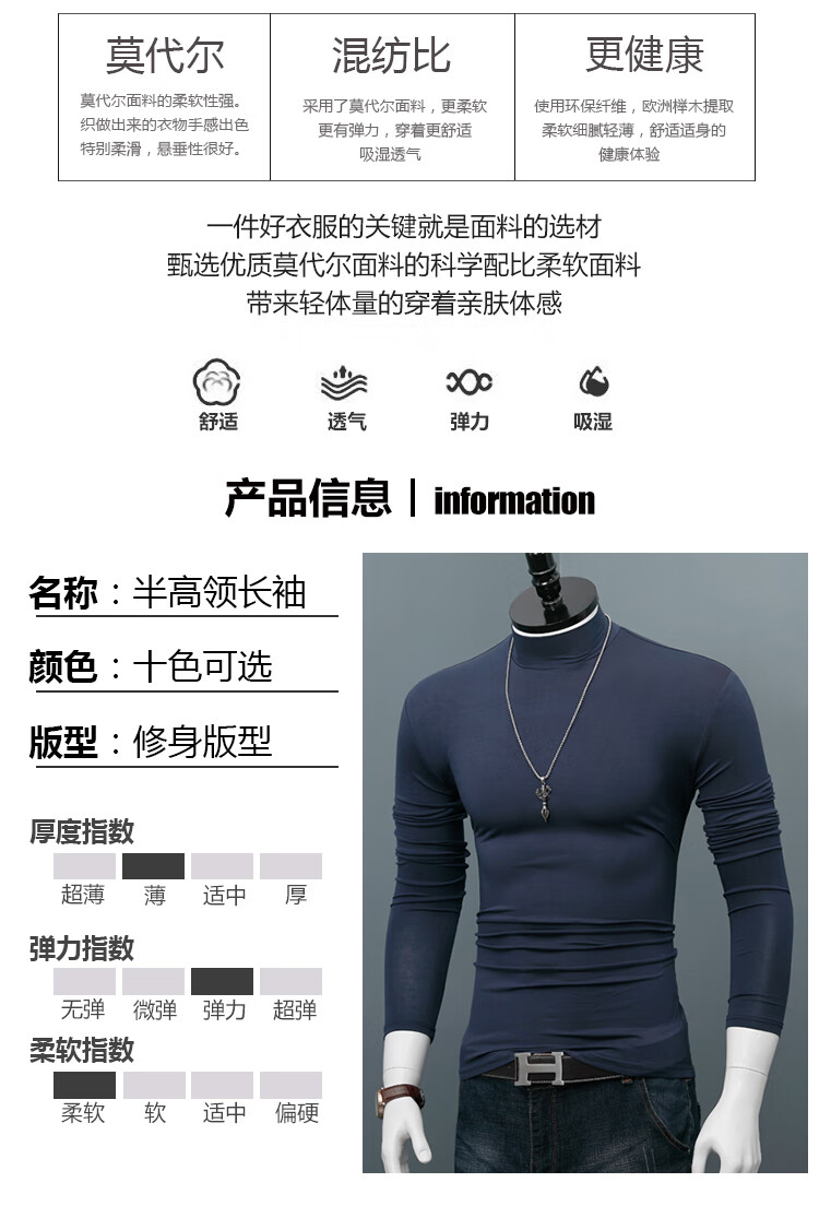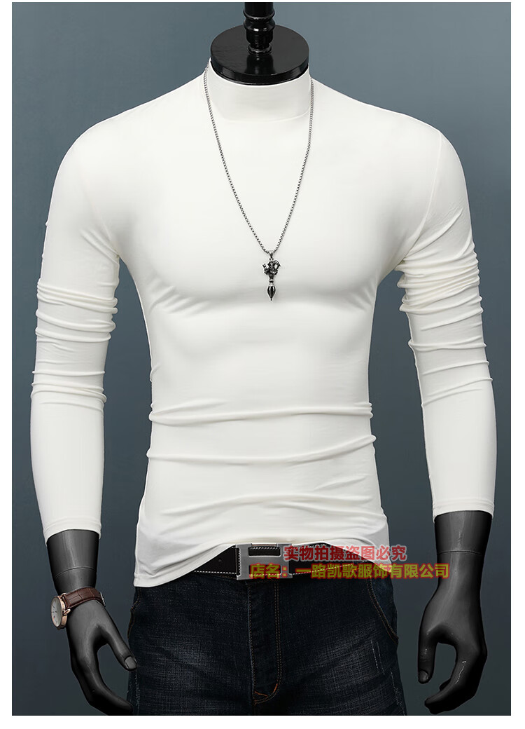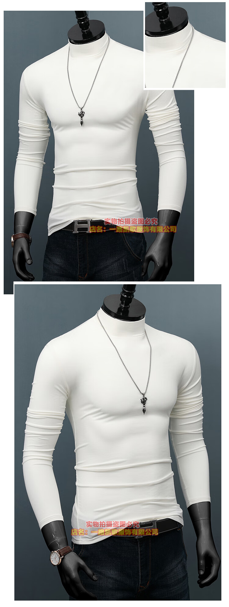 ROMON Modal long-sleeved T-shirt men's autumn and winter thin bottoming shirt with solid color slim fit youth stretch top white XL 140Jin Jin equals 0.5kg, left or right wear