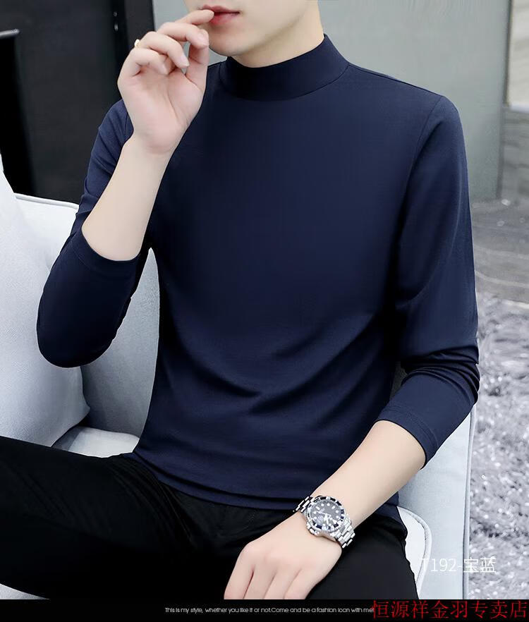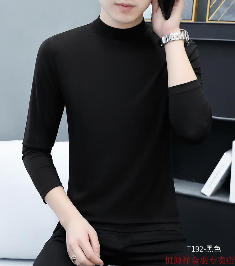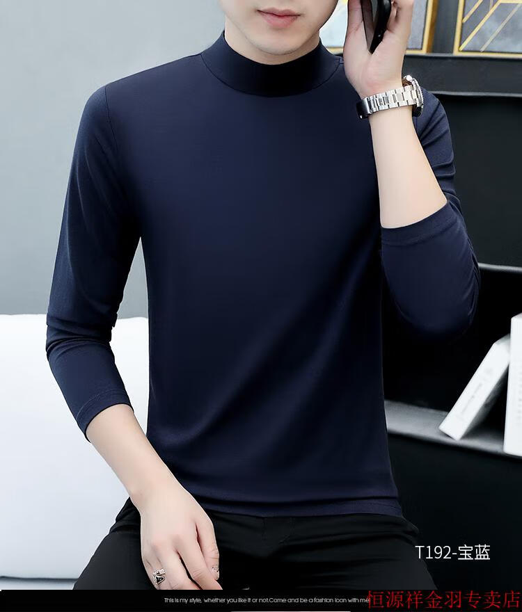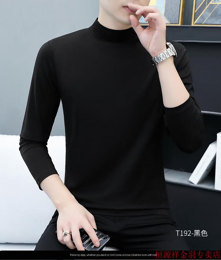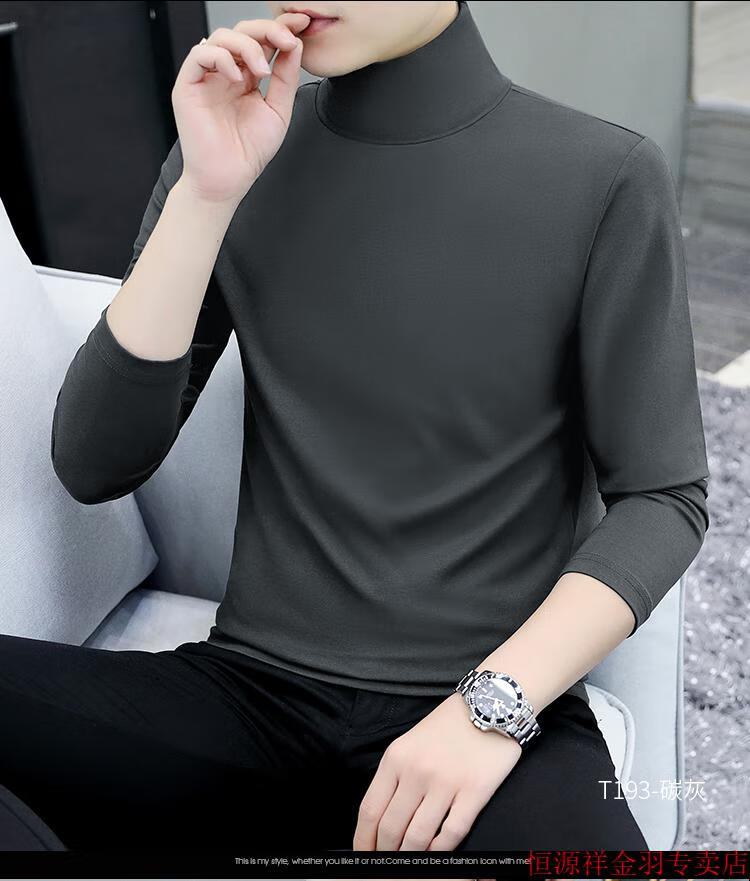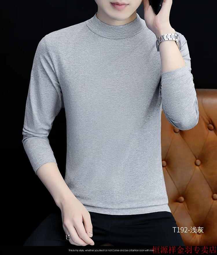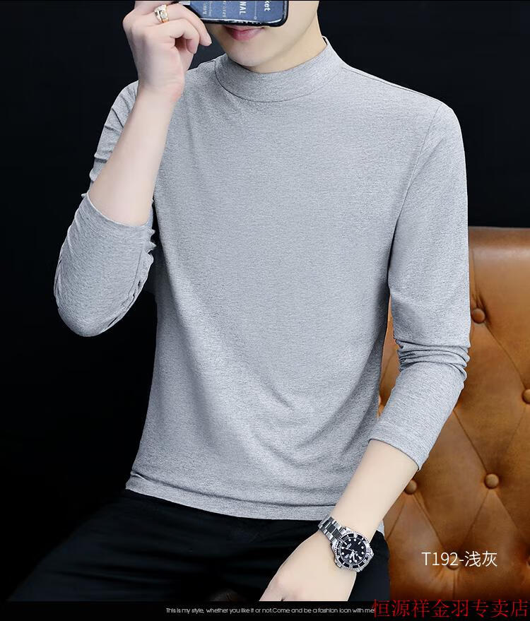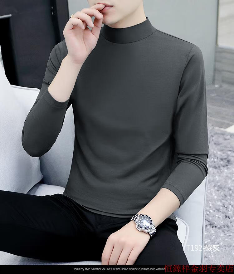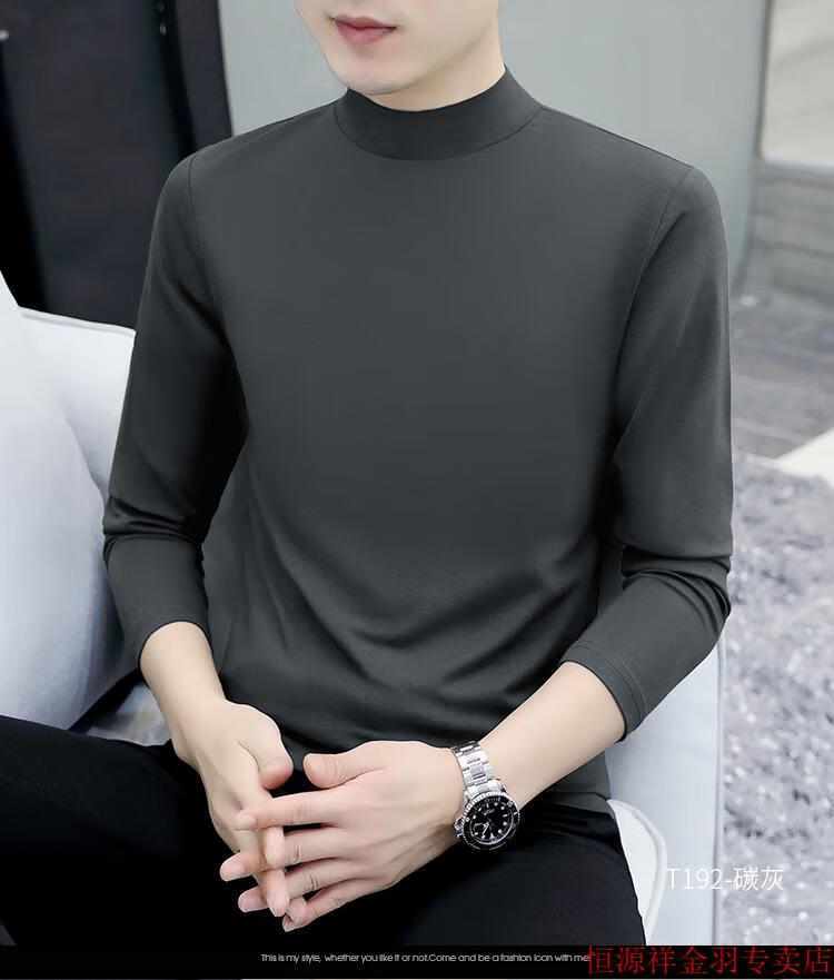 Hengyuanxiang pure cotton autumn and winter half turtleneck bottoming shirt men's slim fit long-sleeved T-shirt mid-collar men's autumn coat outer wear YP192 carbon gray half turtleneck 2XL recommended 145-160Jin Jin equals 0.5 kg