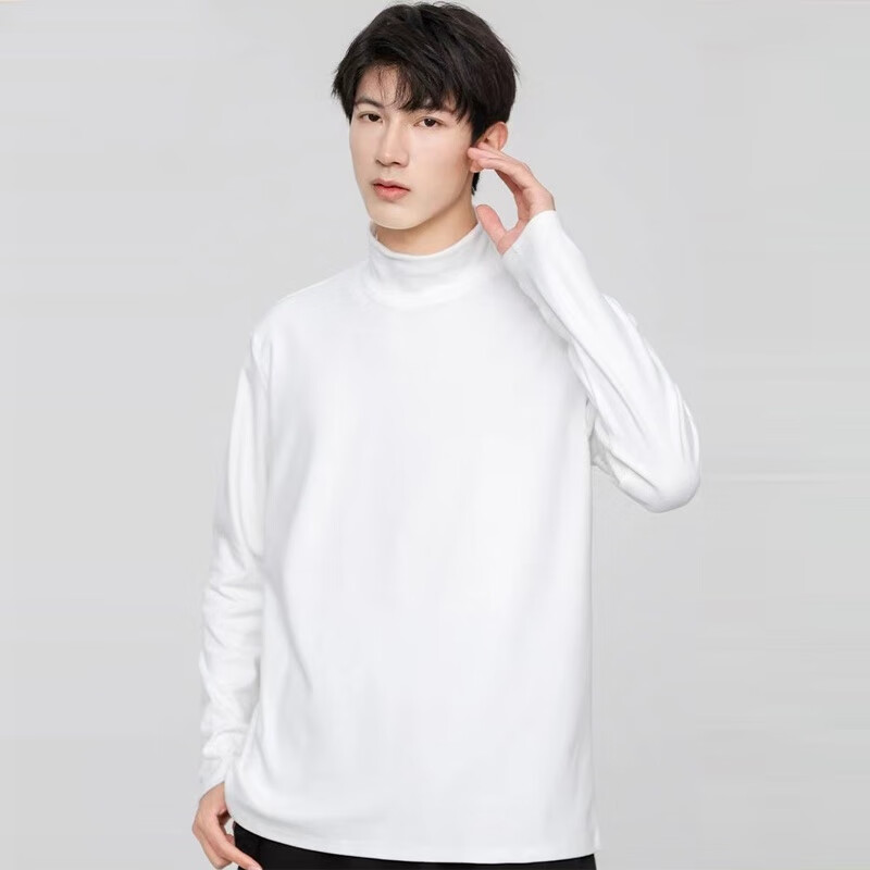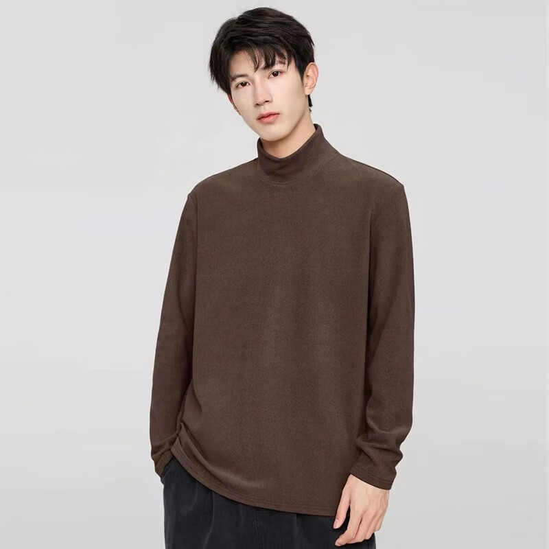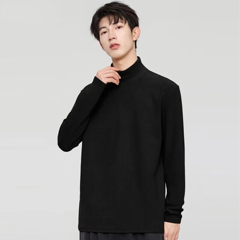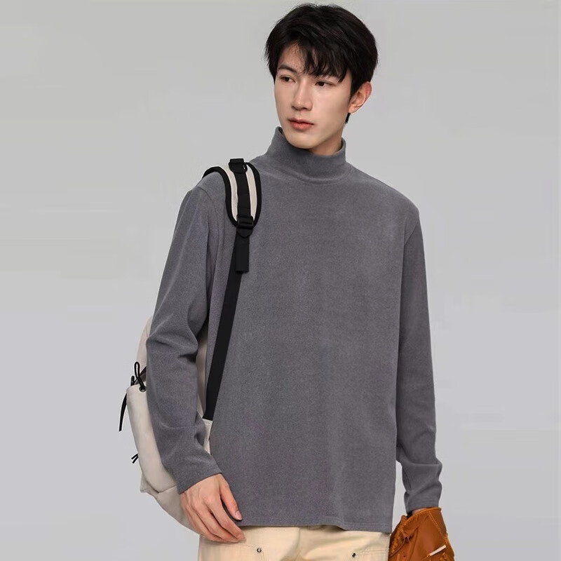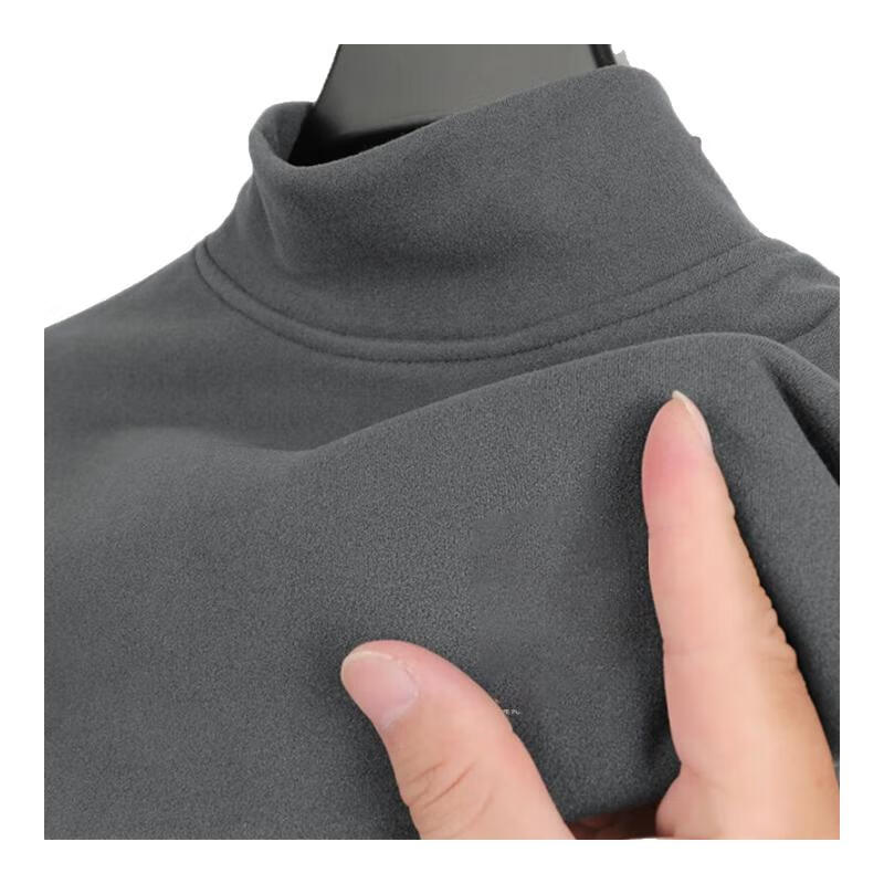 DeRong long-sleeved T-shirt men's plus velvet thickened half turtleneck temperament bottoming shirt warm top autumn clothing men's gray 4XL slim fit too small