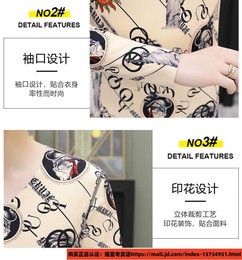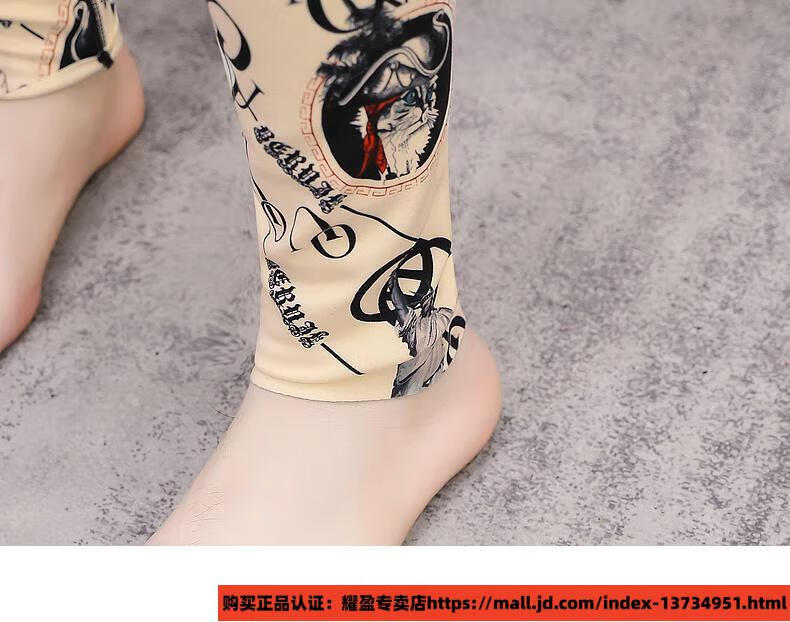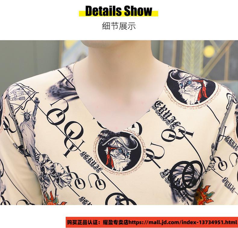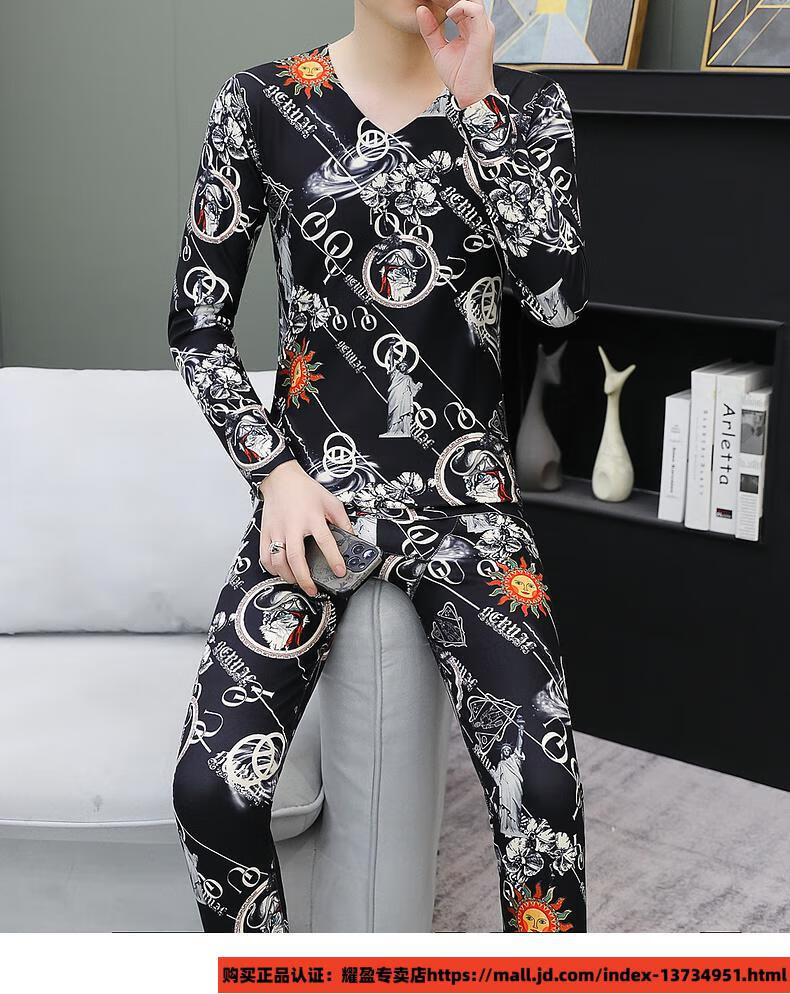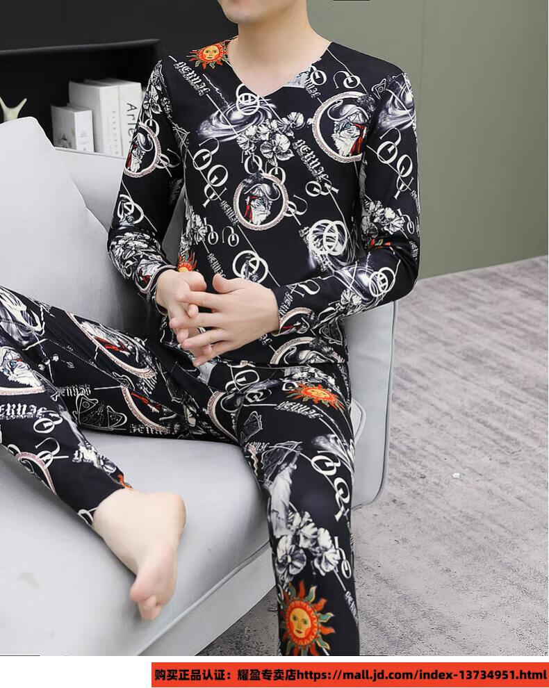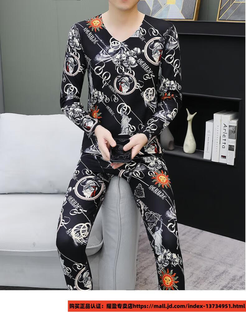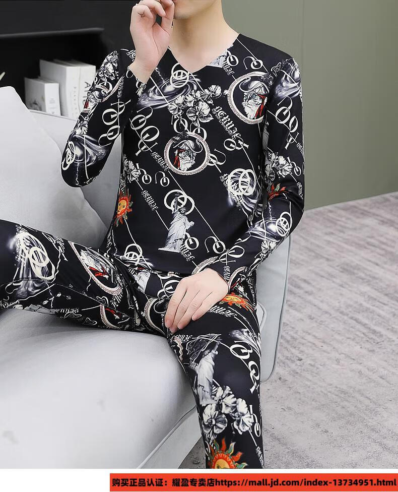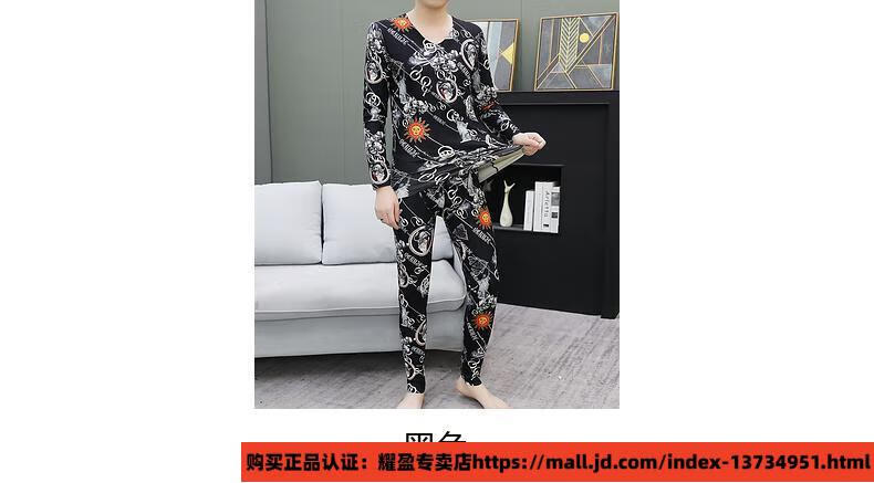 Modal Winter German Velvet Thermal Underwear Men's Suit Plus Velvet Thickened Autumn Clothes and Autumn Pants Trendy Brand Printed Slim Bottoming Shirt Khaki L (85-109Jin Jin is equal to 0.5kg)