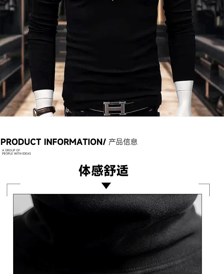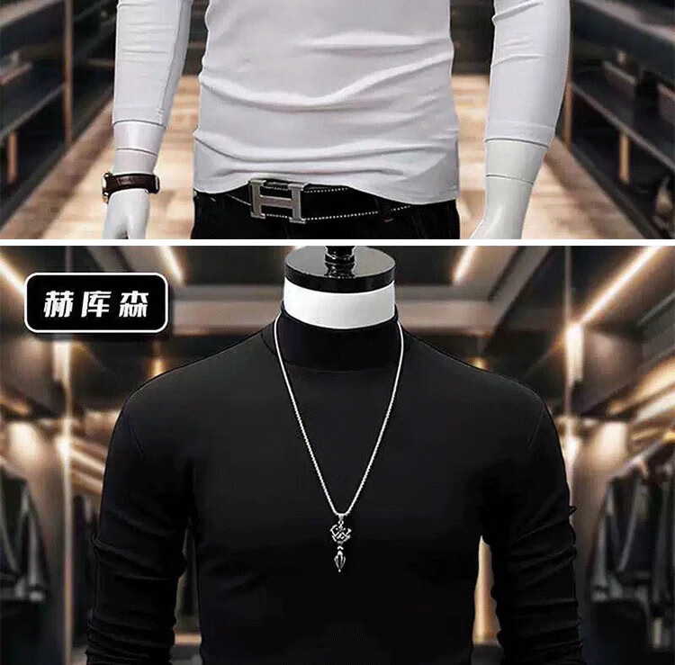 ROMON half-turtle collar bottoming shirt long-sleeved top for men autumn and winter Korean version slim and trendy inner double-sided velvet T-shirt ins 401 (black) XL 130-150Jin Jin is equal to 0.5 kg