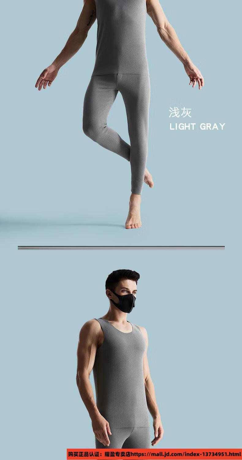 Modal men's thermal underwear set slim tight vest plus velvet thickened thermal pants thin German velvet long johns leggings C005 set light gray 3XL recommended 180-220Jin Jin equals 0.5 kg