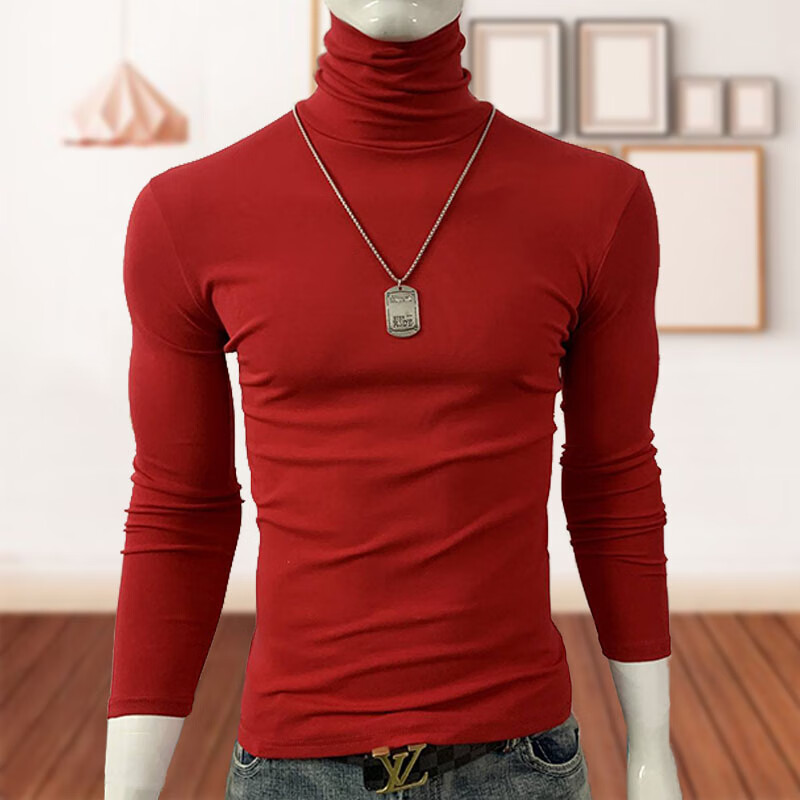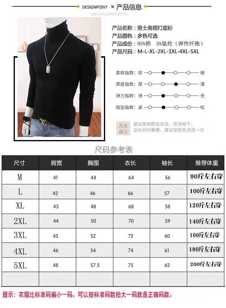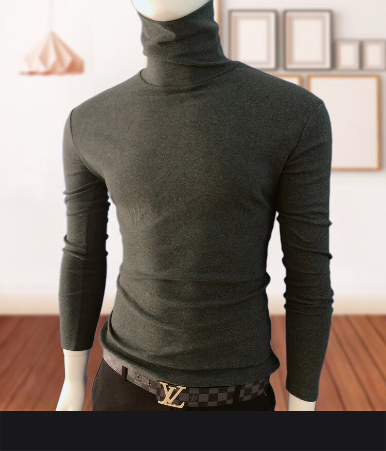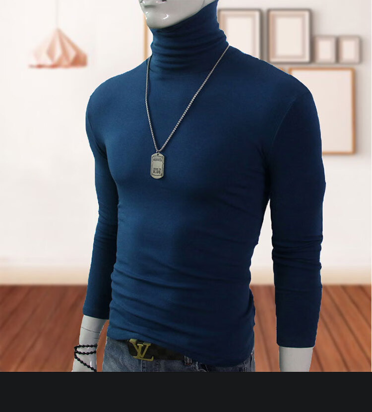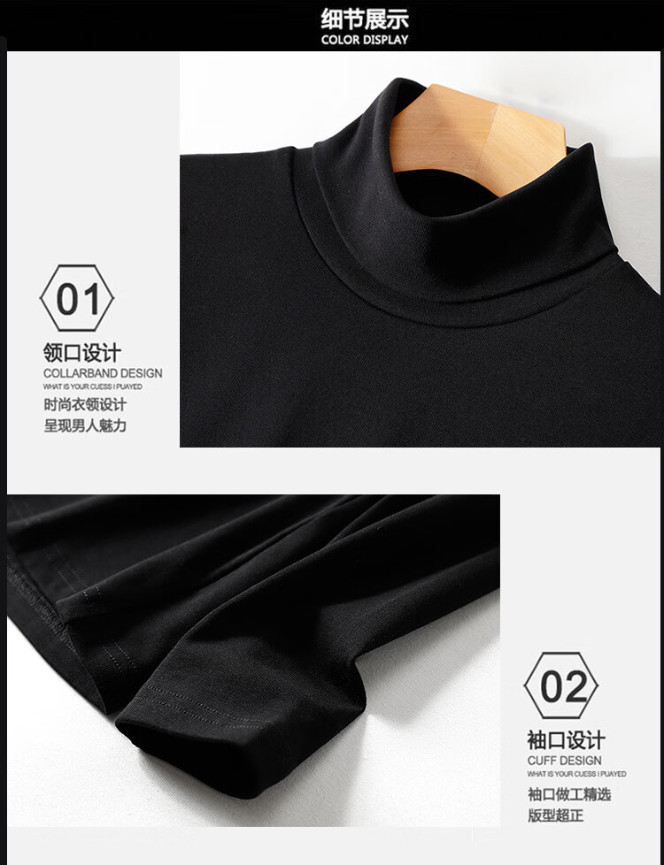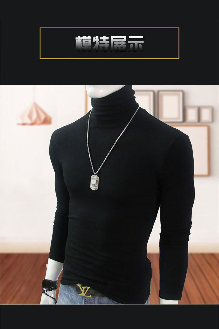 Modal autumn and winter turtleneck bottoming shirt men's slim stretch long-sleeved T-shirt casual warm bottoming shirt clothes winter T-shirt black (lining) plus velvet L 100 or so to wear