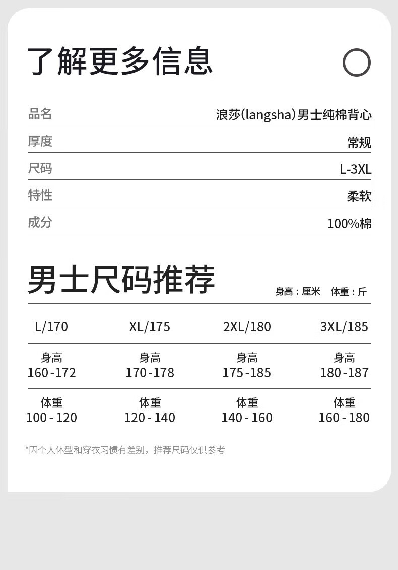 Langsha men's sports white vest pure cotton thick thread spring and summer sleeveless tight-fitting elastic fitness hurdle sweatshirt 1 piece white 100% cotton stretch L (170) slim fit recommended to choose one size larger