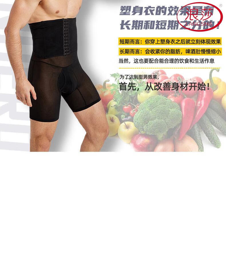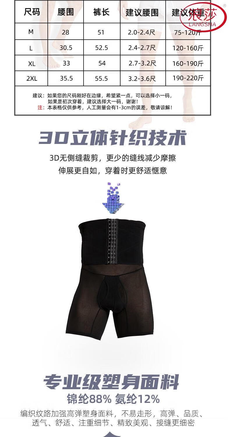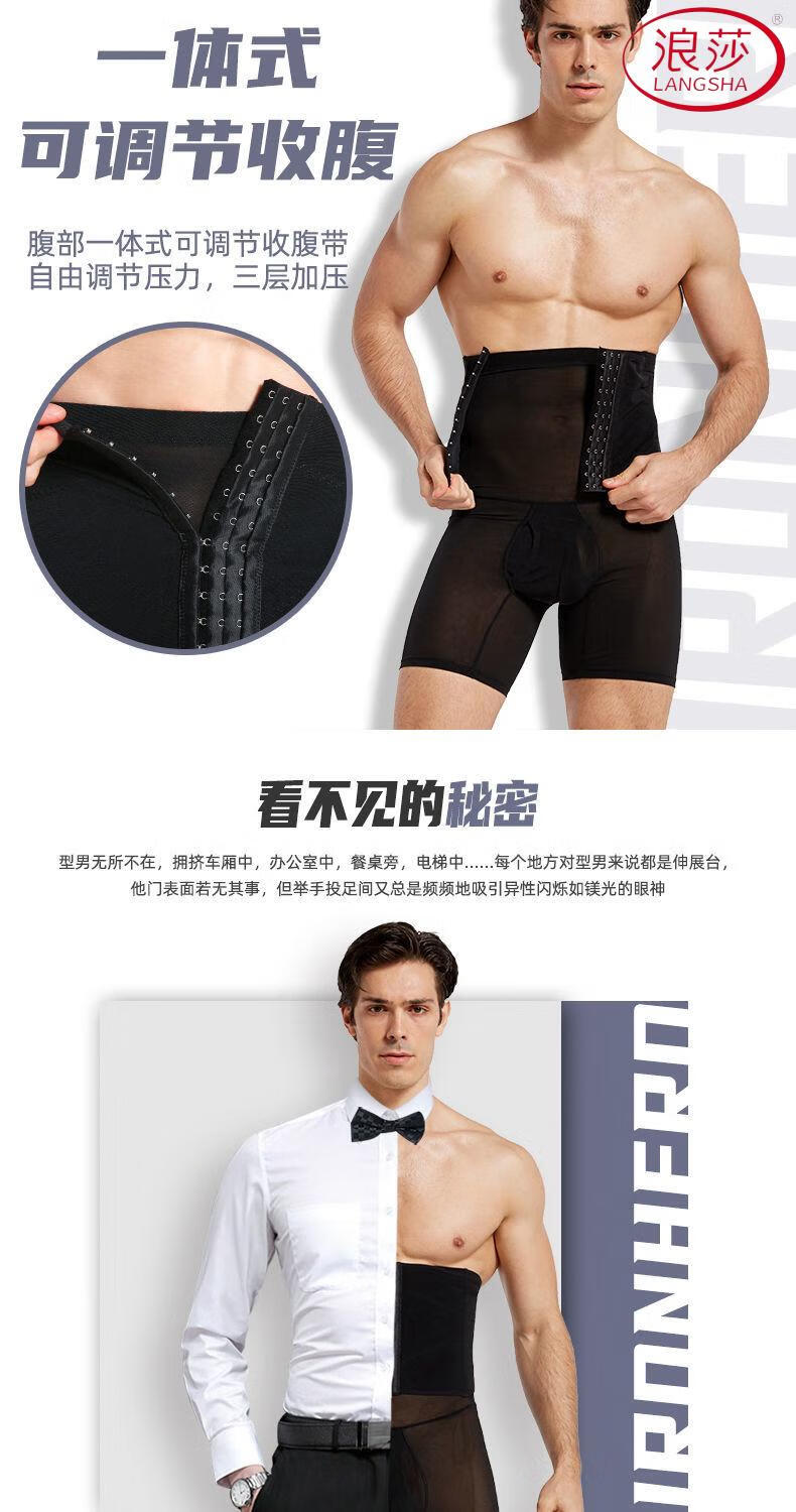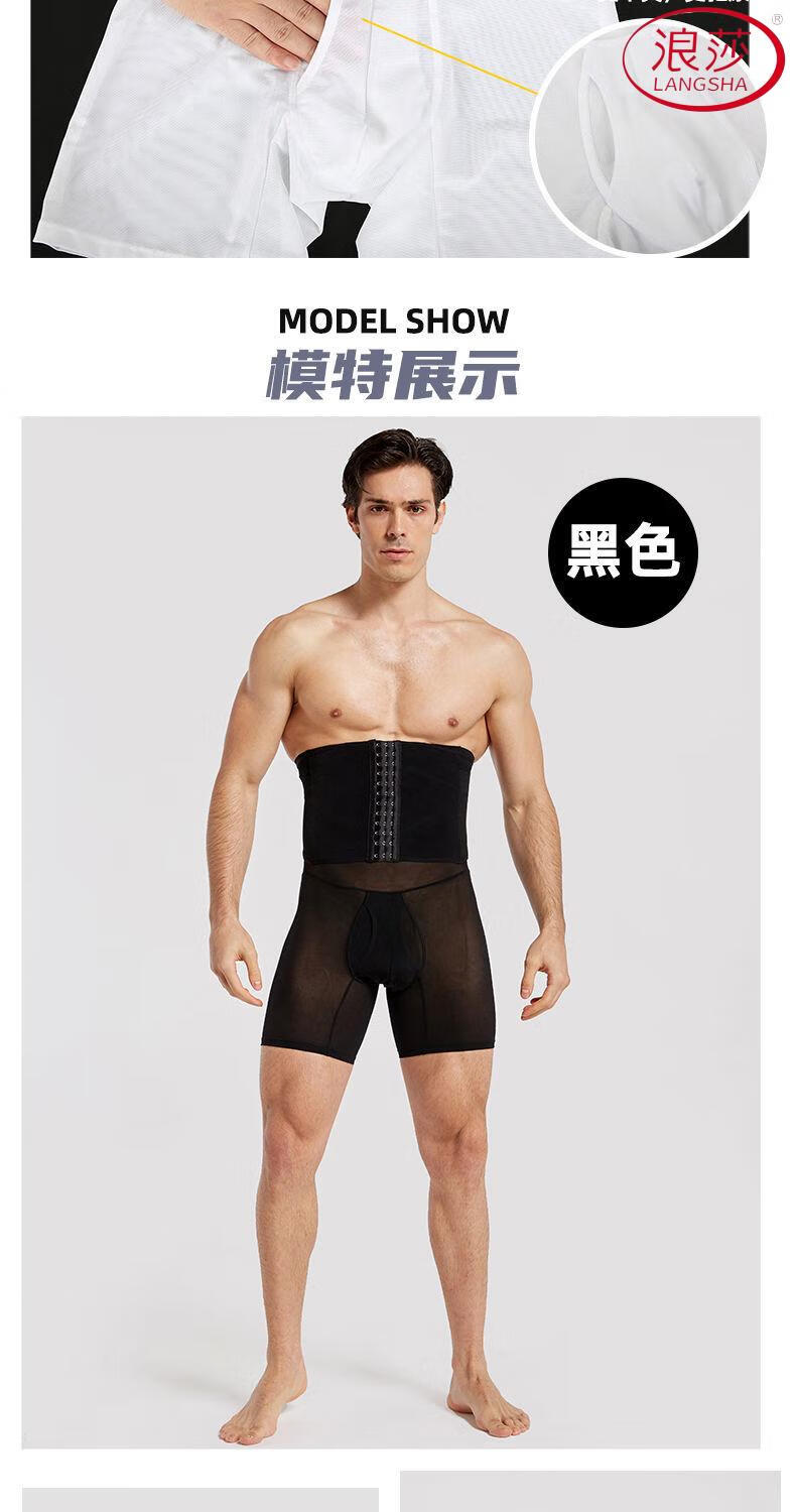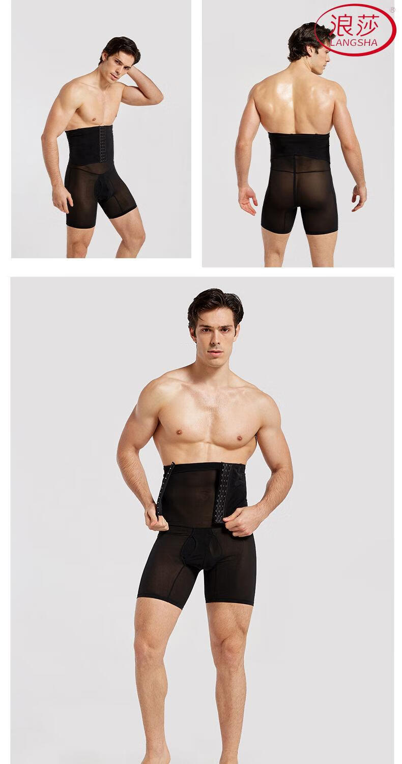 LangSha Men's Slimming Pants High Waist Tummy Corset Waist Lifting Hip Shaping Legs Beer Belly Three-Breasted Breathable Cotton Plus Size Underwear Black XL