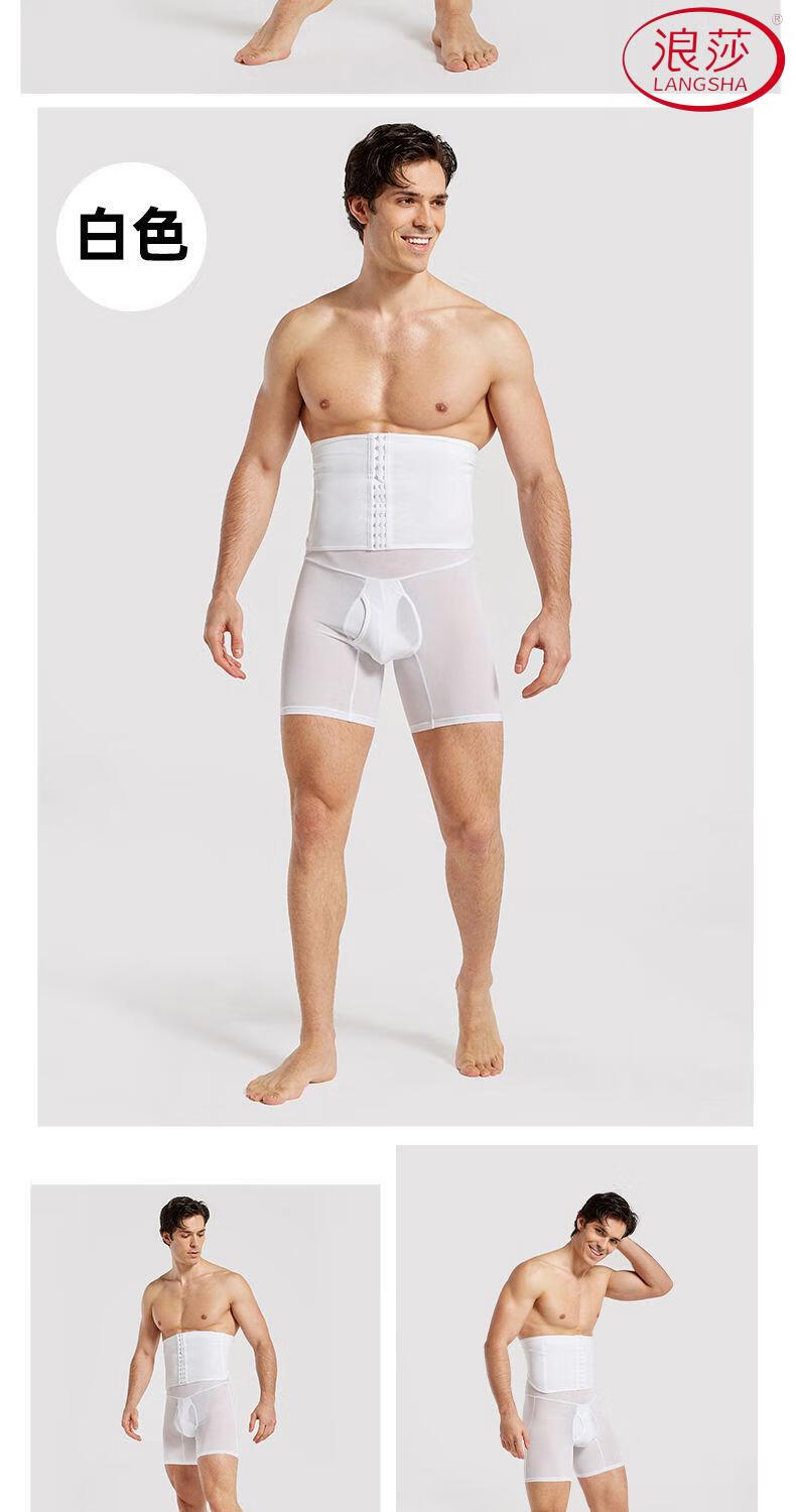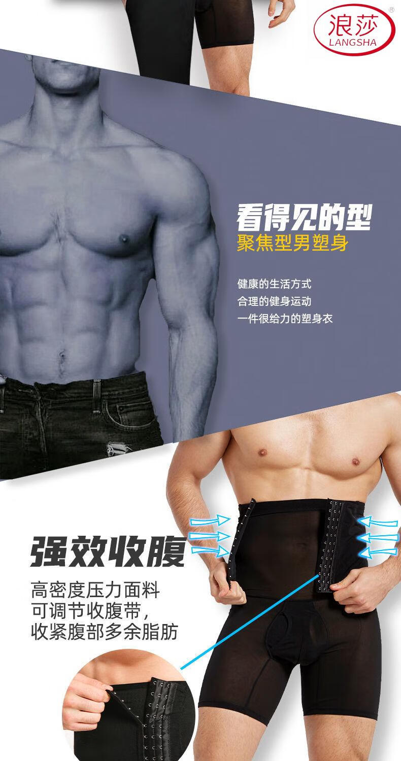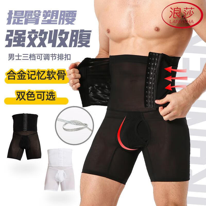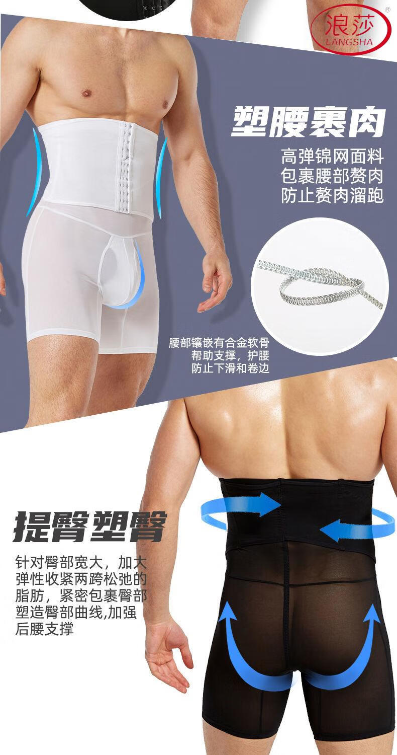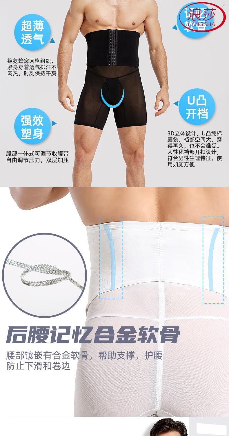 LangSha Men's Slimming Pants High Waist Tummy Corset Waist Lifting Hip Shaping Legs Beer Belly Three-Breasted Breathable Cotton Plus Size Underwear Black XL