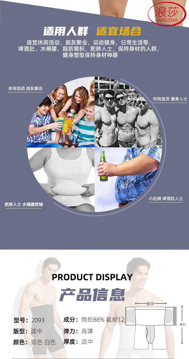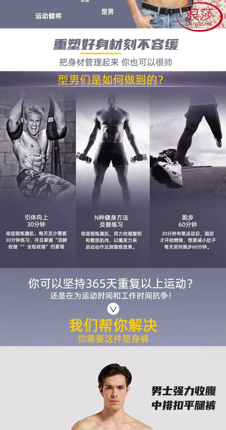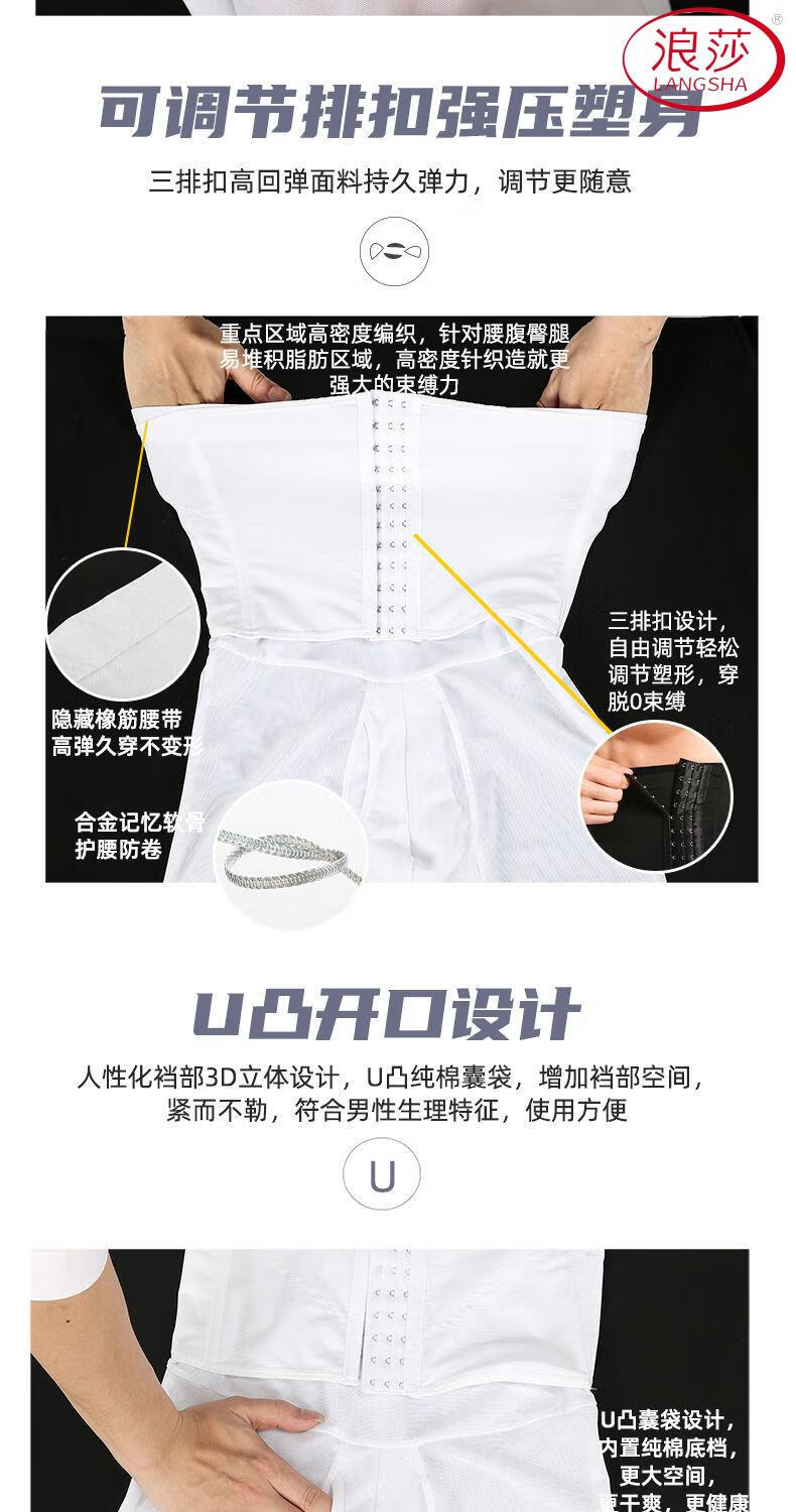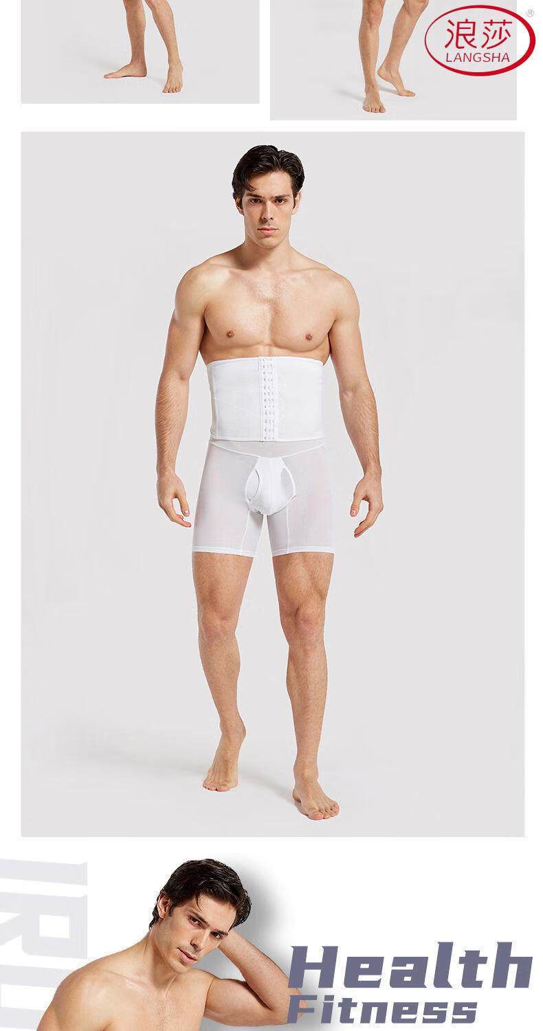LangSha Men's Slimming Pants High Waist Tummy Corset Waist Lifting Hip Shaping Legs Beer Belly Three-Breasted Breathable Cotton Plus Size Underwear Black XL