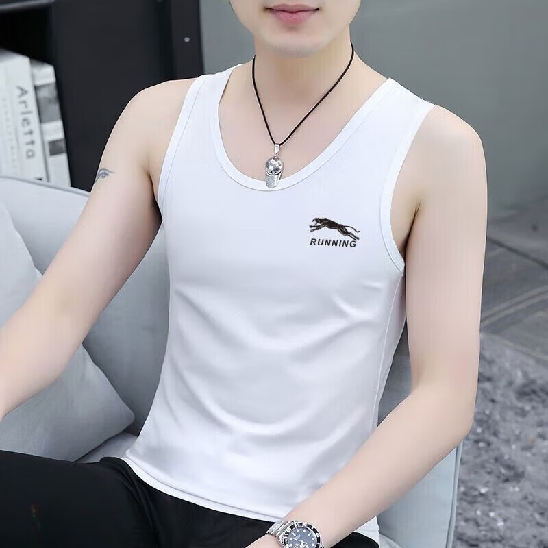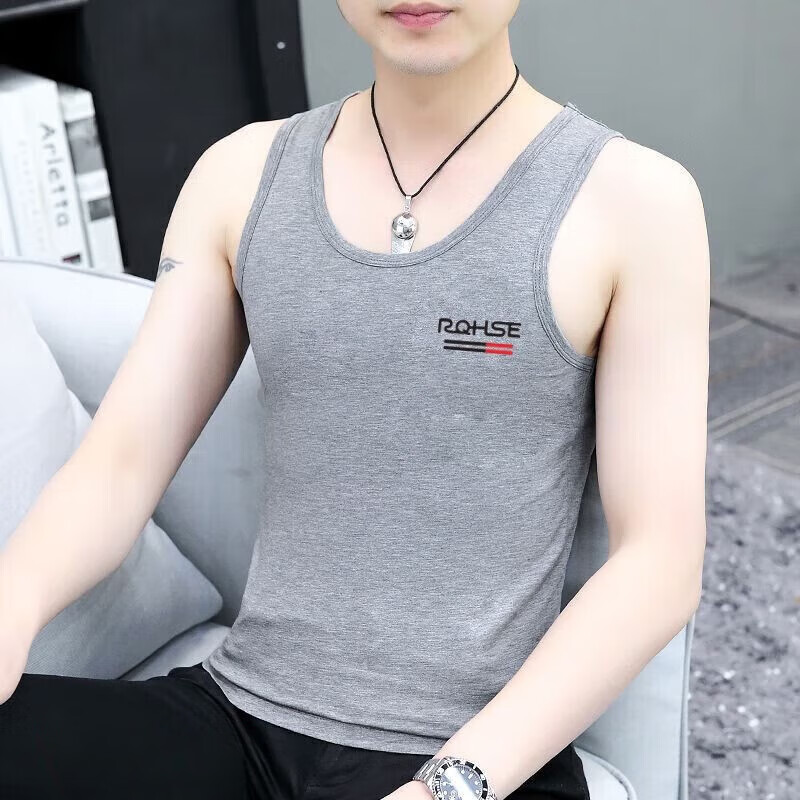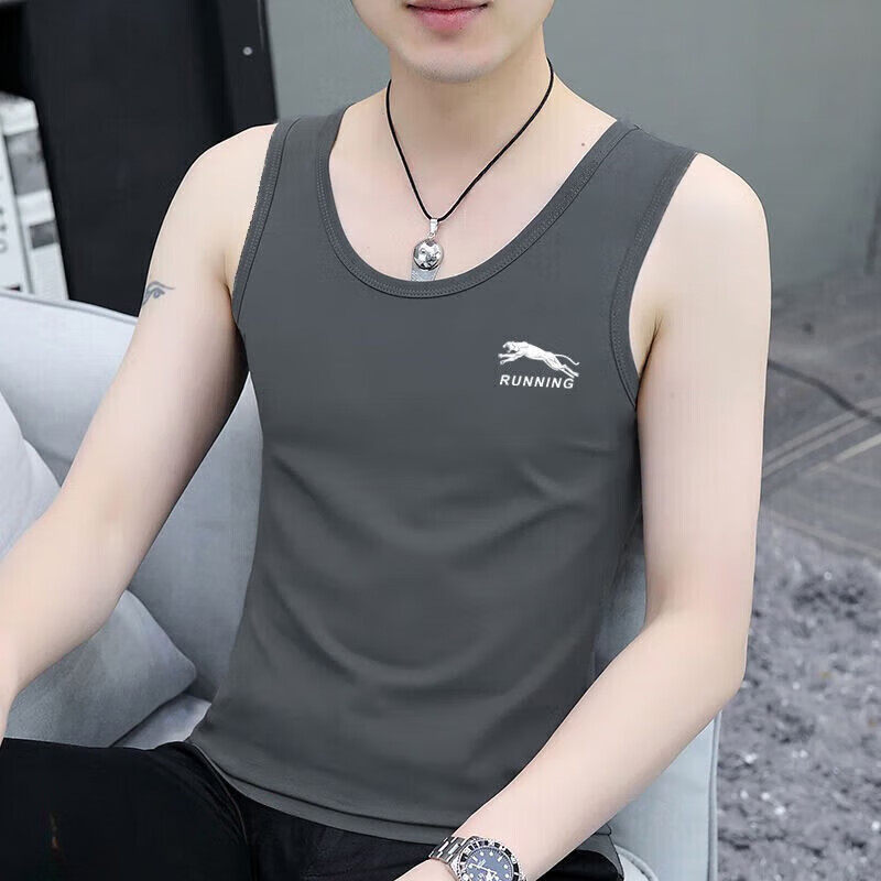Modal brand high-end men's vest hurdle sports bottoming shirt underwear slim fit inner wear suspender fitness sweatshirt D50 vest leopard dark gray 1 piece 4XL recommended 160-175Jin Jin equals 0.5 kg