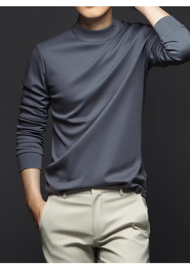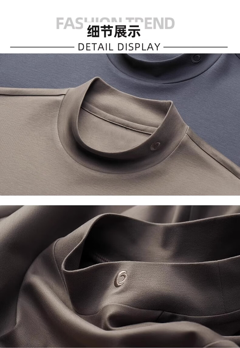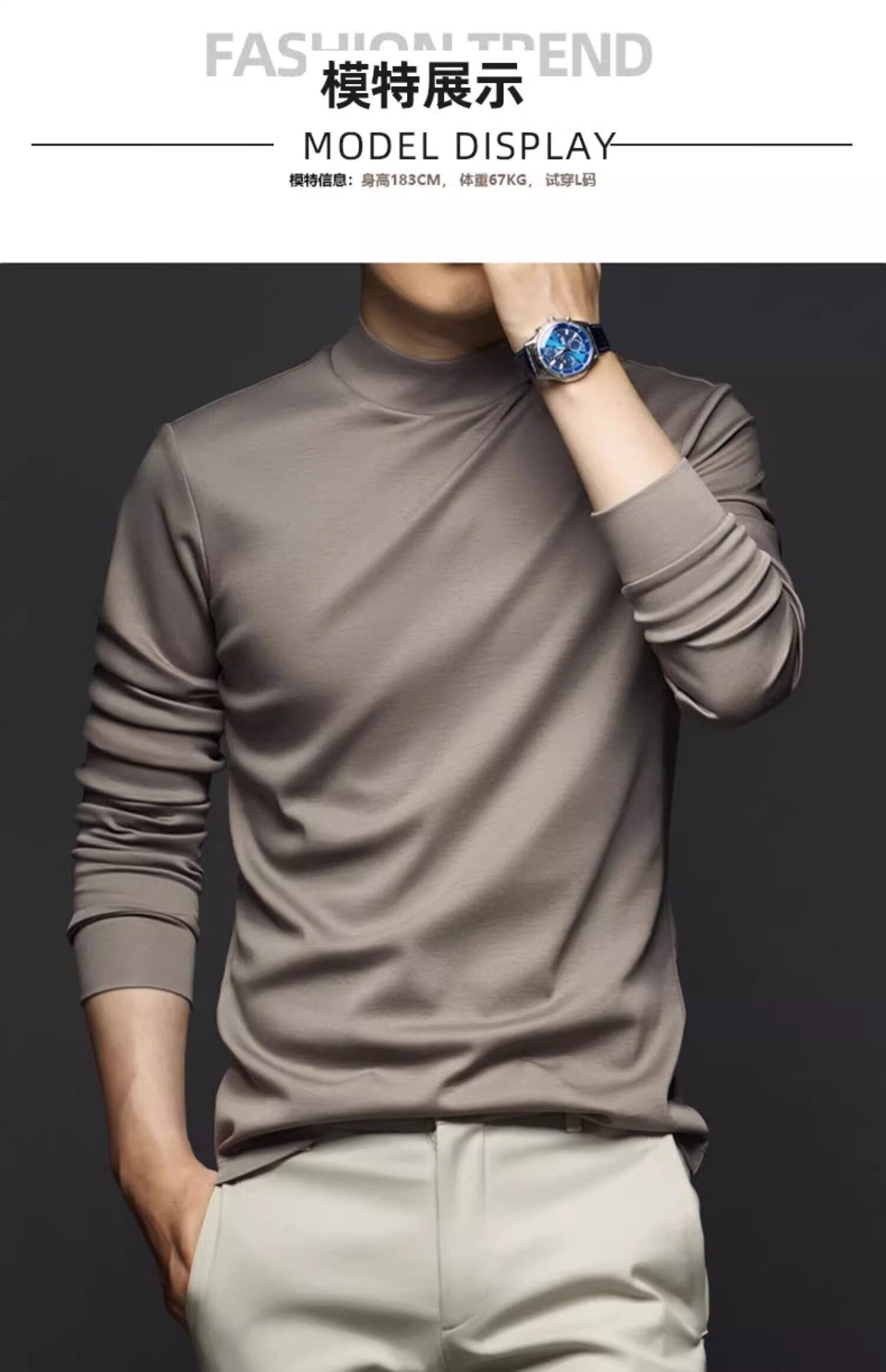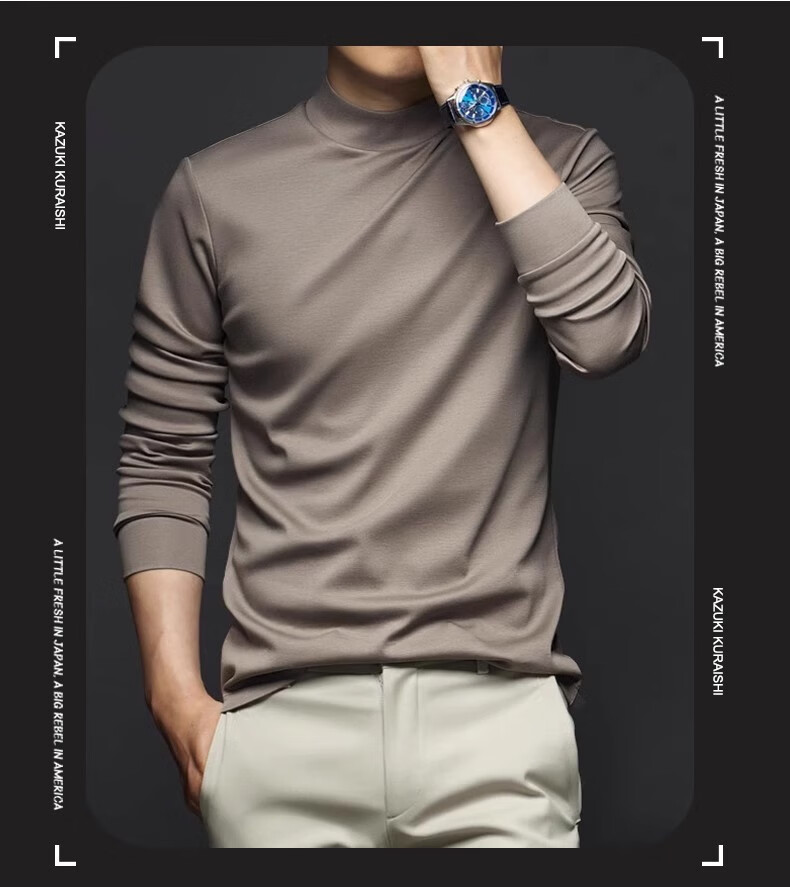Kuraishi Kazuki long-sleeved T-shirt men's 2025 spring and autumn half turtleneck mercerized cotton slim bottoming shirt casual top versatile trendy beige XL