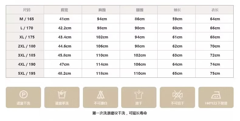 China (cm) 165 / 88-90 170 / 96-98 175 / 108-110 180 / 118-122 185 / 126-130